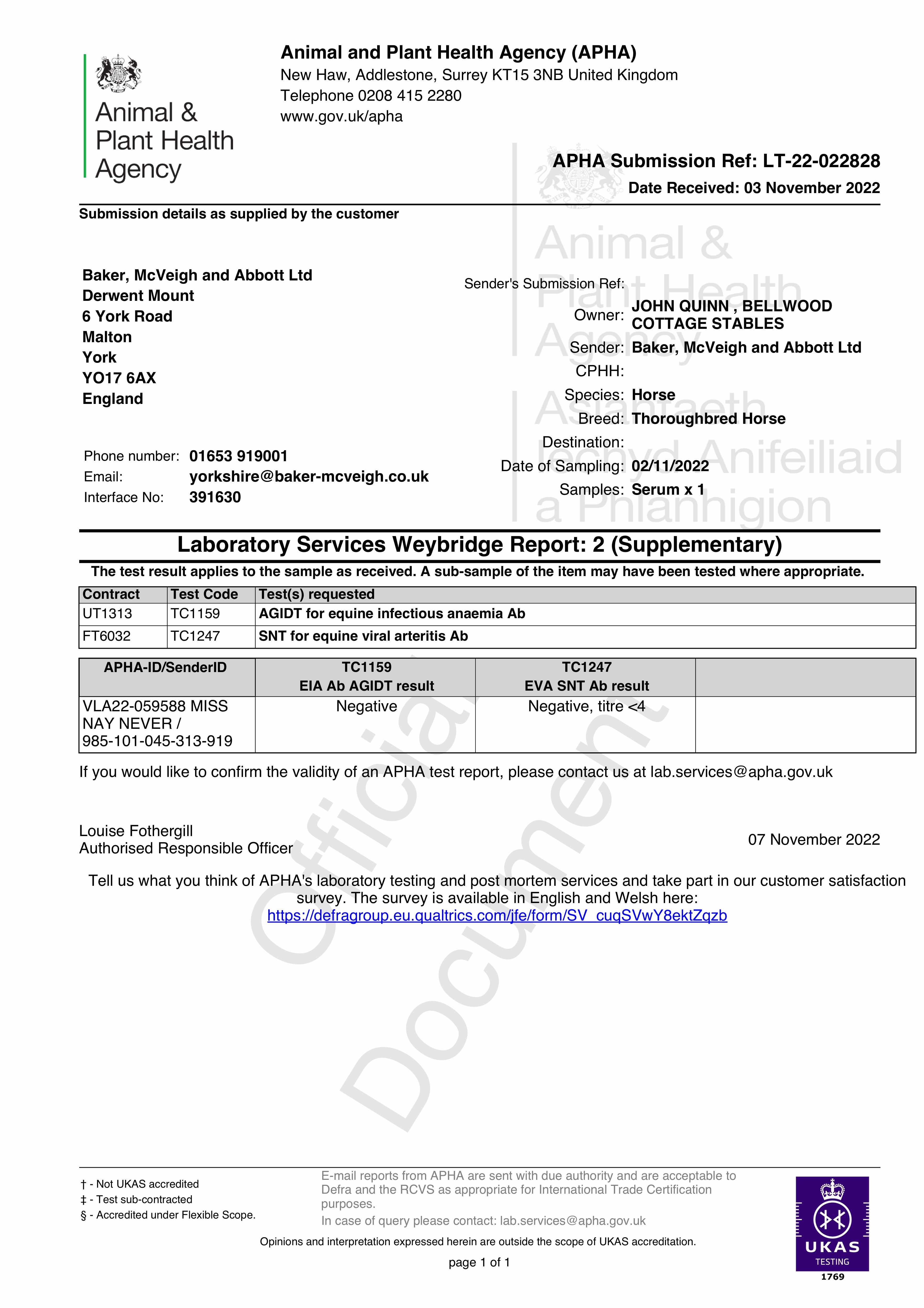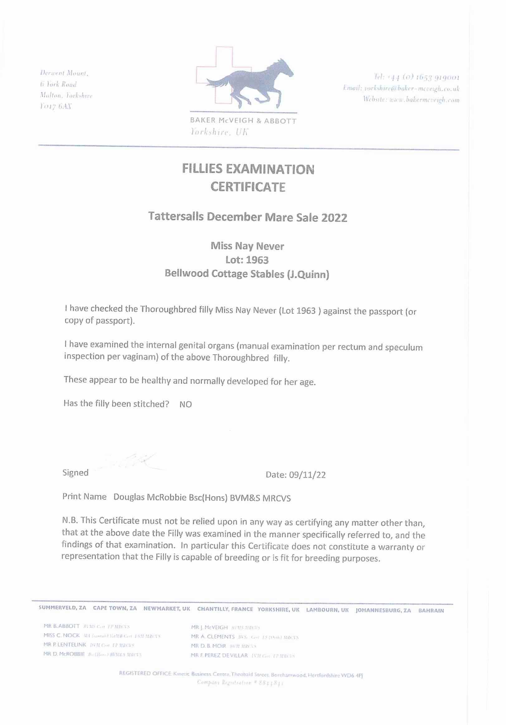 Consignor: Bellwood Cottage Stables (J. Quinn)