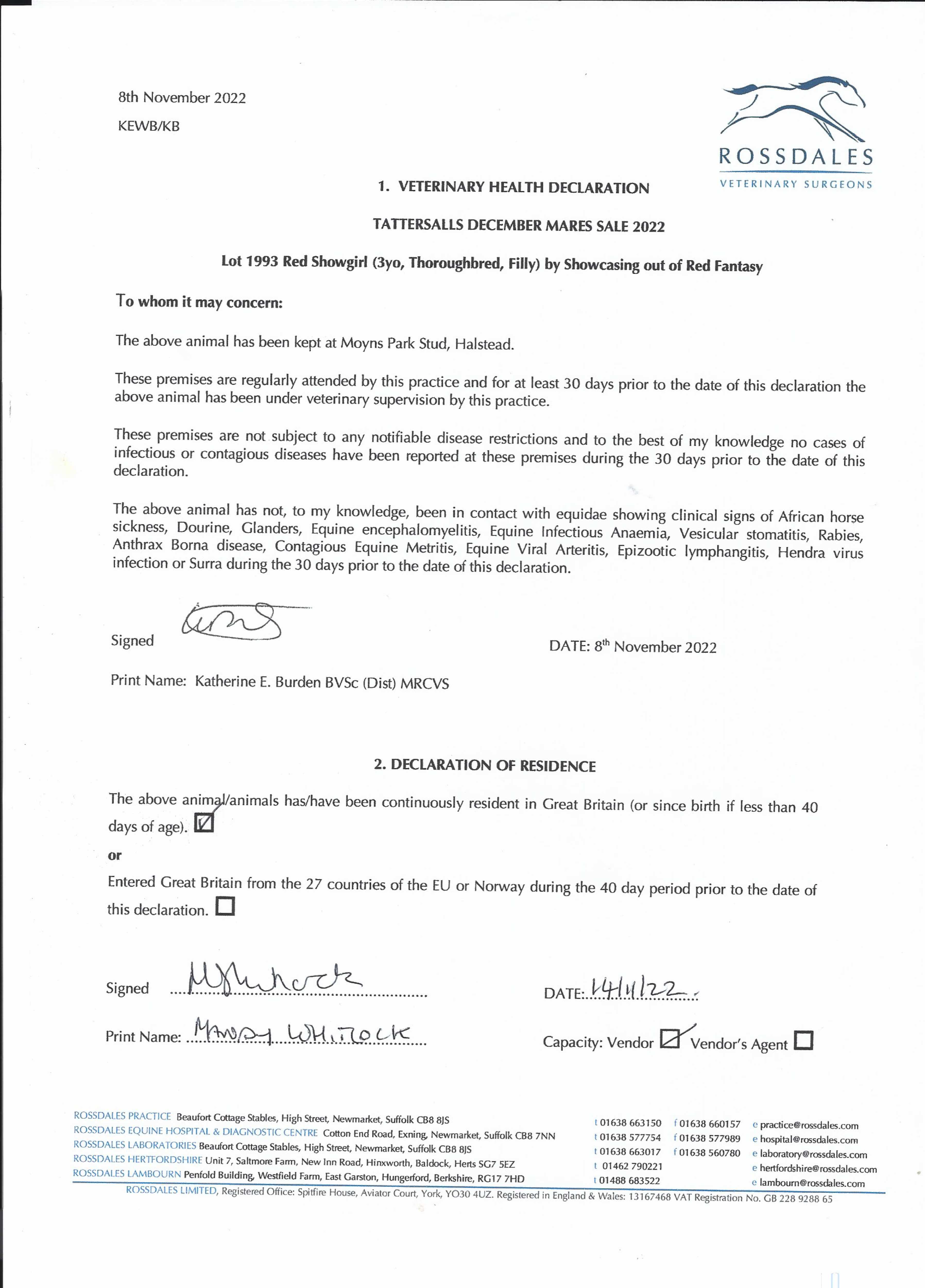 Consignor: Moyns Park Stud