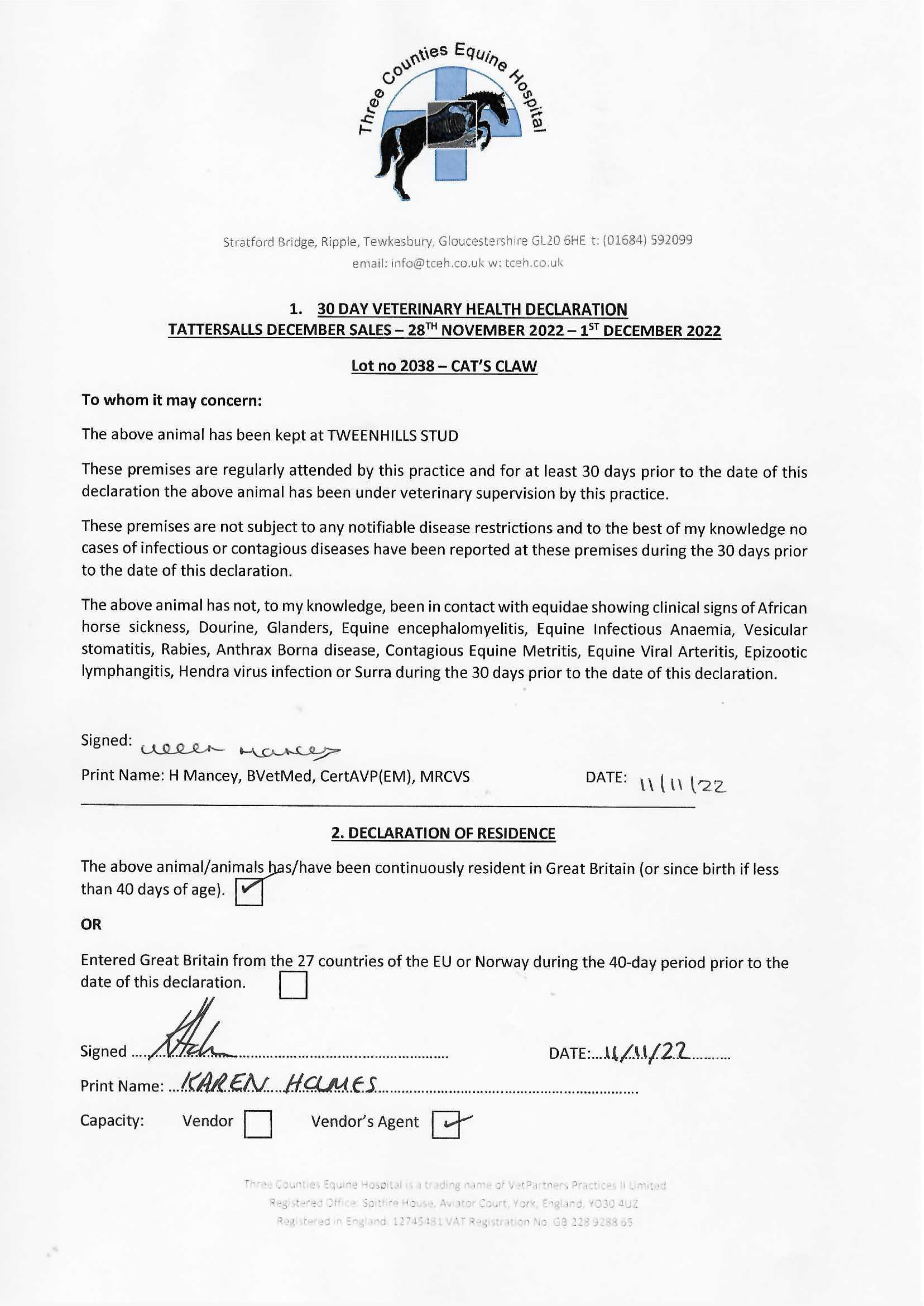 Consignor: Tweenhills Farm & Stud