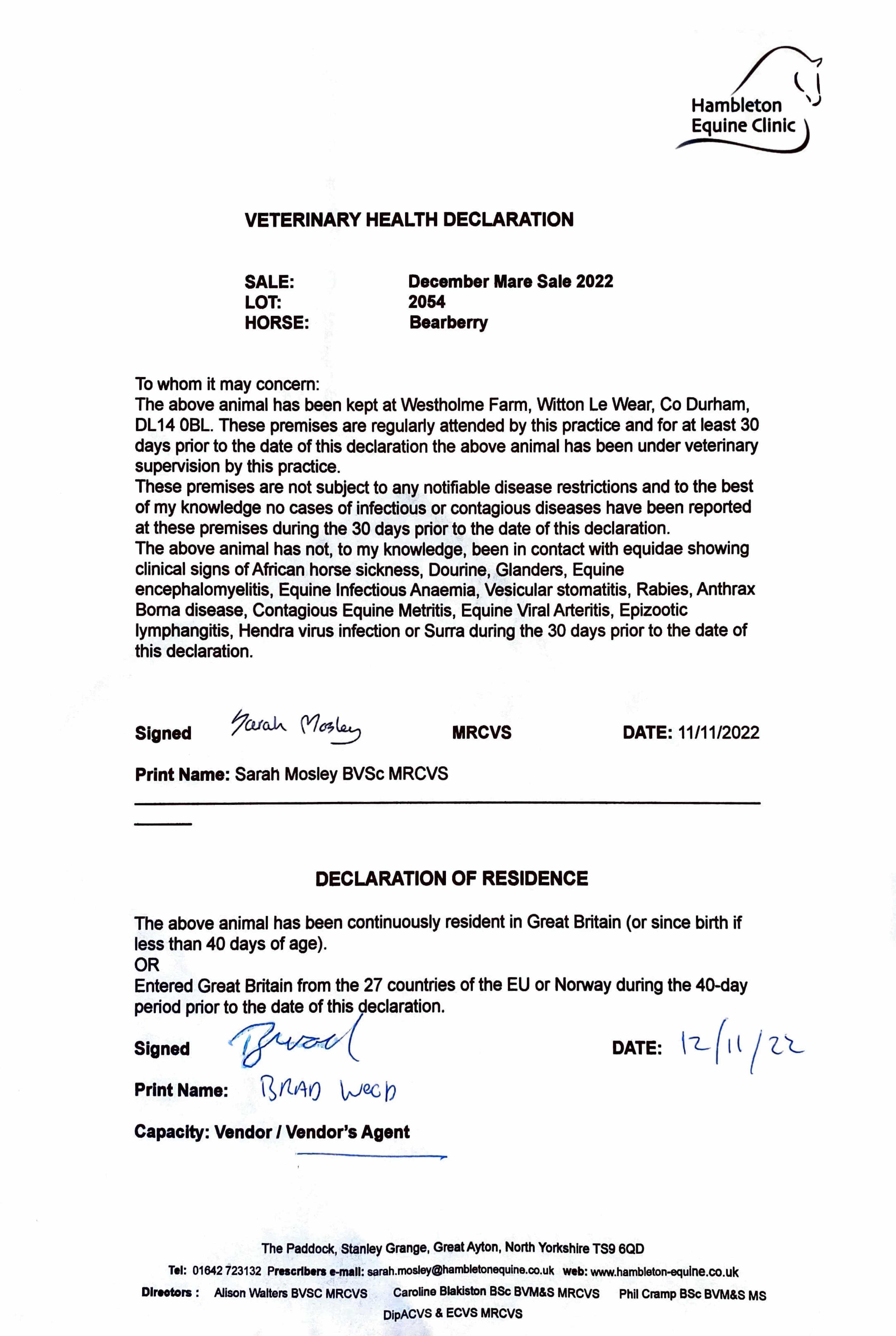 Online Sale - 18th January 2024 lot 1 Techno Lady (IRE) (F. by Camacho (GB)), Musley Bank Stables (R. Fahey)=>Vendor 1,000 gns