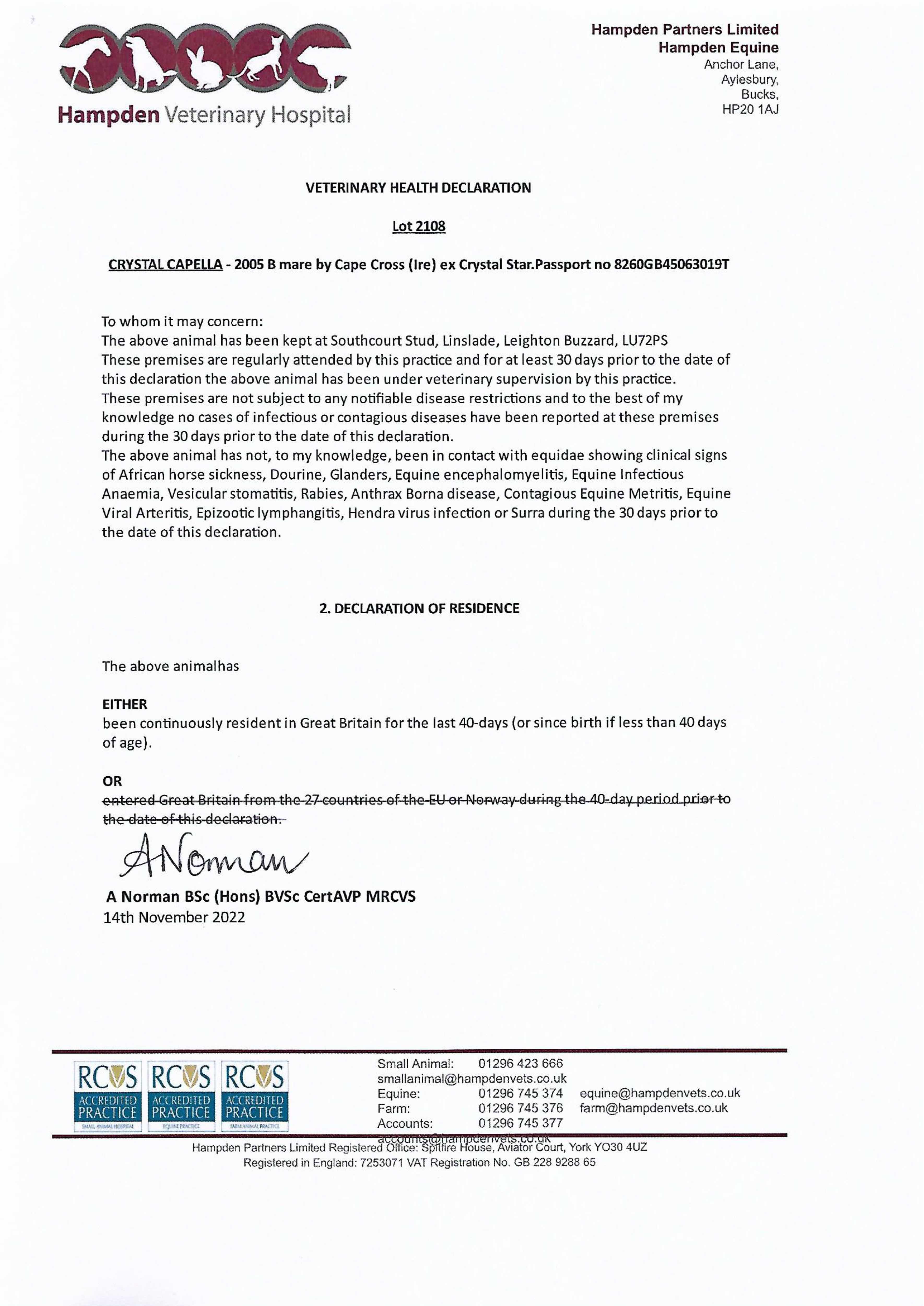 December Mare Sale 2022 lot 1953 A Capella Queen (GB) (F. by Kingman (GB)), Freemason Lodge Stables (Sir M. Stoute)=>Hurworth Bloodstock 32,000 gns