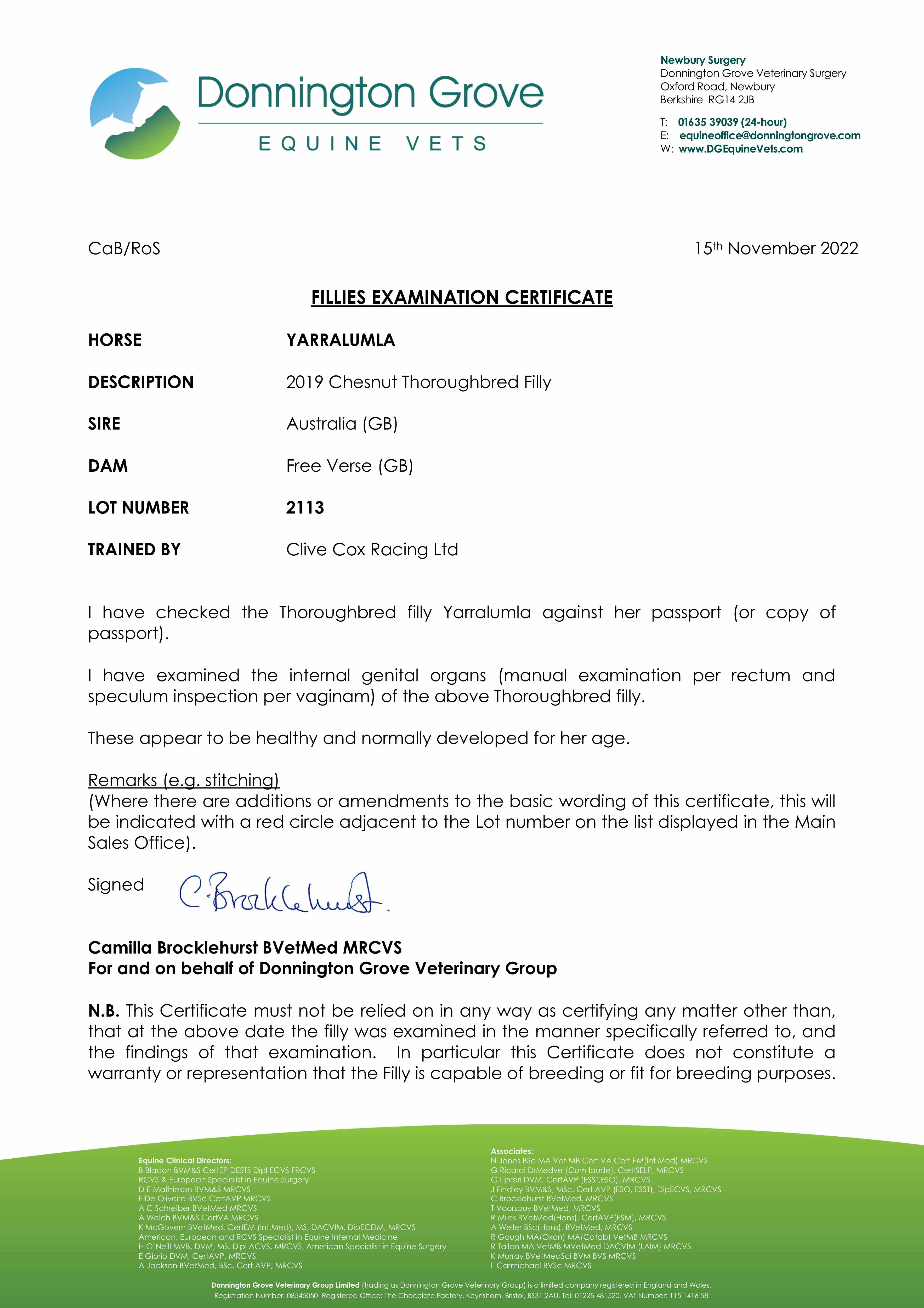 July Sale 2021 lot 833 Bookmark (GB) (F. by New Approach (IRE)), Fitzroy House (M. Bell)=>MLW Bell Racing 12,000 gns