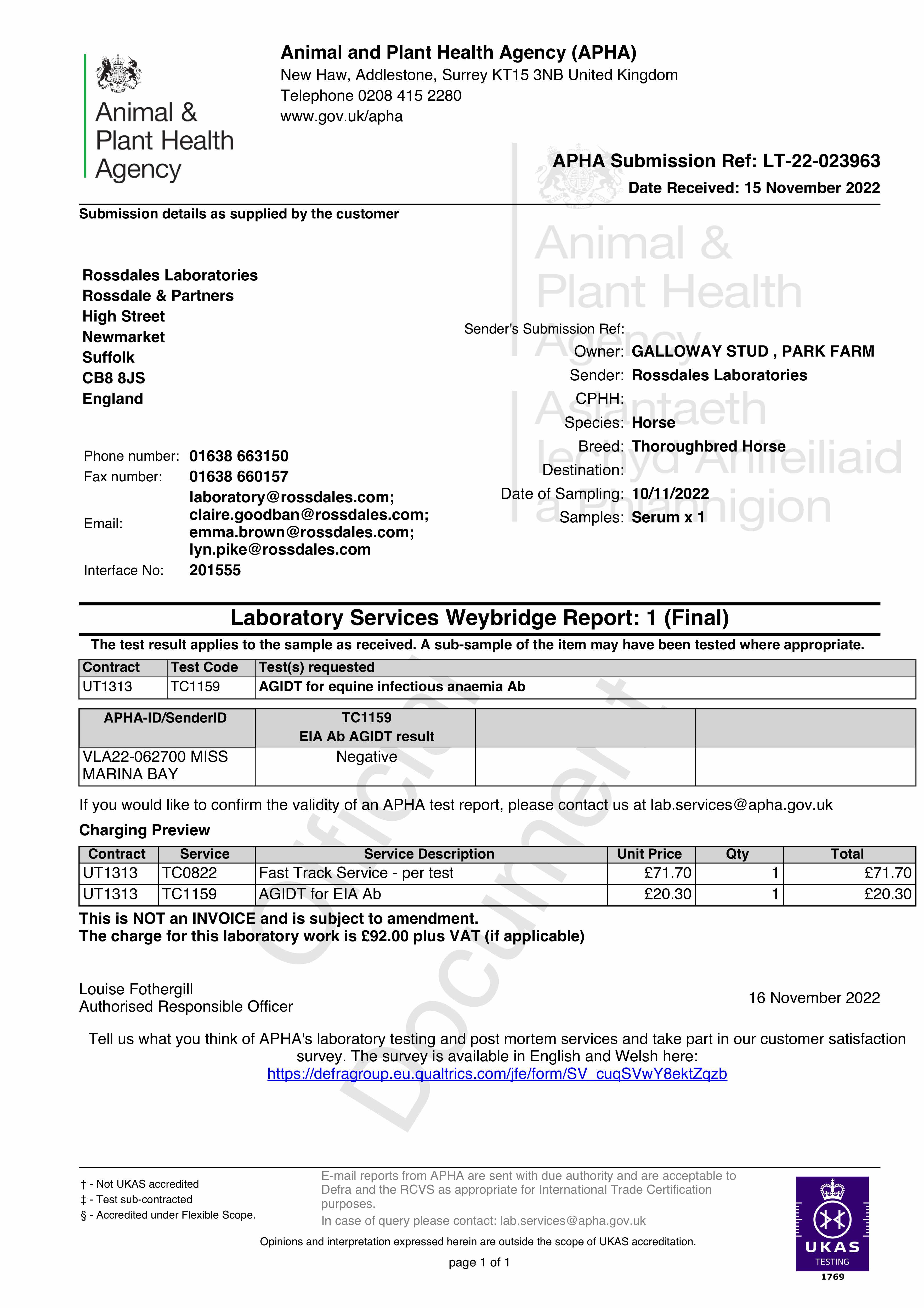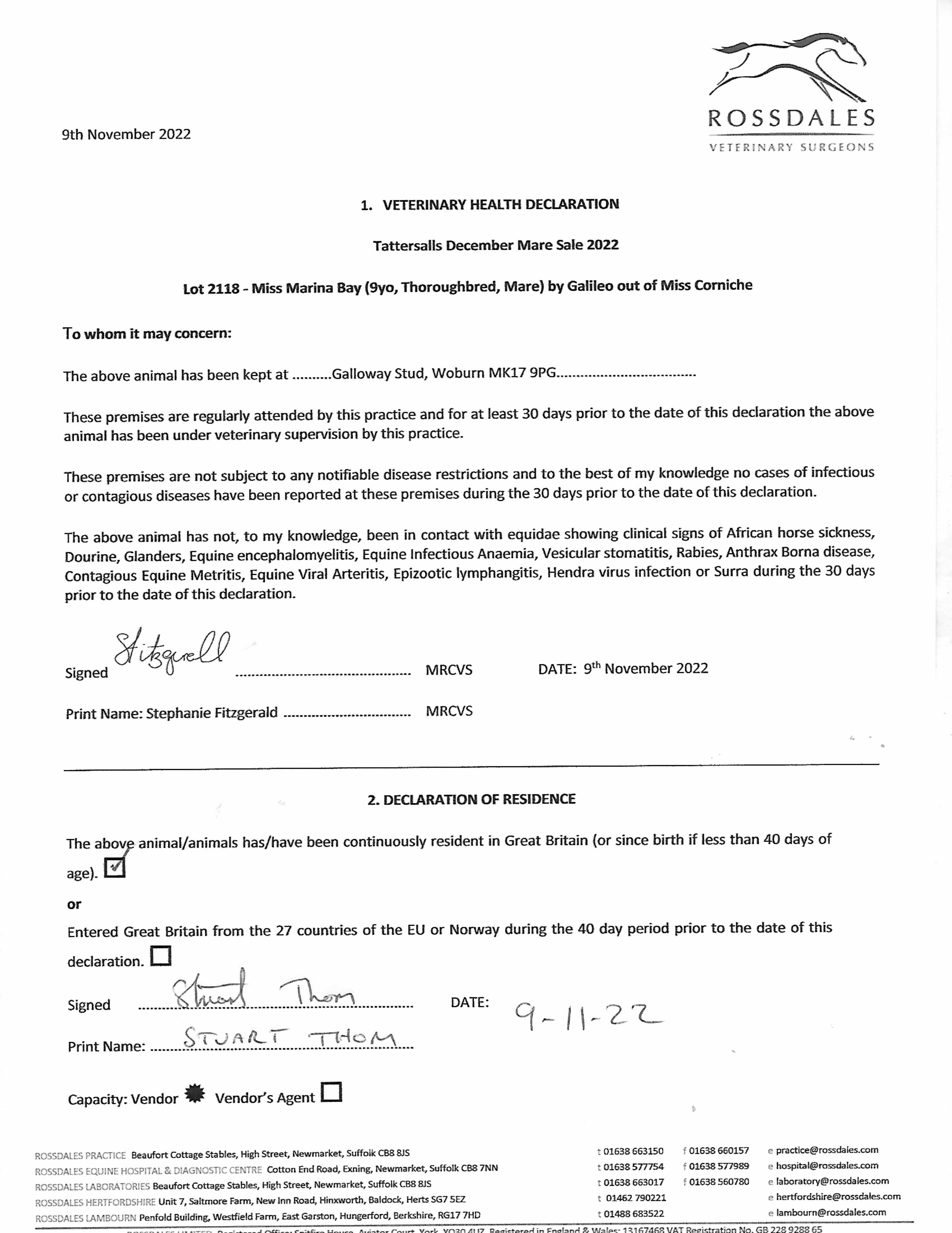 December Mare Sale 2010 lot 2242 Miss Chaumiere (GB) (F. by Selkirk (USA)), Fitzroy House Stables (M. Bell)=>Lot Not Sold