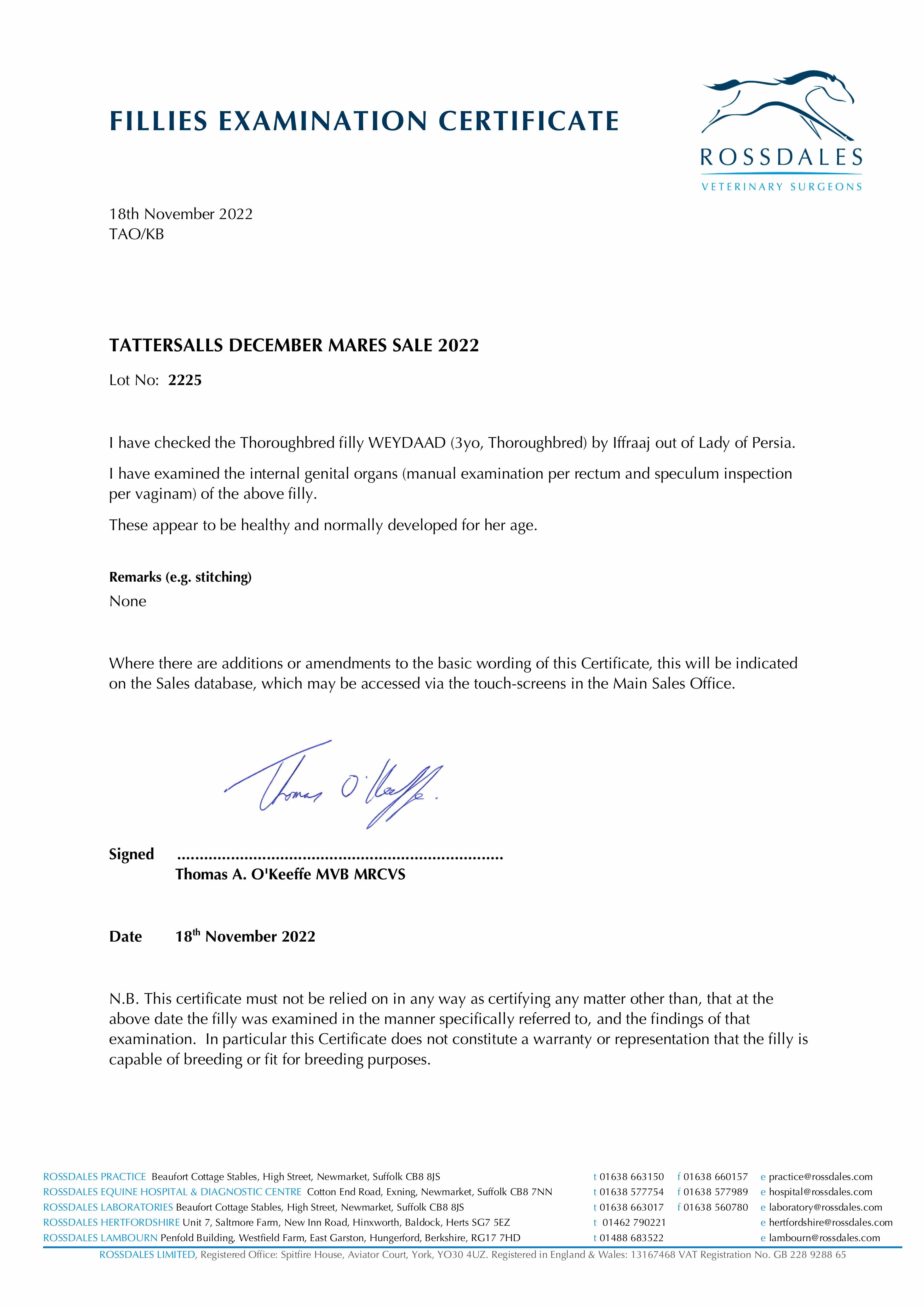 December Foal Sale 2024 lot 961 F. by Dark Angel (IRE) 2024, Tinnakill House, Ireland=>JP Bloodstock 80,000 gns