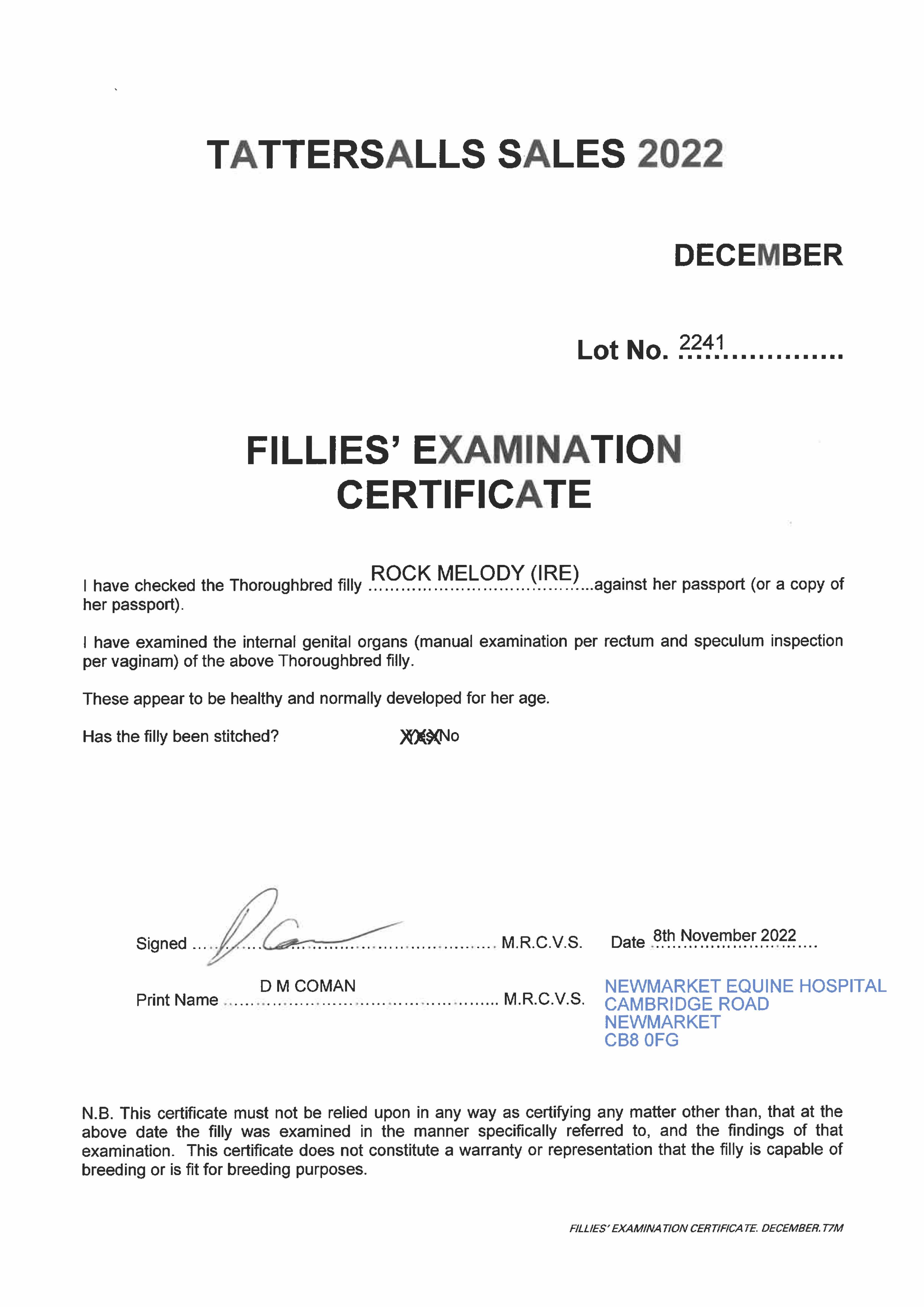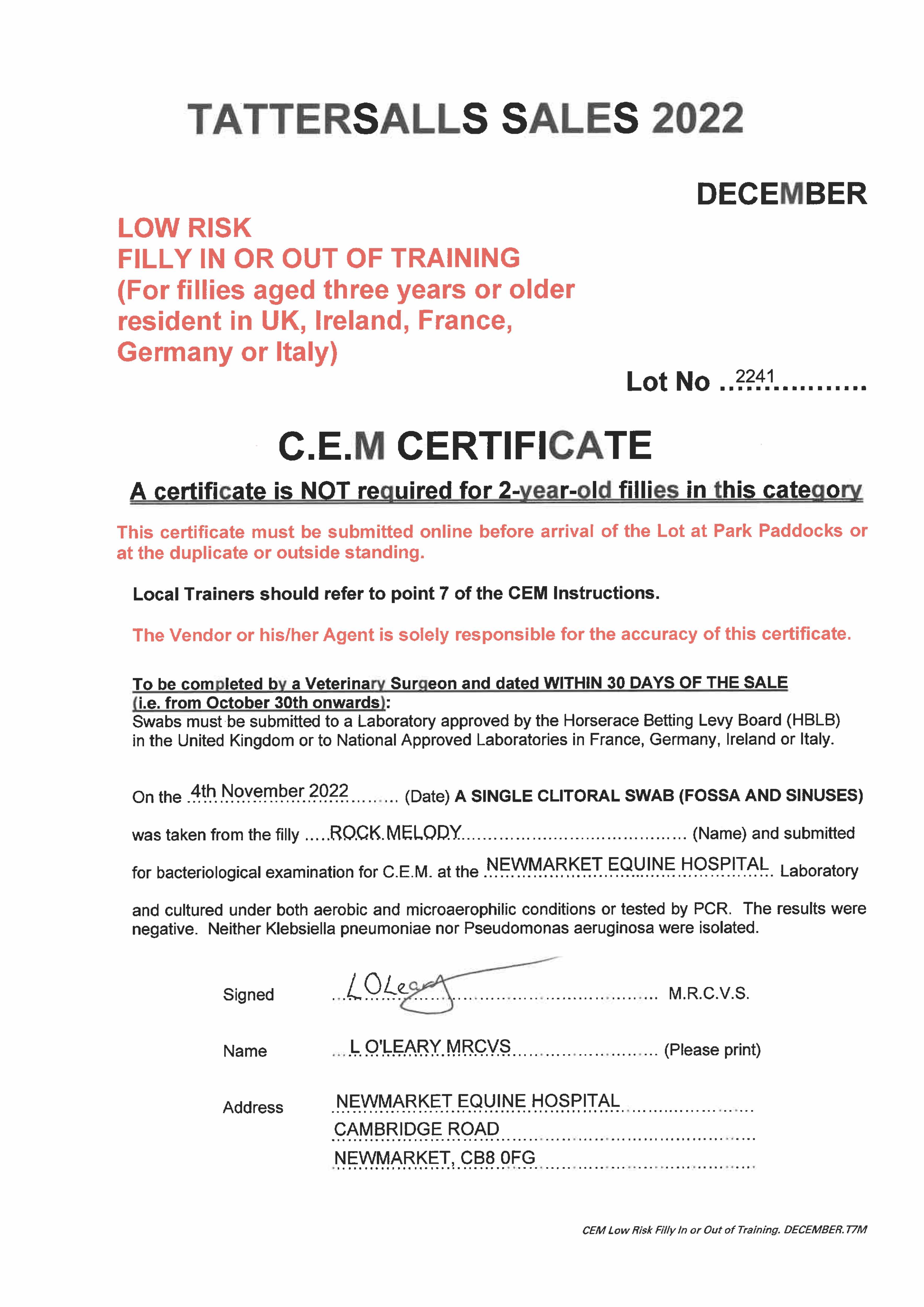 Online Sale - 23rd November 2023 lot 62 Loudest Whisper (IRE) (M. by Maxios (GB)), Corbal-lis Stud=>Lot Not Sold 1,000 gns
