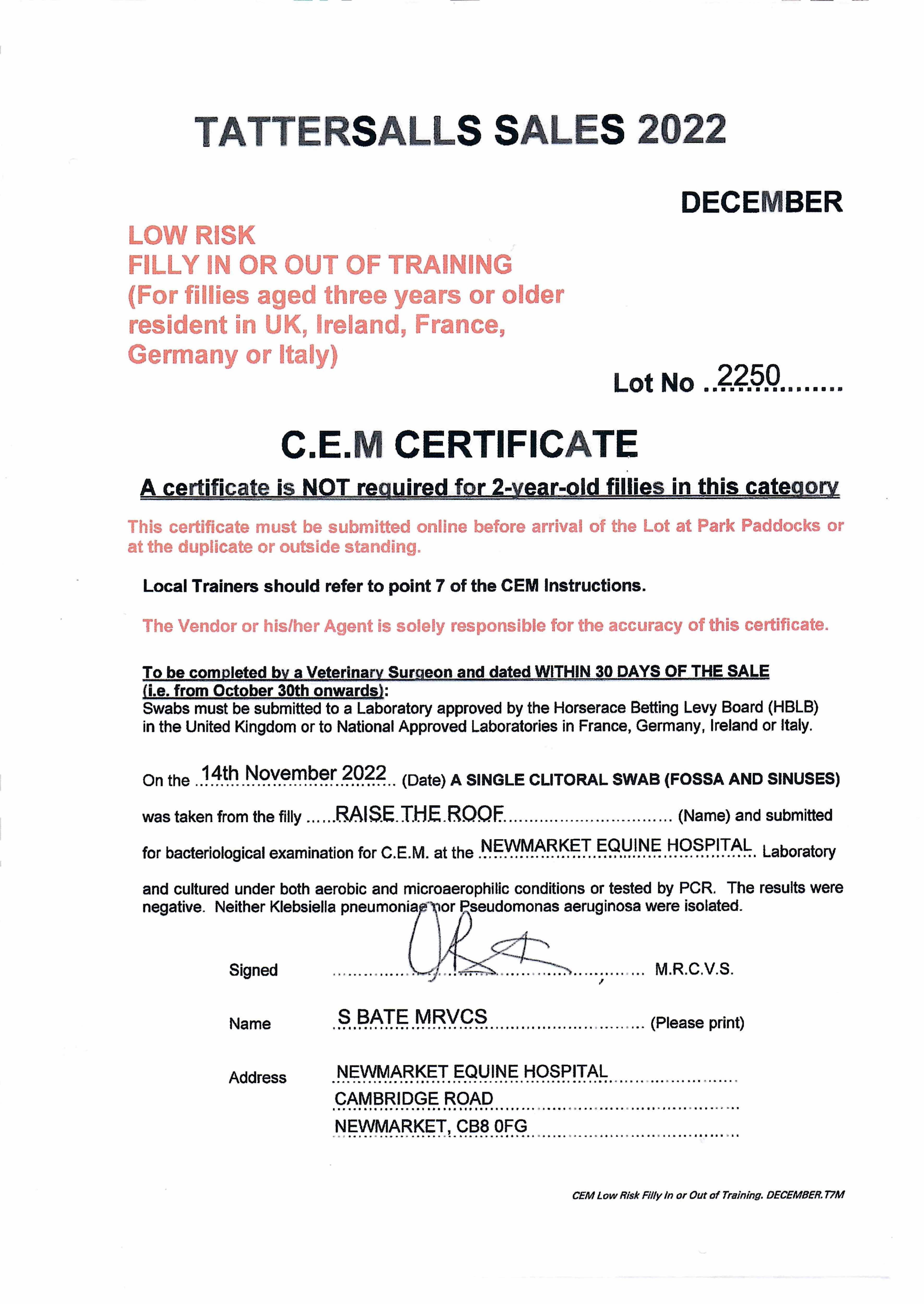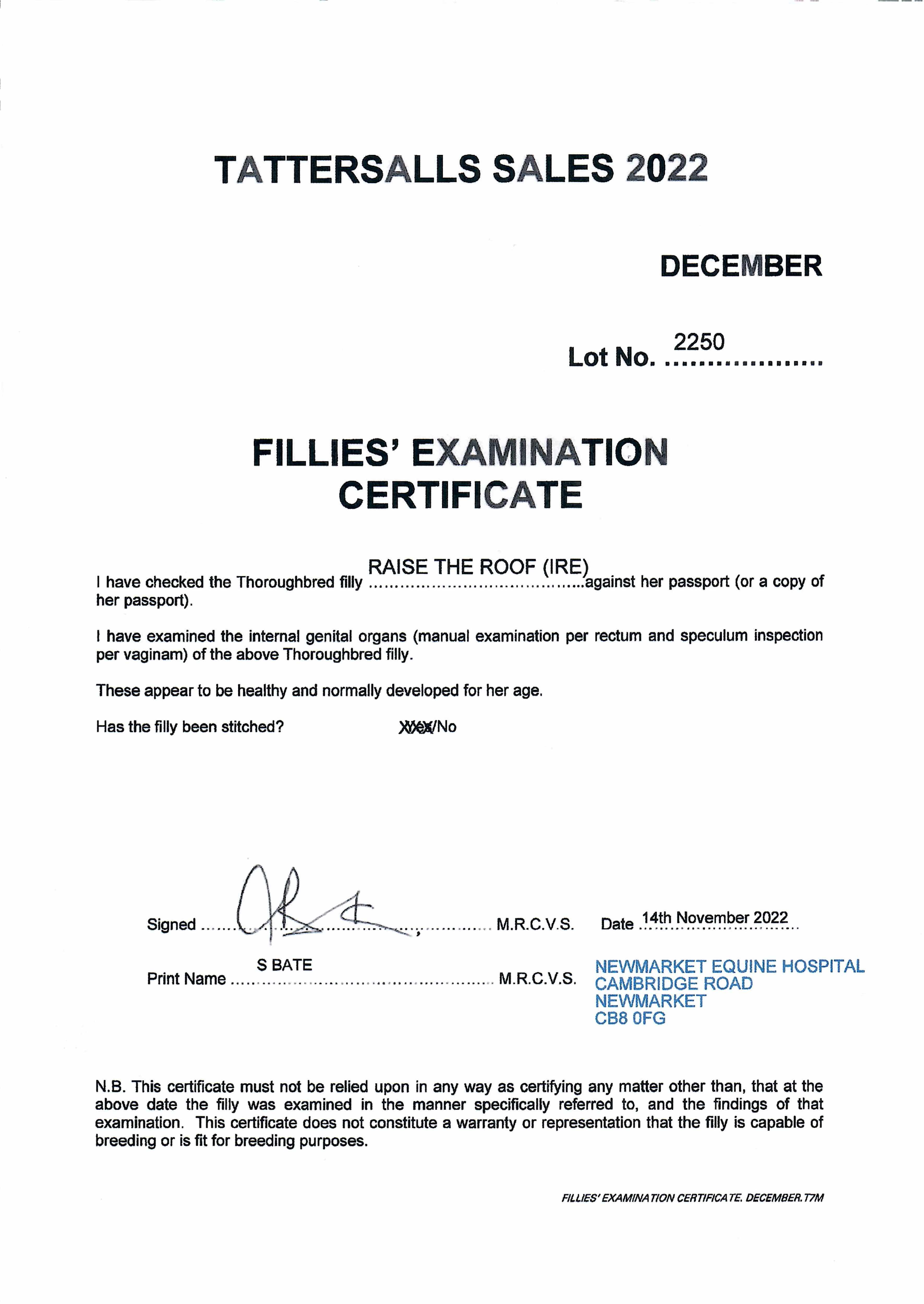 Consignor: Jamesfield Stables (J. Tate)