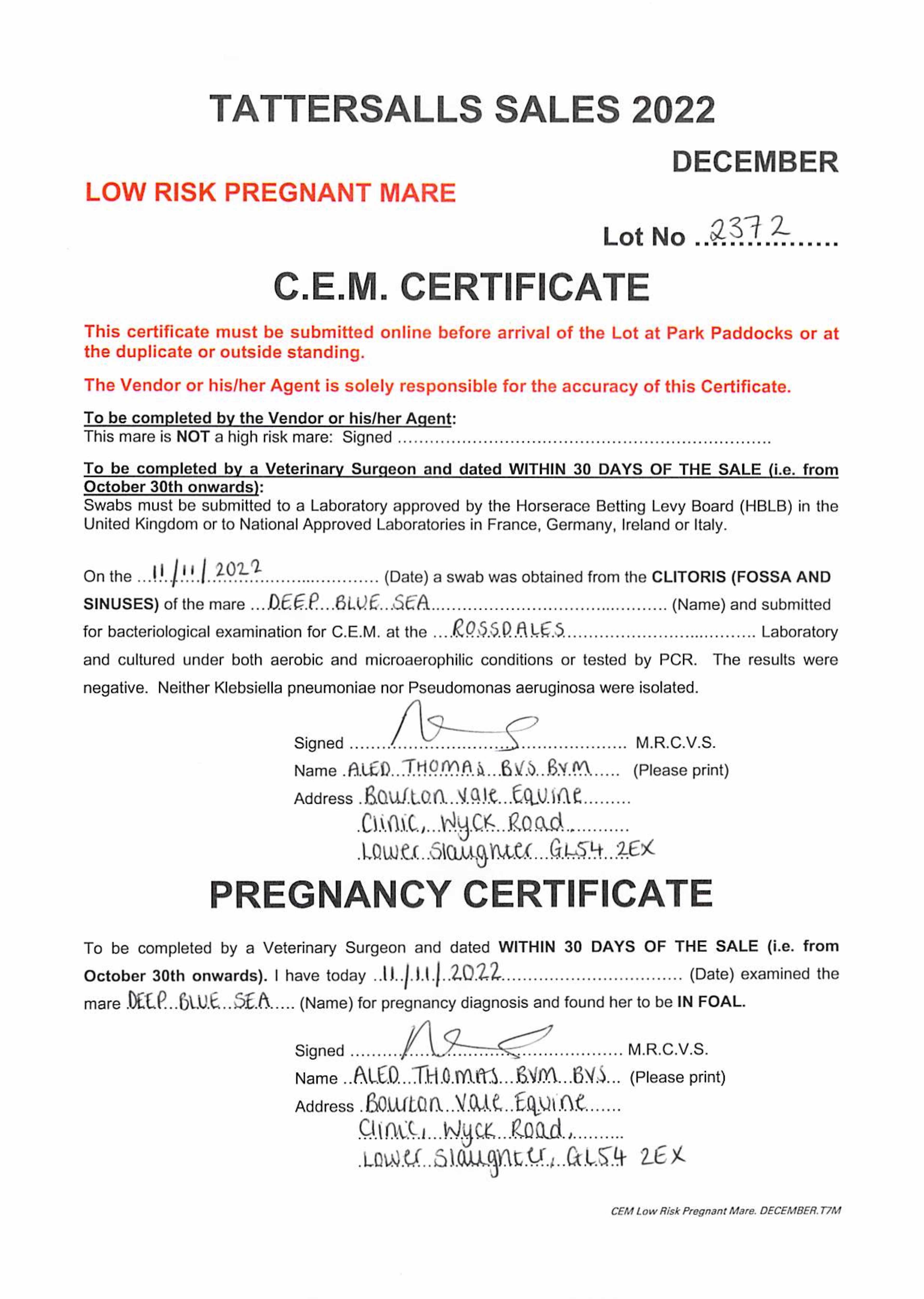 December Mare Sale 2024 lot 2098 Semaral (IRE) (M. by High Chaparral (IRE)), Moyns Park Stud - part of a Dispersal=>EAM Bloodstock 5,000 gns