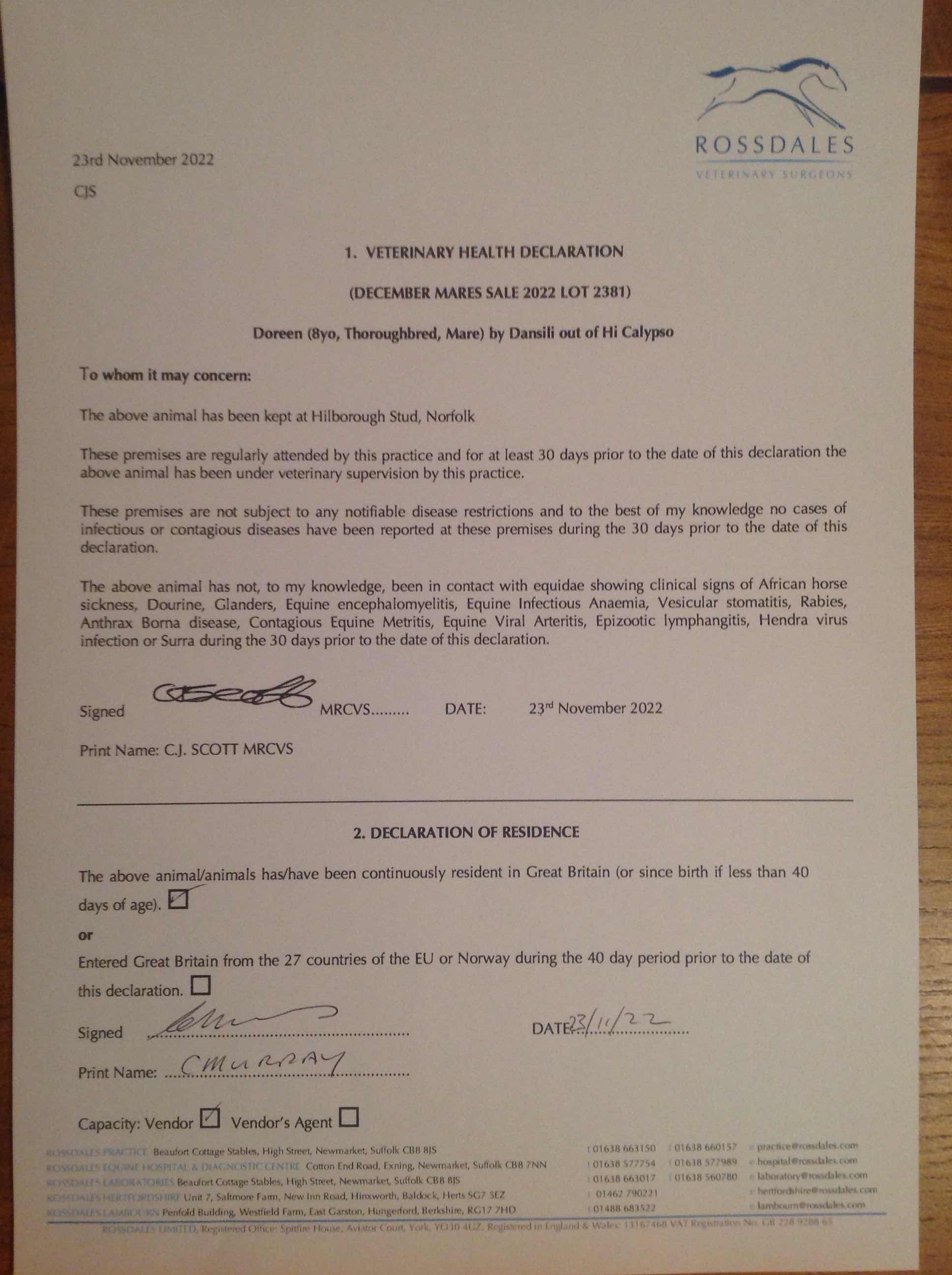 November Sale 2023 lot 32 Different Drum (GB) (G. by Sea The Moon (GER)), Jamie Railton (Agent)=>Edgar Byrne / Louise Allen 1,000 gns