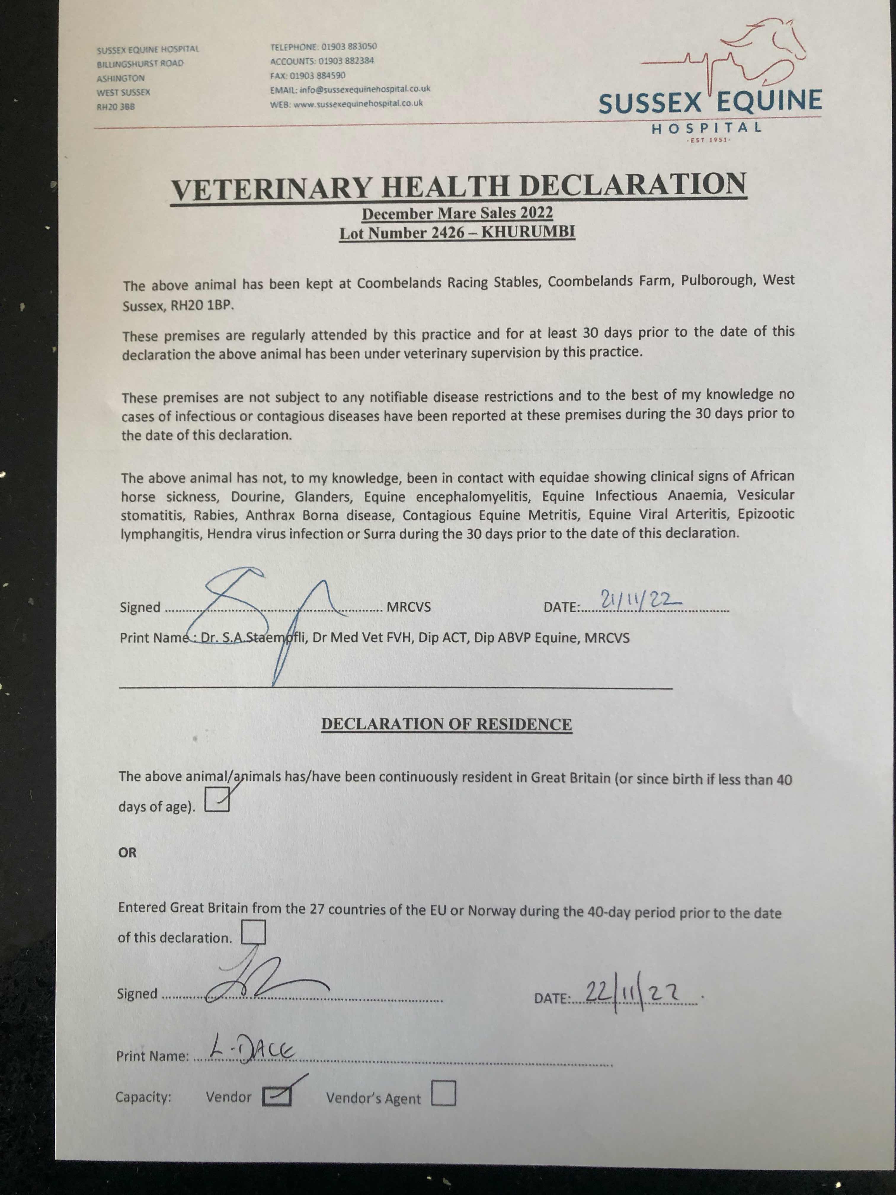 July Sale 2022 lot 467, Bethell Racing=>Luke Dace 6,500 gns