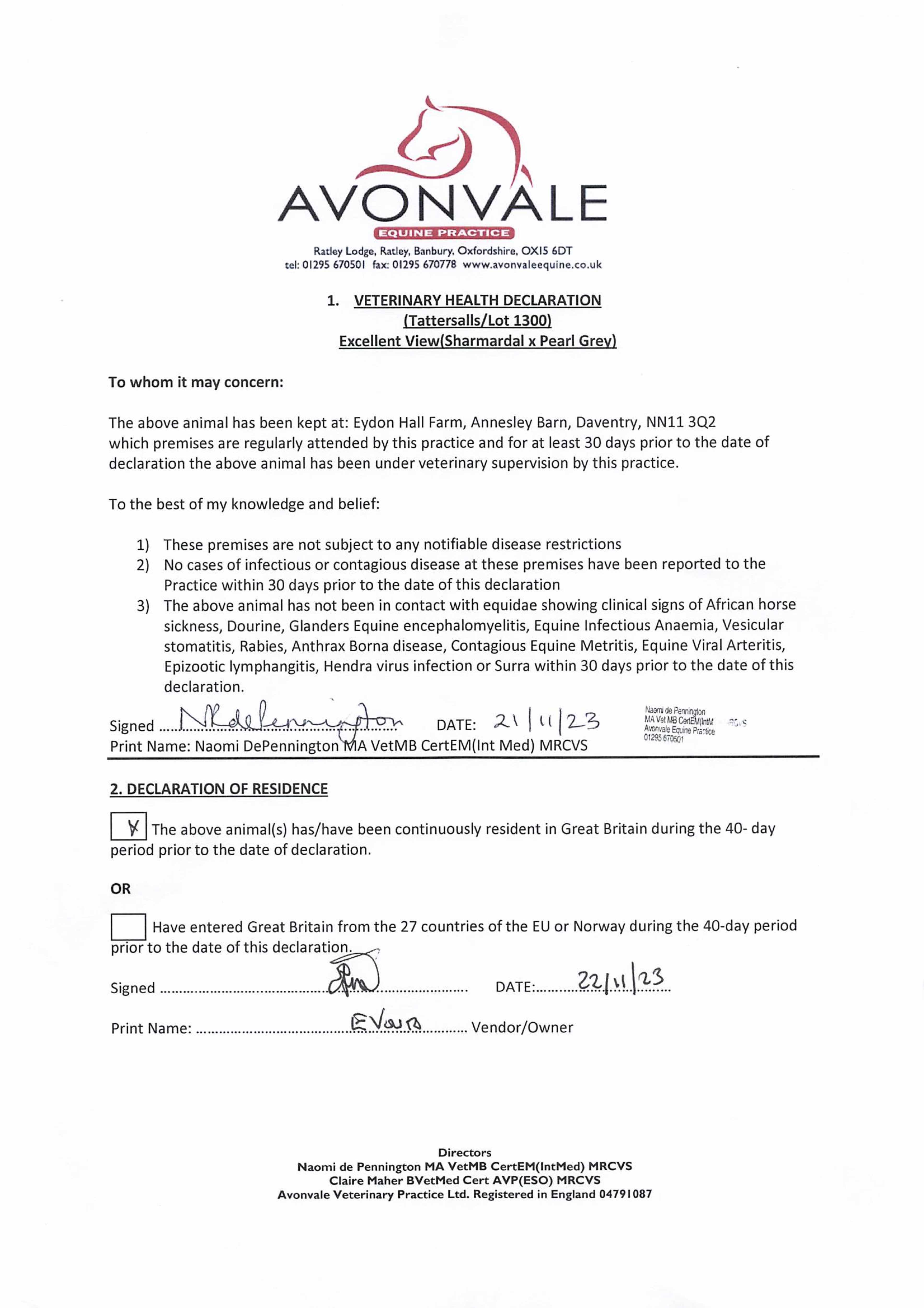Consignor: Voute Sales Ltd. (Agent)