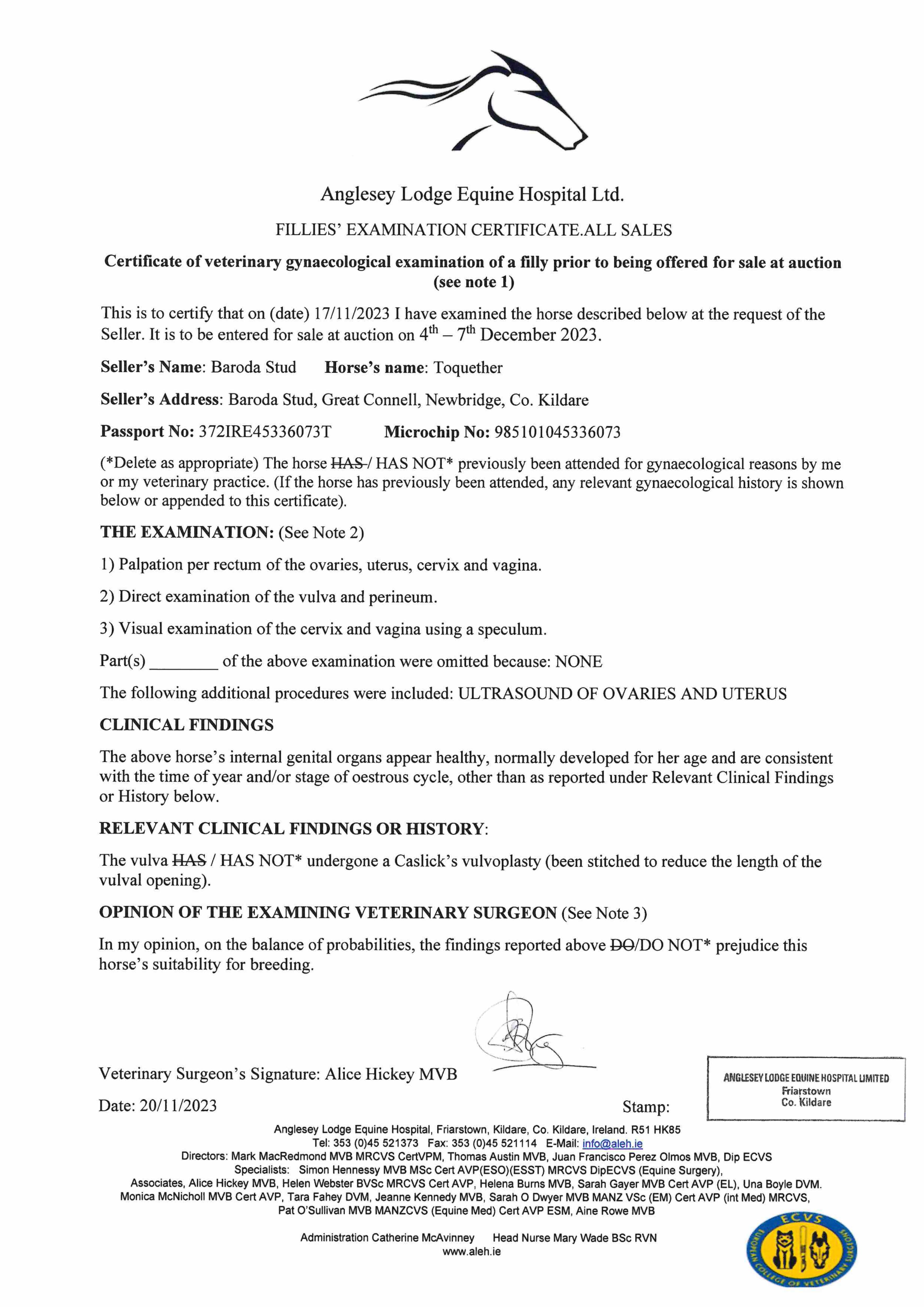 October Yearling Sale, Book 2 2023 lot 781 F. by Pinatubo (IRE) 2022, Corduff Stud, Ireland=>Justin Casse Agent 325,000 gns