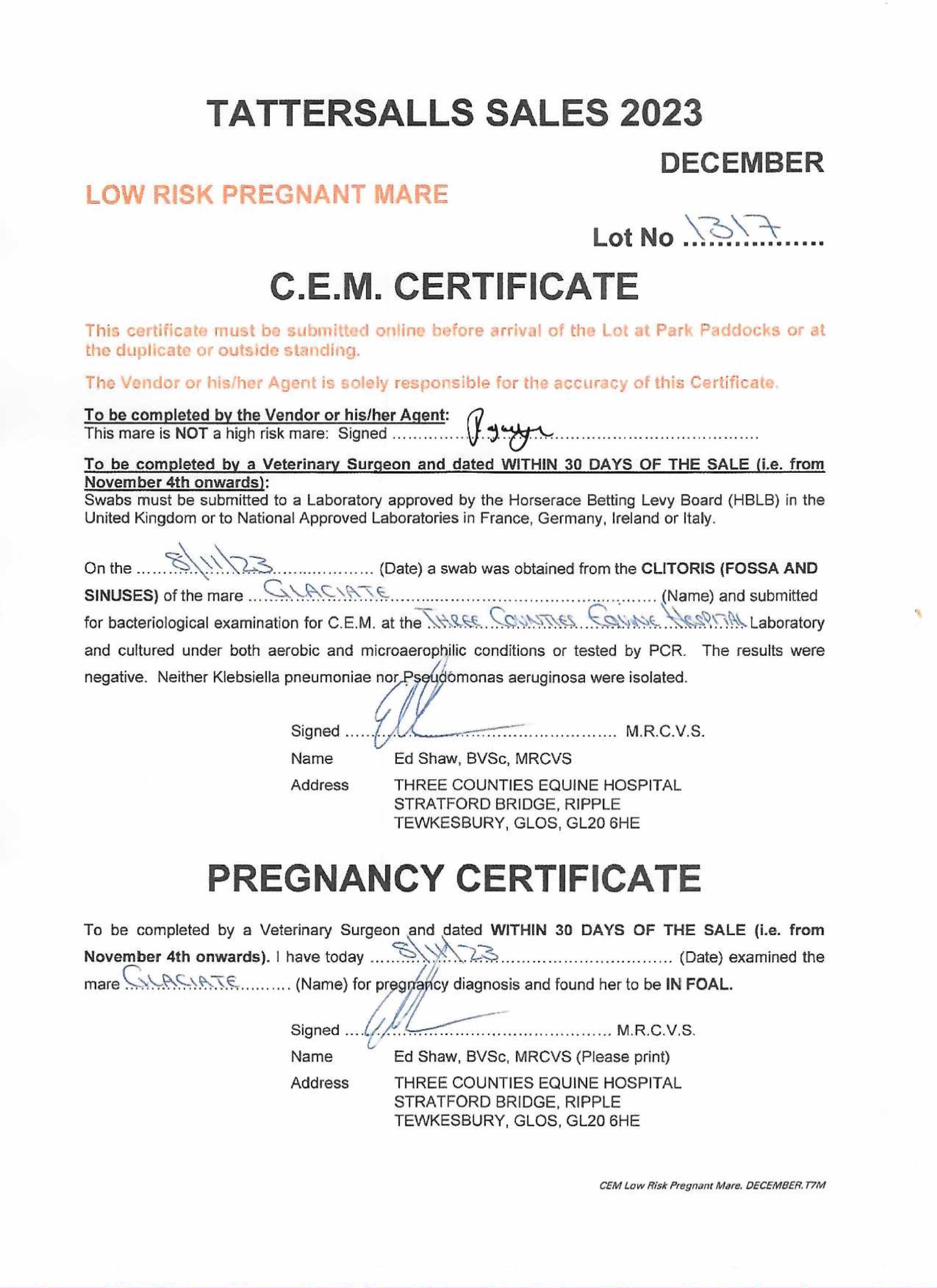 December Mare Sale 2015 lot 1795 Icy Quiet (GB) (M. by Shirocco (GER)), White Bloodstock=>Lot Not Sold 85,000 gns