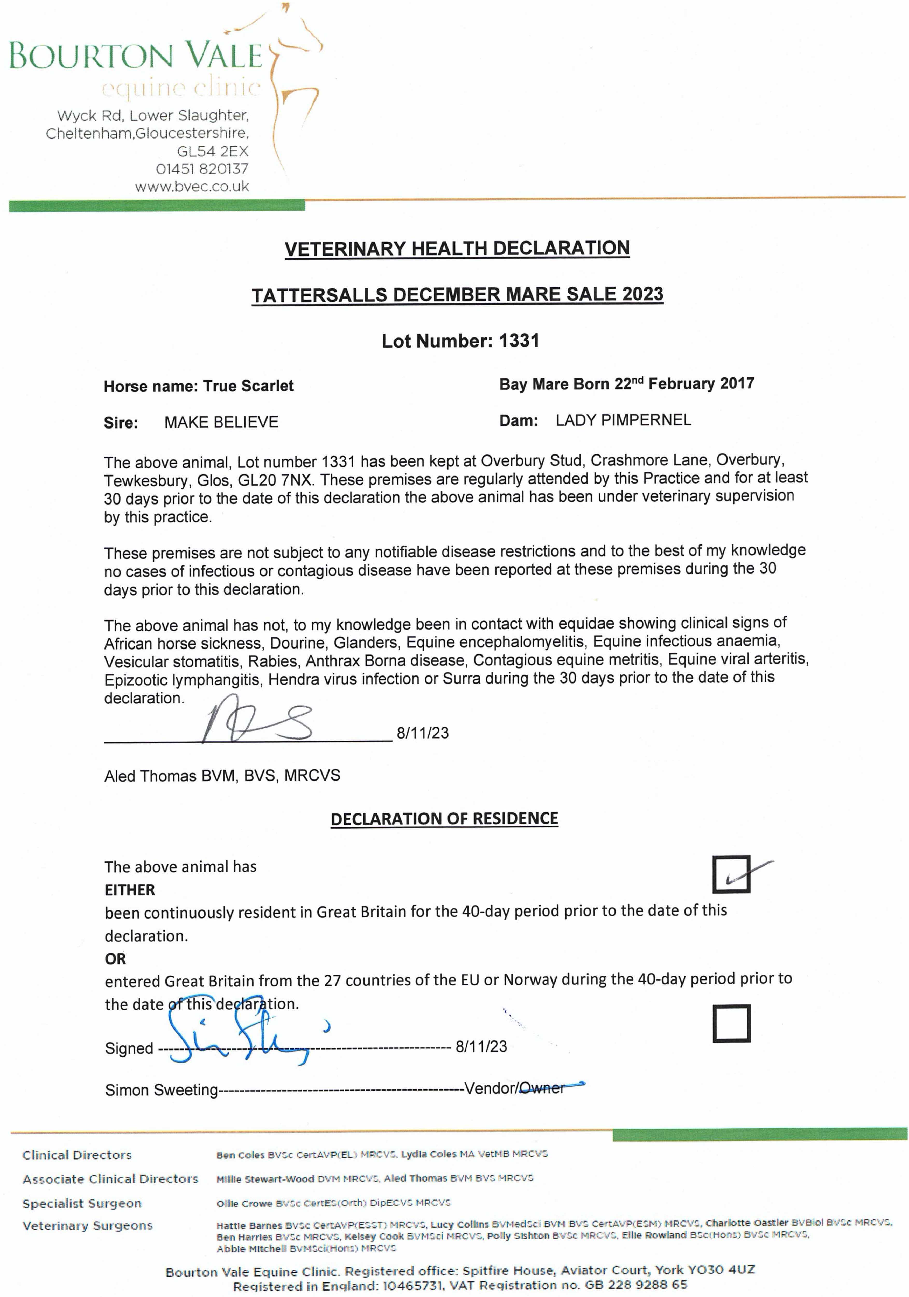Consignor: Overbury Stud