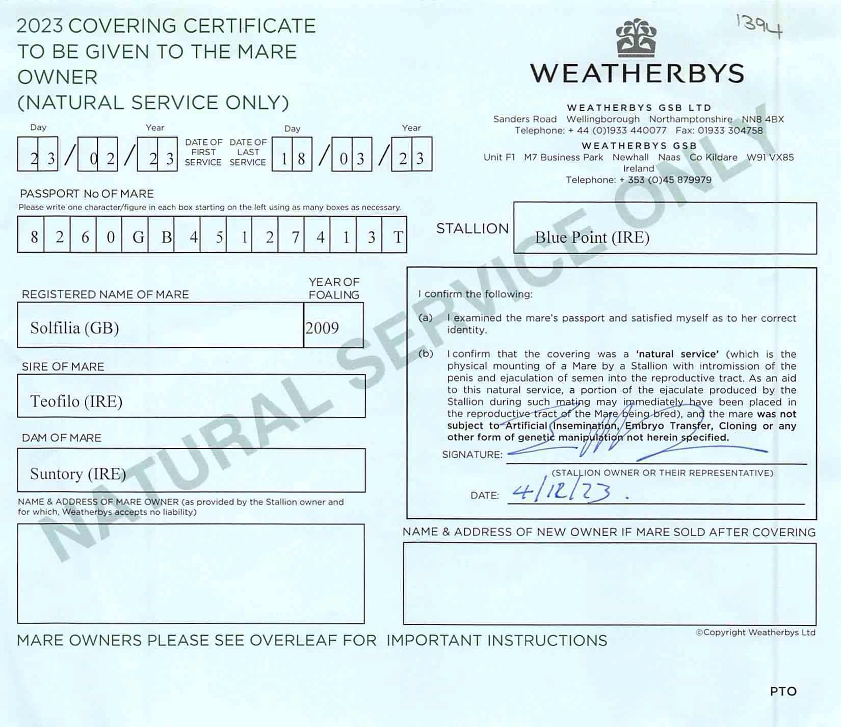 December Mare Sale 2012 lot 1565, Summerdown Stables (H. Morrison)=>Vendor 31,000 gns