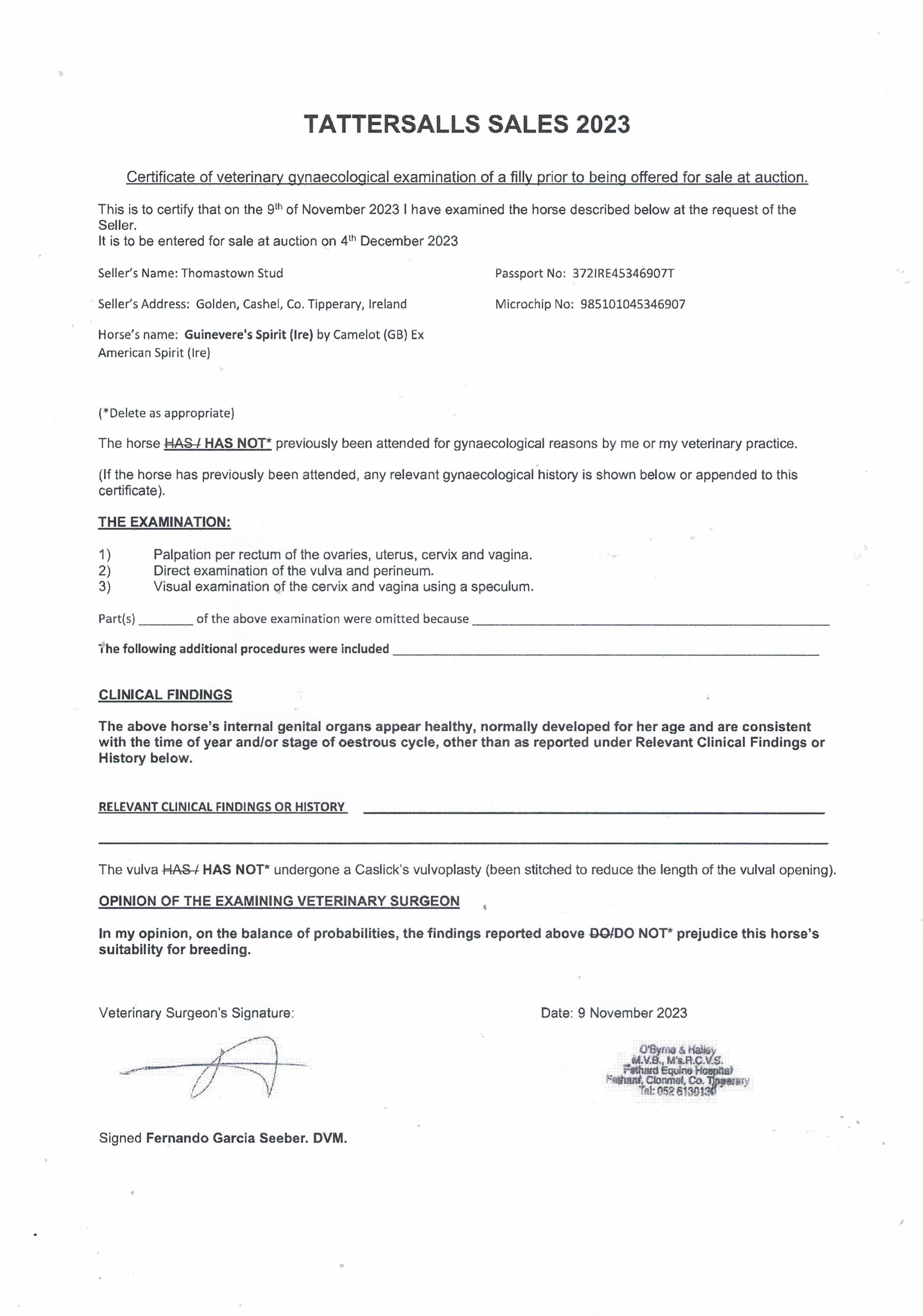 Consignor: Thomastown Castle Stables, Ireland (J. A. Stack)