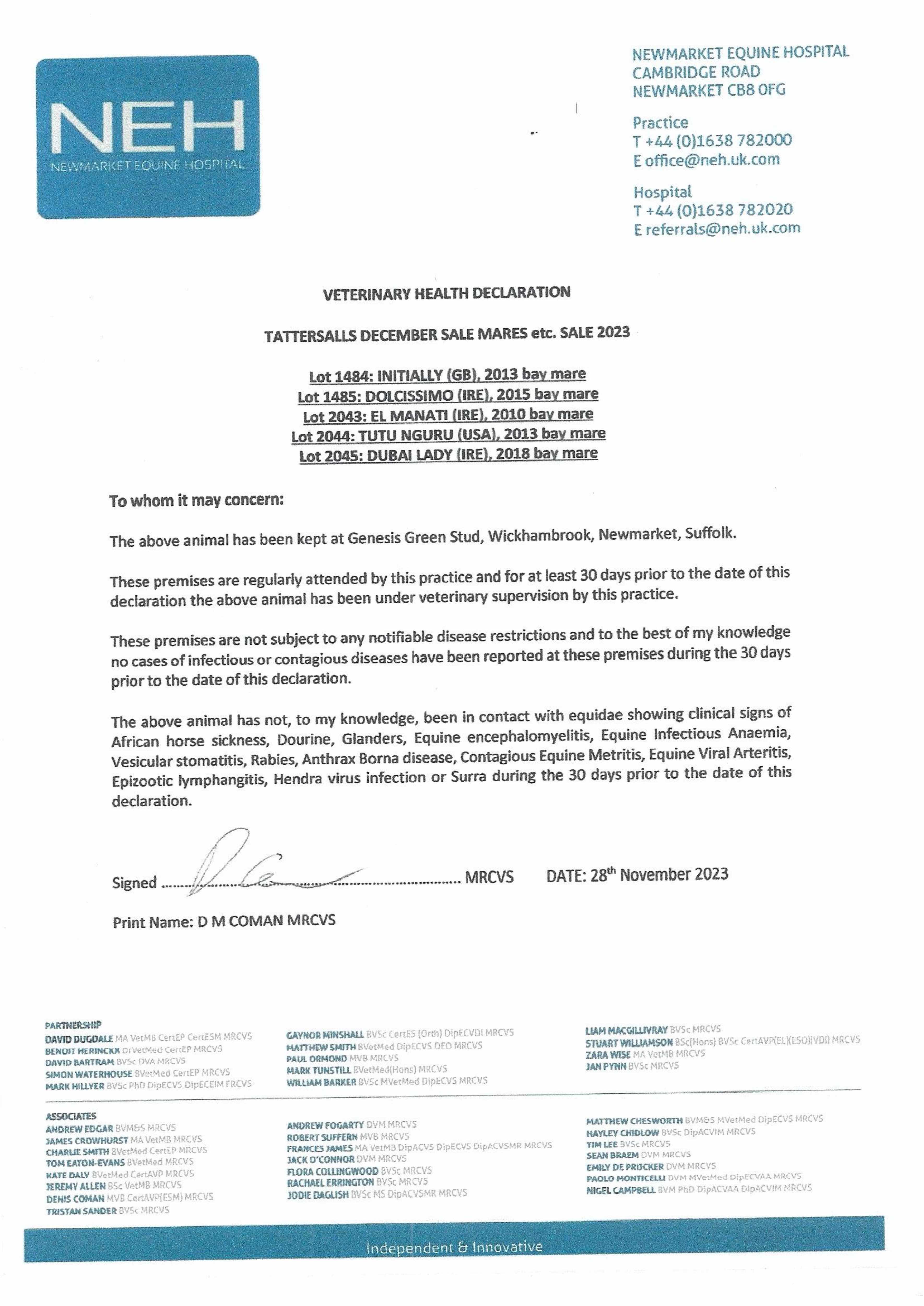 Consignor: Genesis Green Stud Ltd.