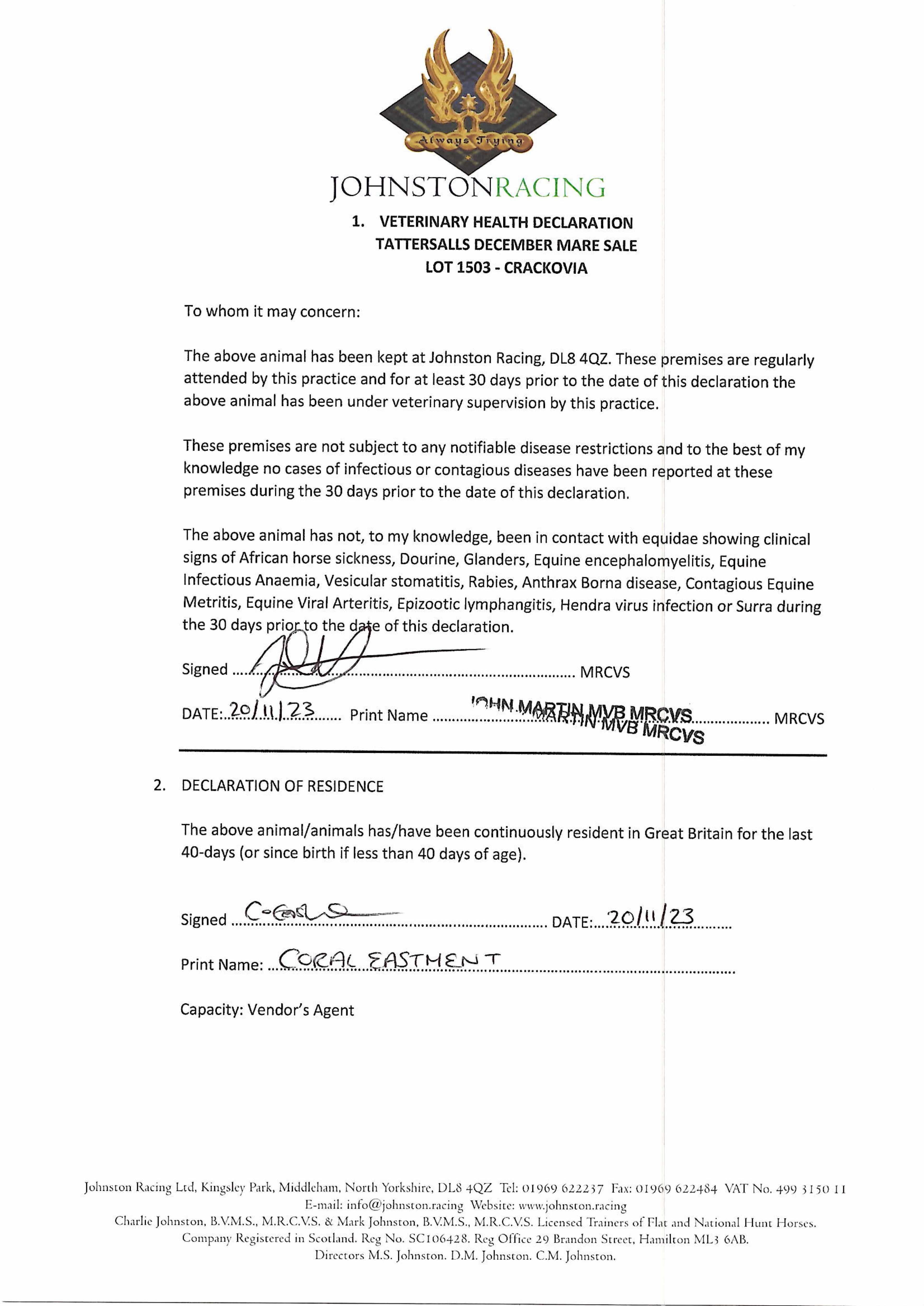 Consignor: Kingsley Park