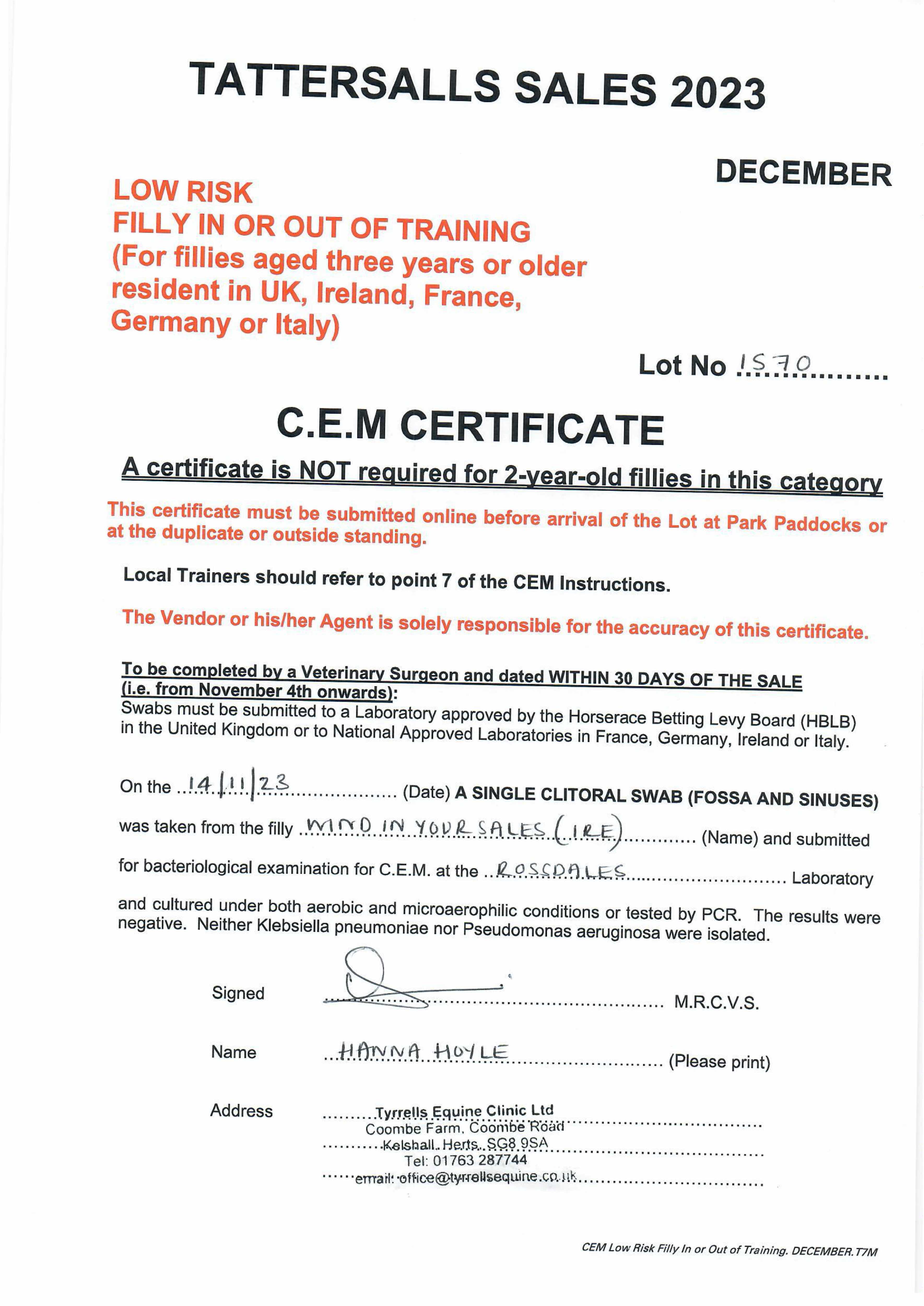 October Yearling Sale, Book 2 2024 lot 618 F. by Mehmas (IRE) 2023, Corduff Stud, Ireland=>Finbar Kent Bloodstock 90,000 gns