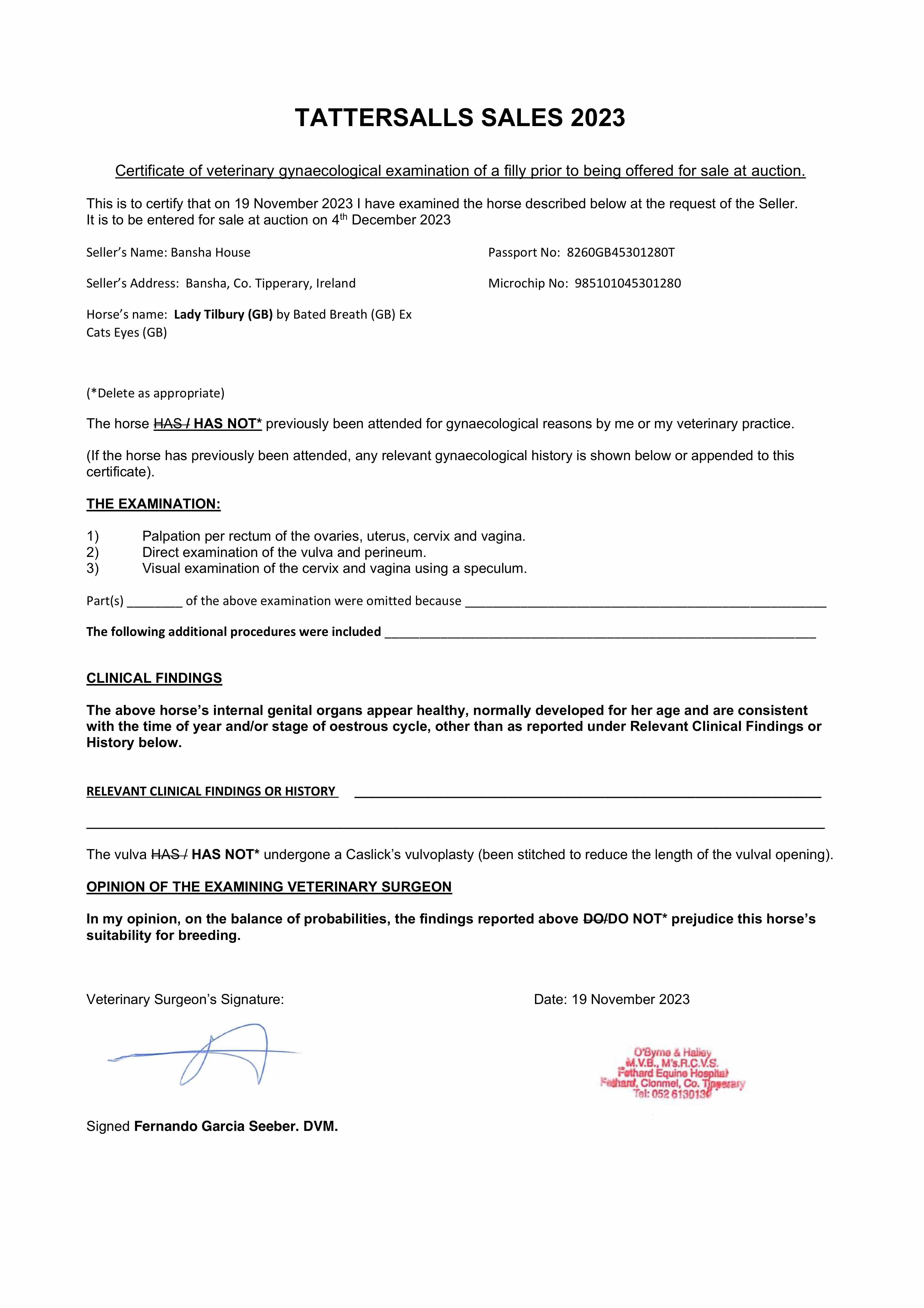 Consignor: Jamie Railton (Agent)