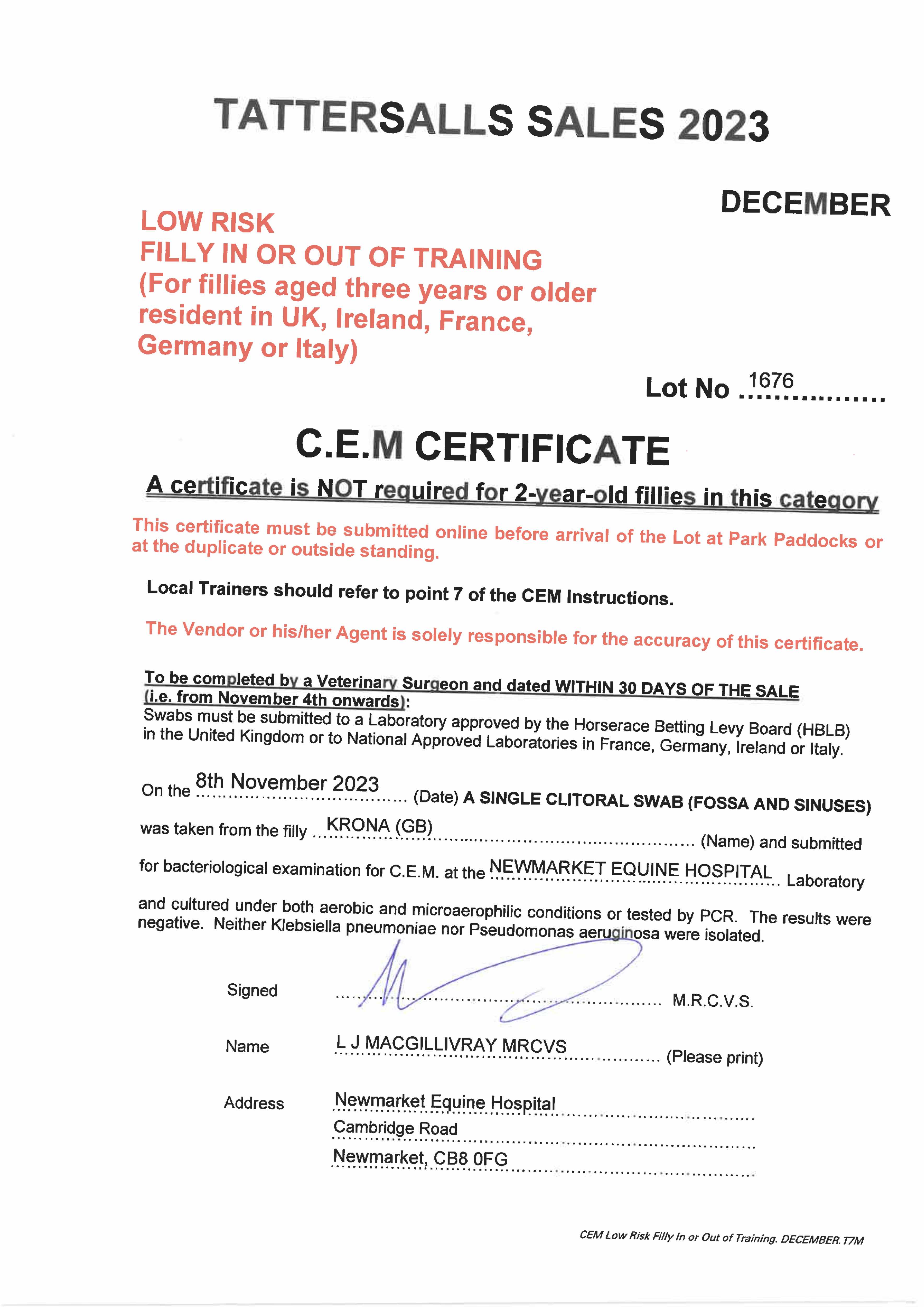 December Mare Sale 2024 lot 1540, Lanwades Stud=>The National Stud 5,000 gns