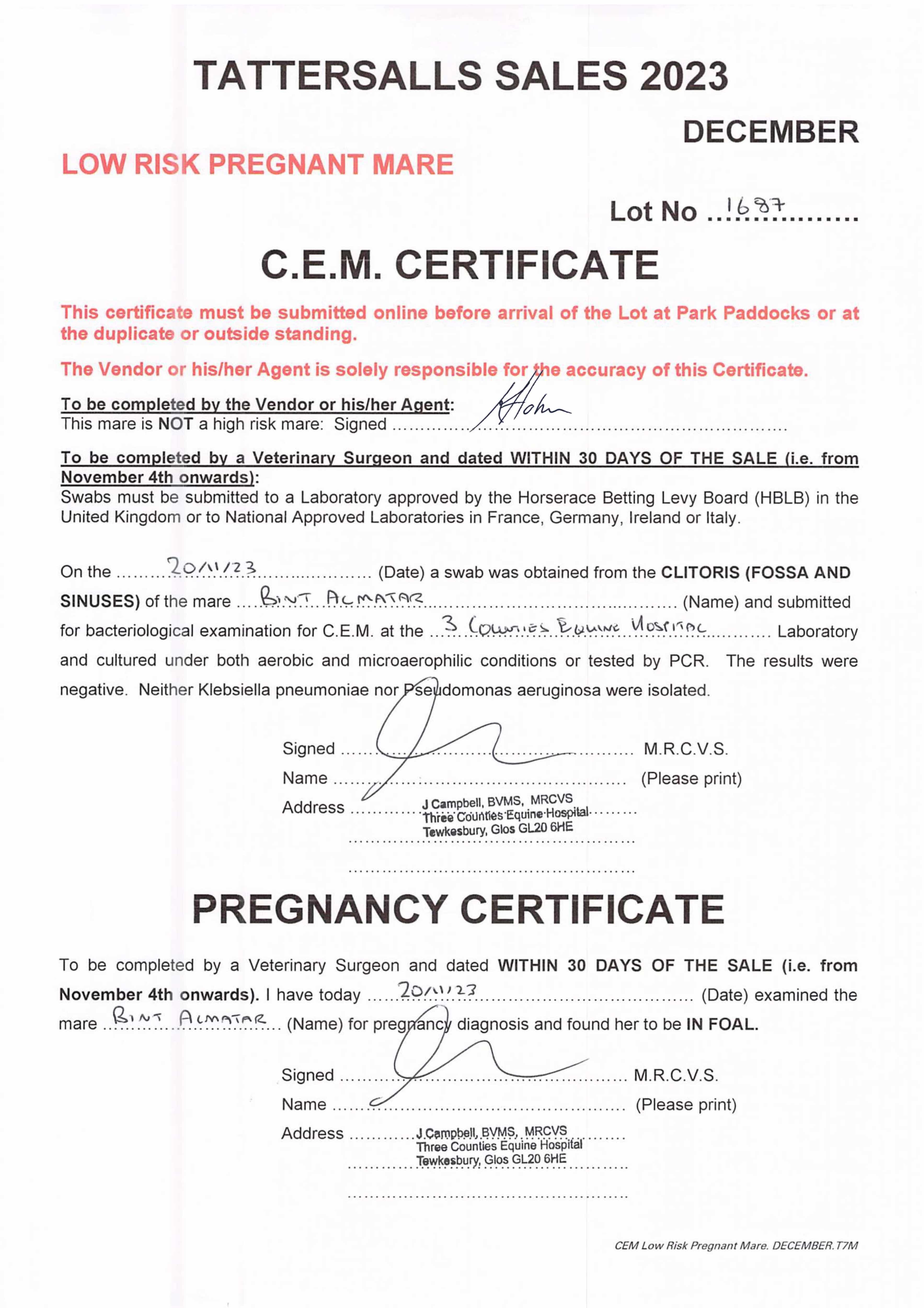 Consignor: Tweenhills Farm & Stud