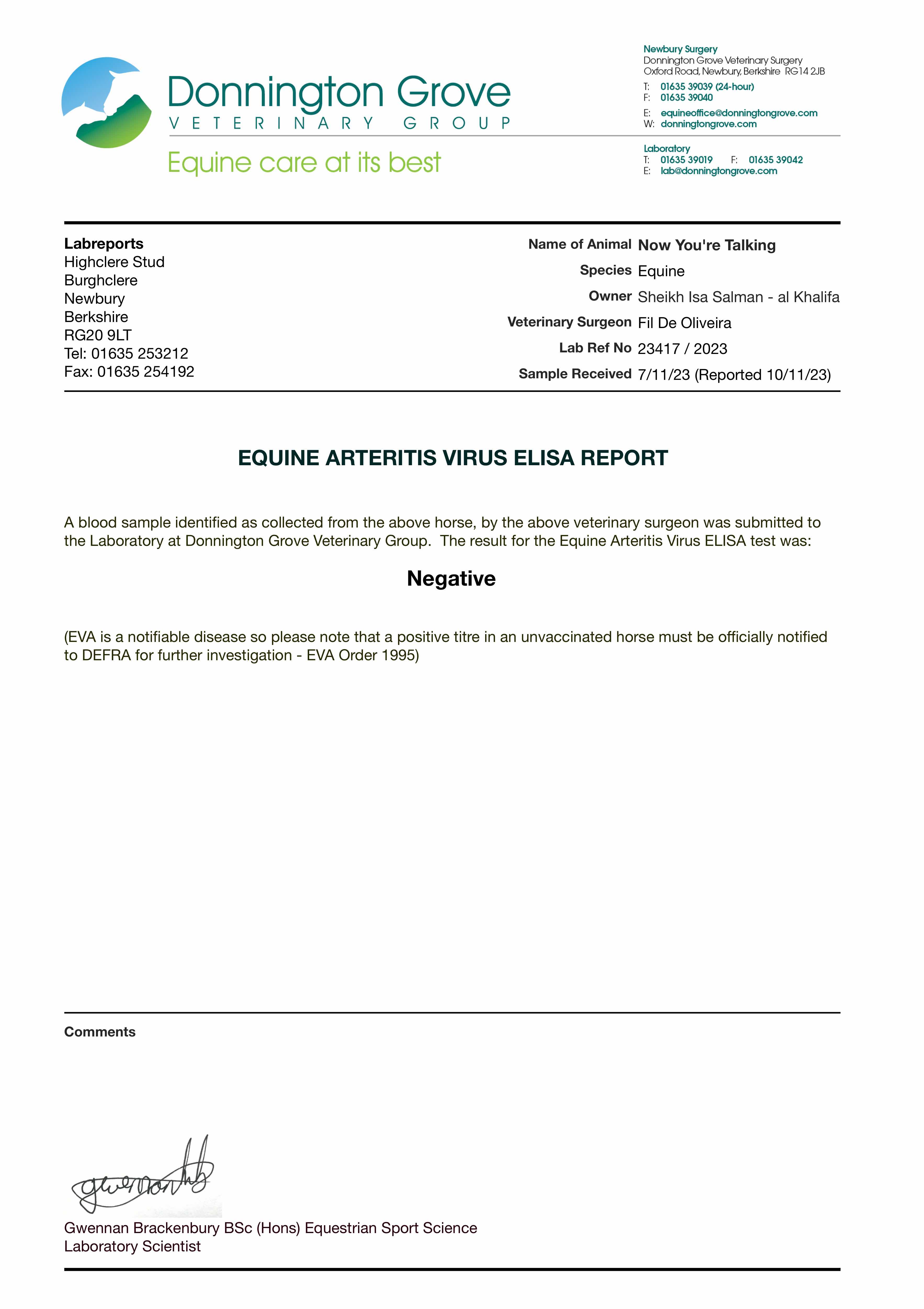 Consignor: Highclere Stud