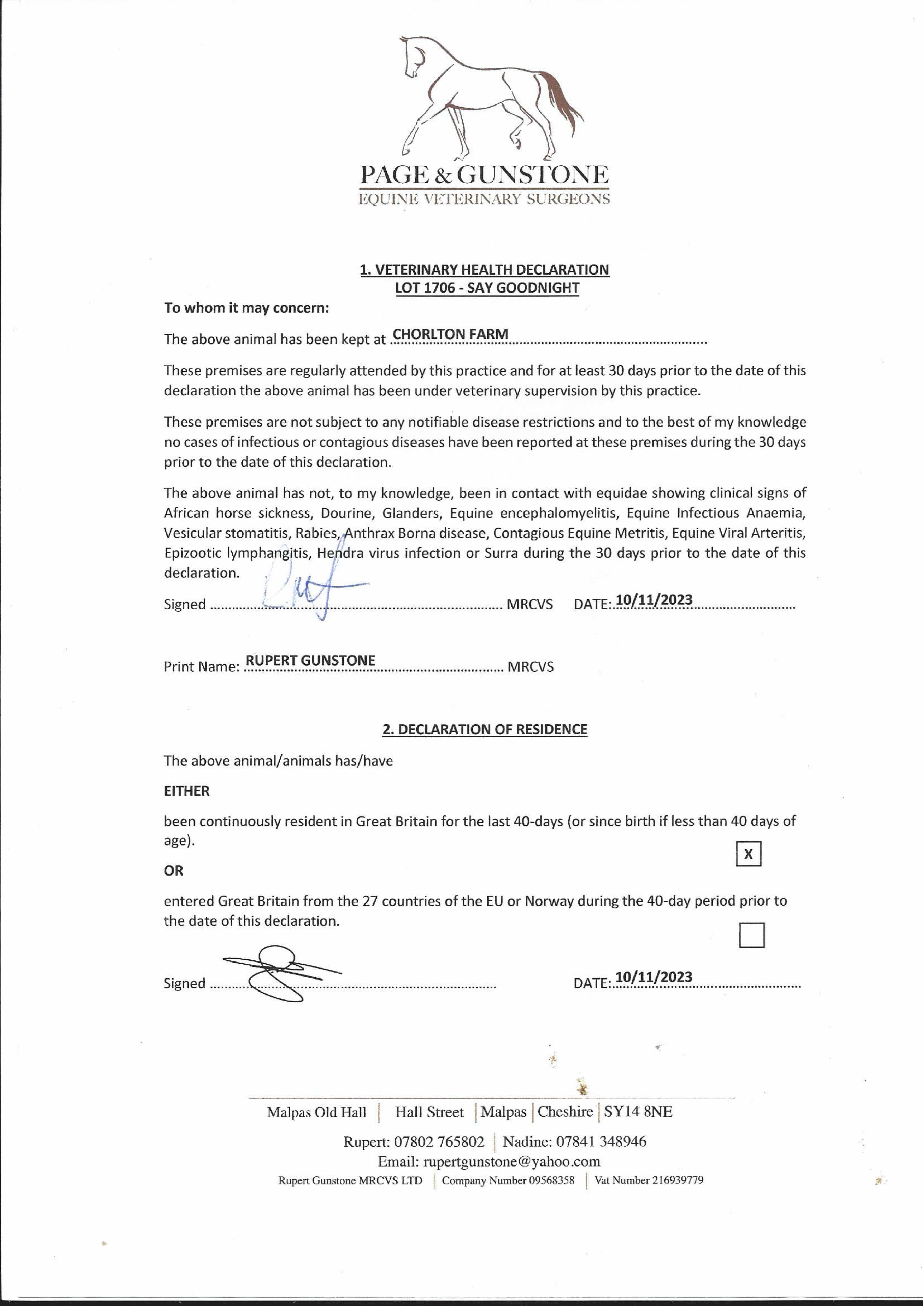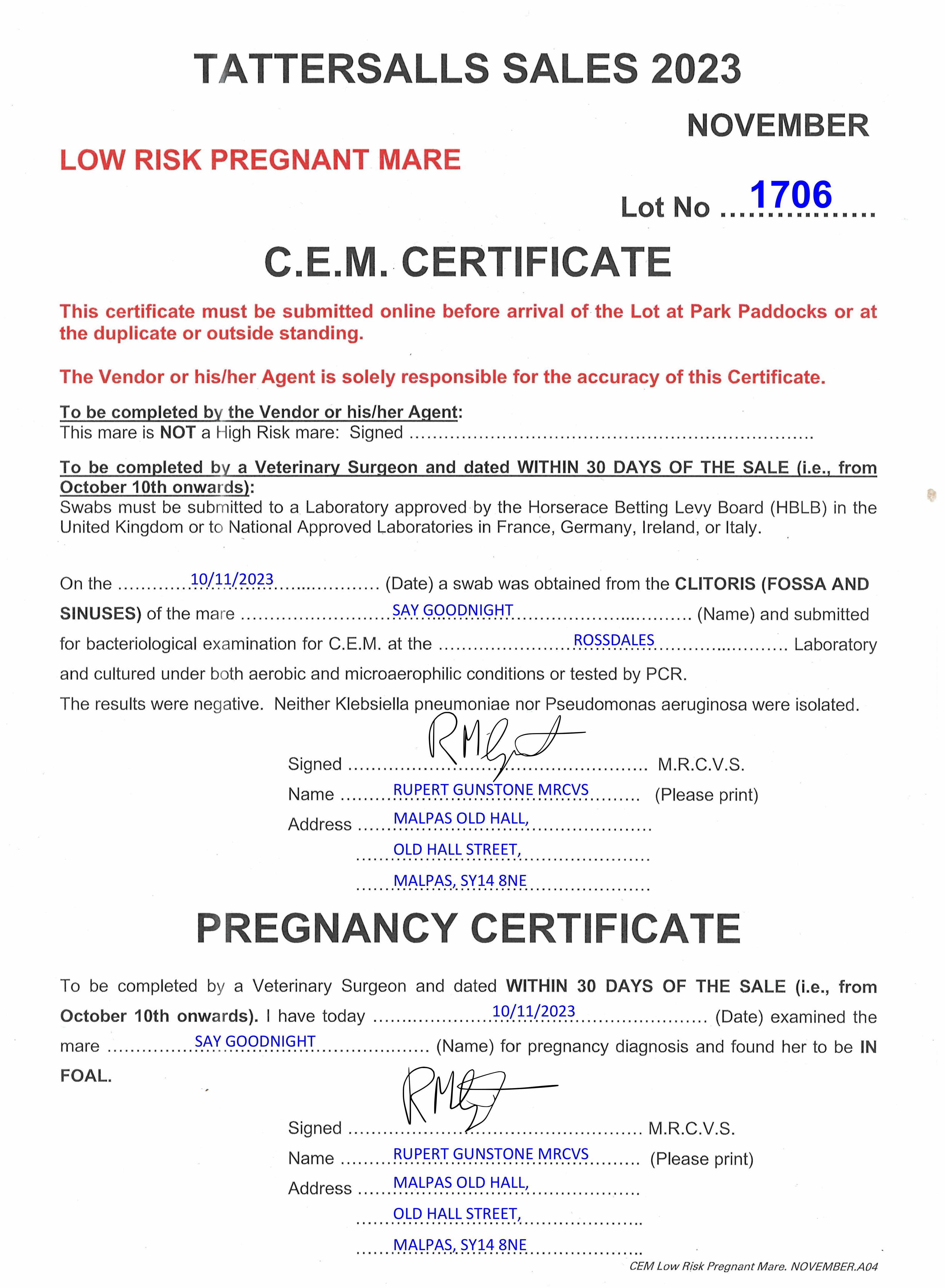 December Foal Sale 2011 lot 1189 F. by Cape Cross (IRE) 2011, Yeomanstown Lodge Stud, Ireland=>John Hammond 40,000 gns