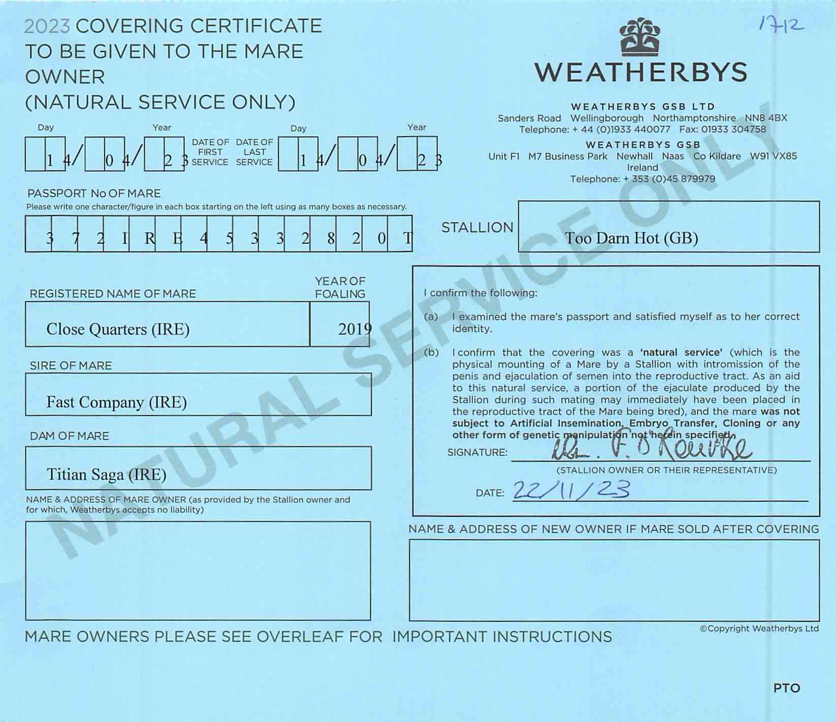 Consignor: Dullingham Park
