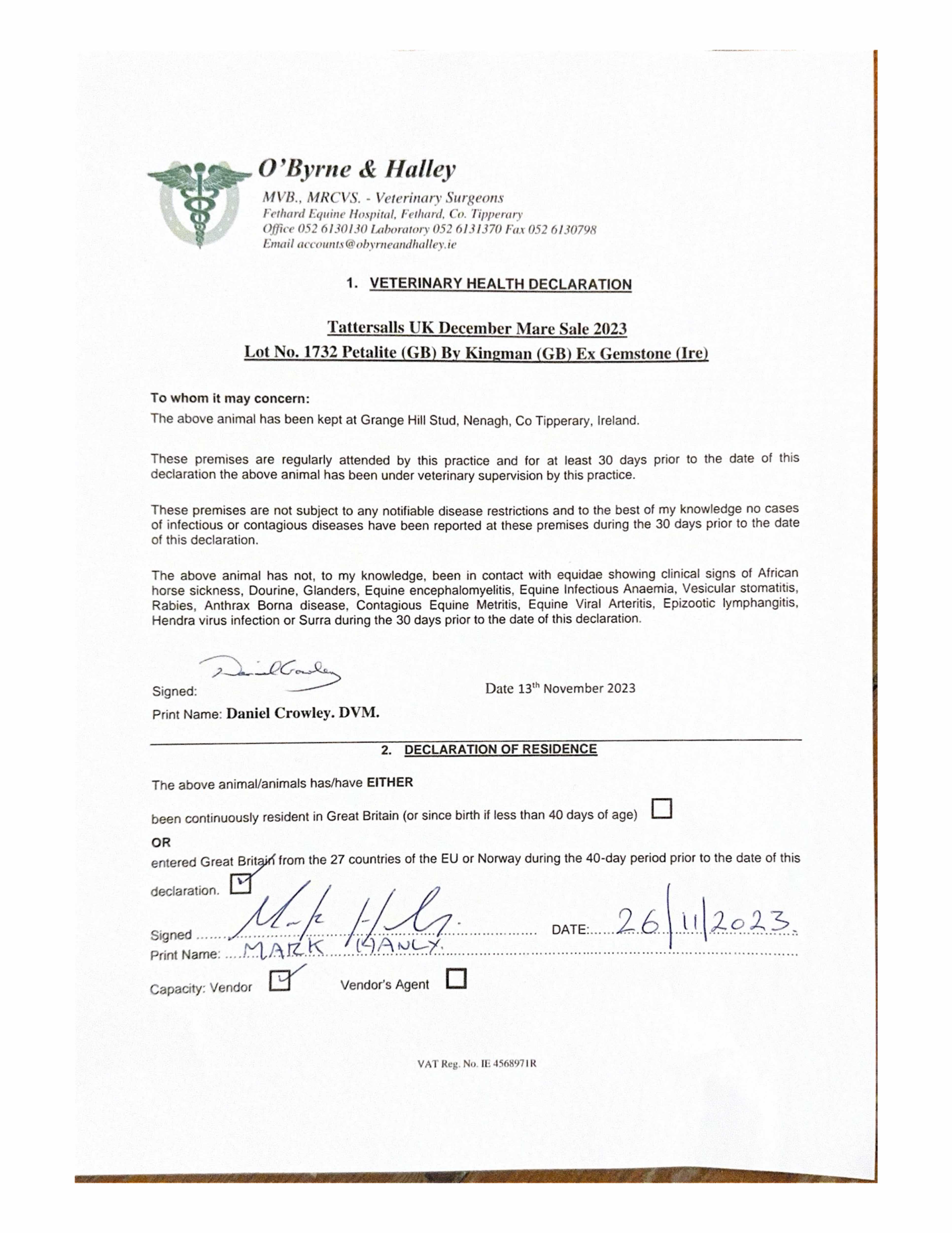 Consignor: Ballyhimikin Stud, Ireland