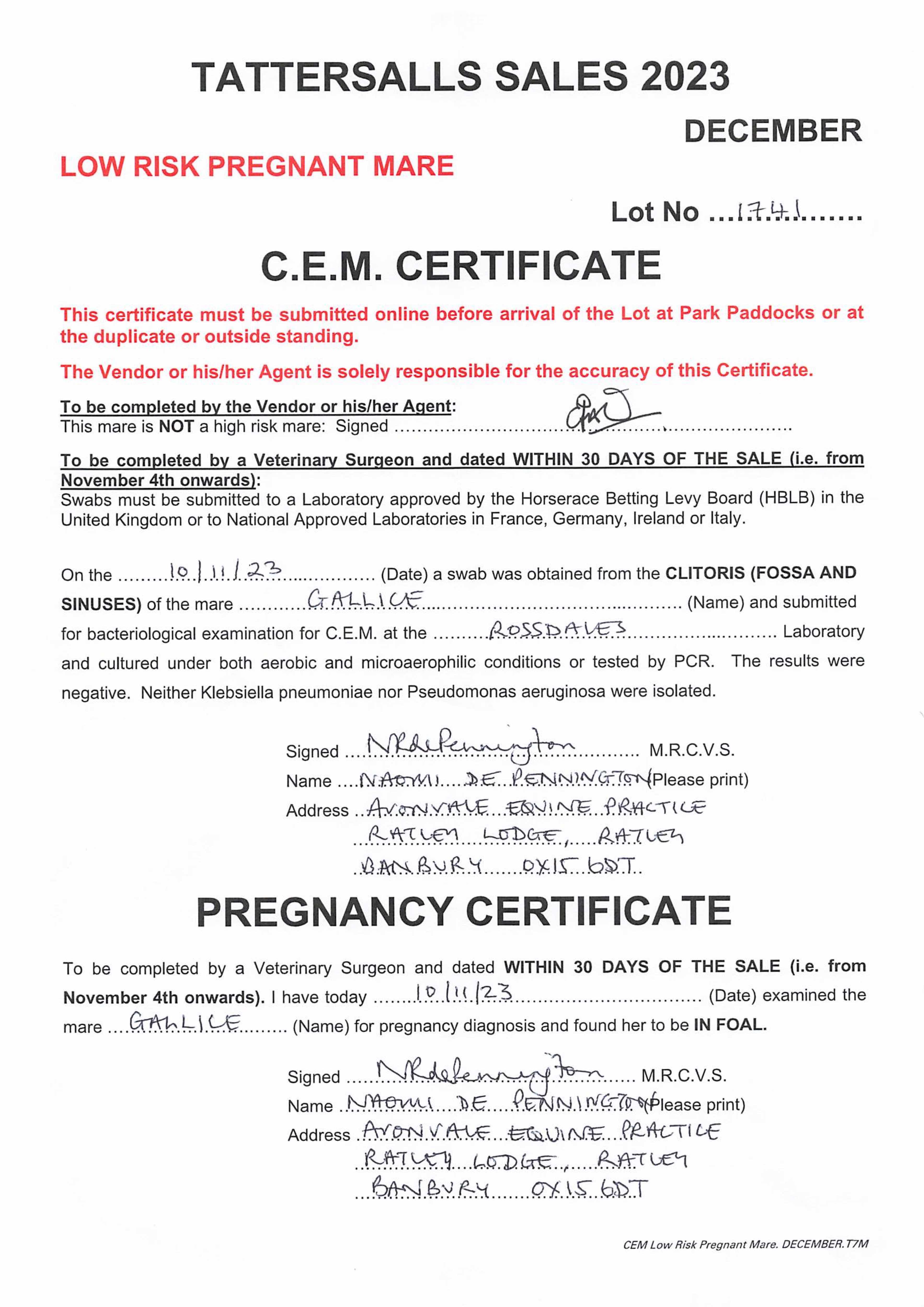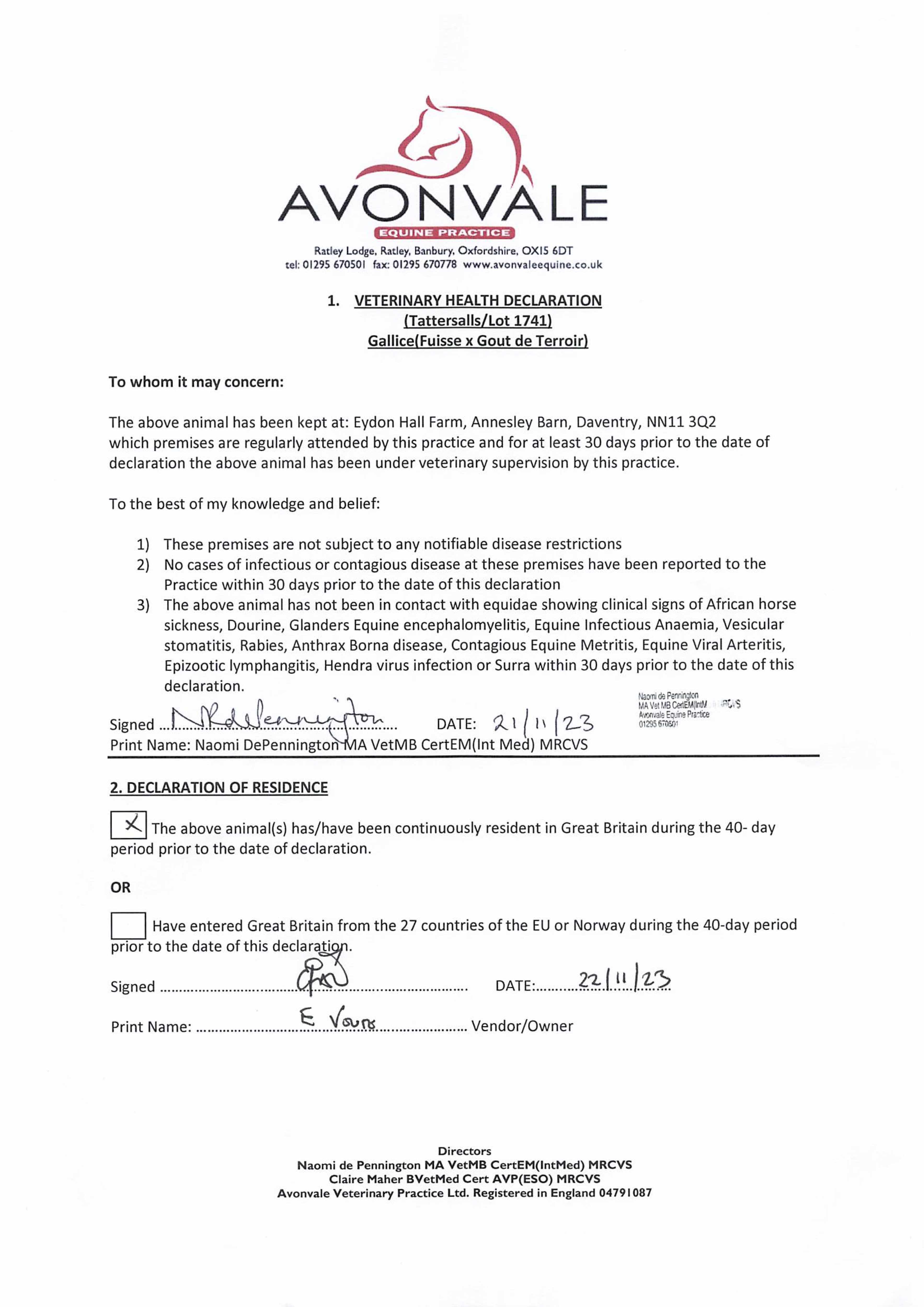 Consignor: Voute Sales Ltd. (Agent)