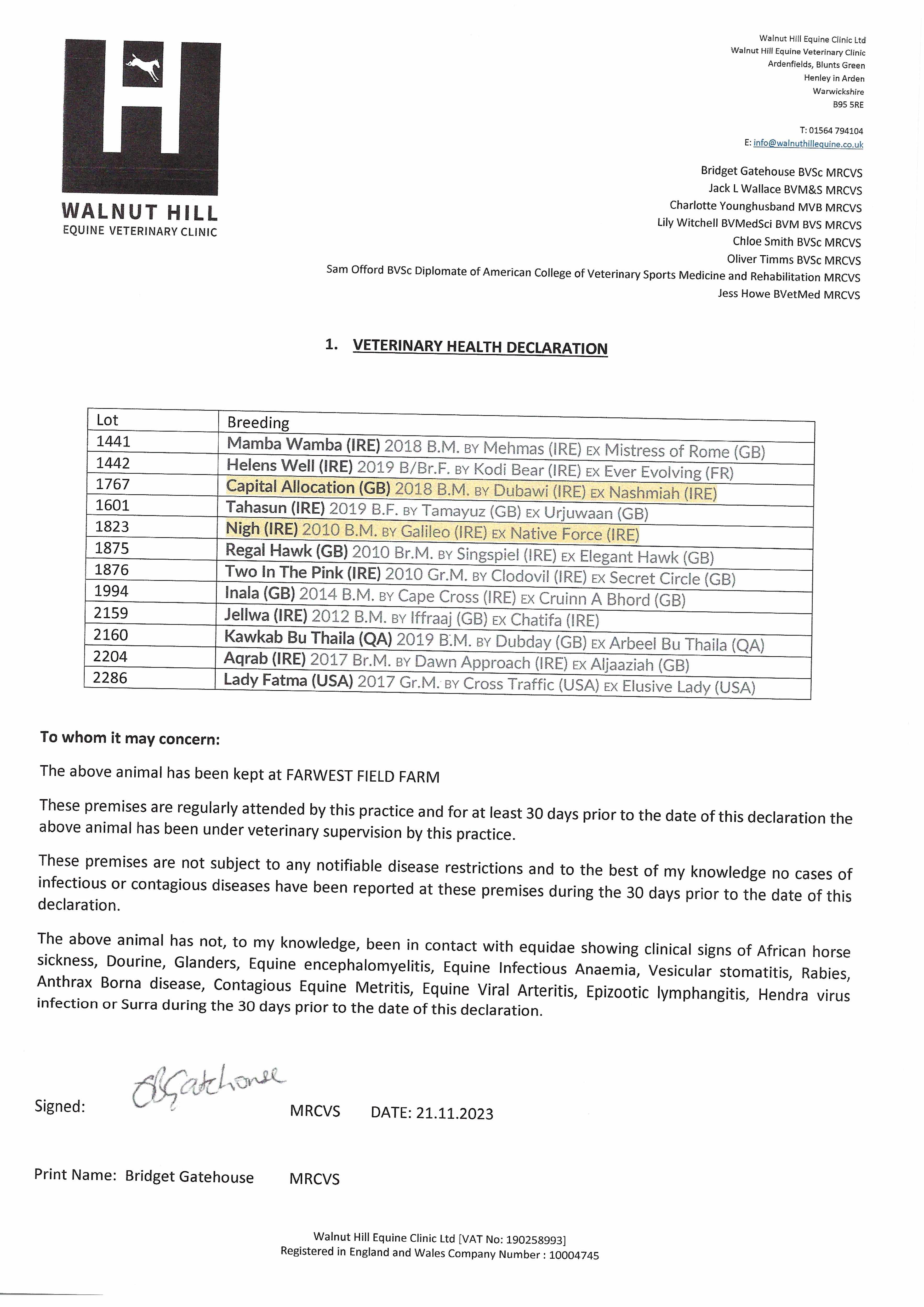 December Mare Sale 2022 lot 2251 Harbour Beach (GB) (F. by Frankel (GB)), Jamesfield Stables (J. Tate)=>Craig & Laura Buckingham 25,000 gns