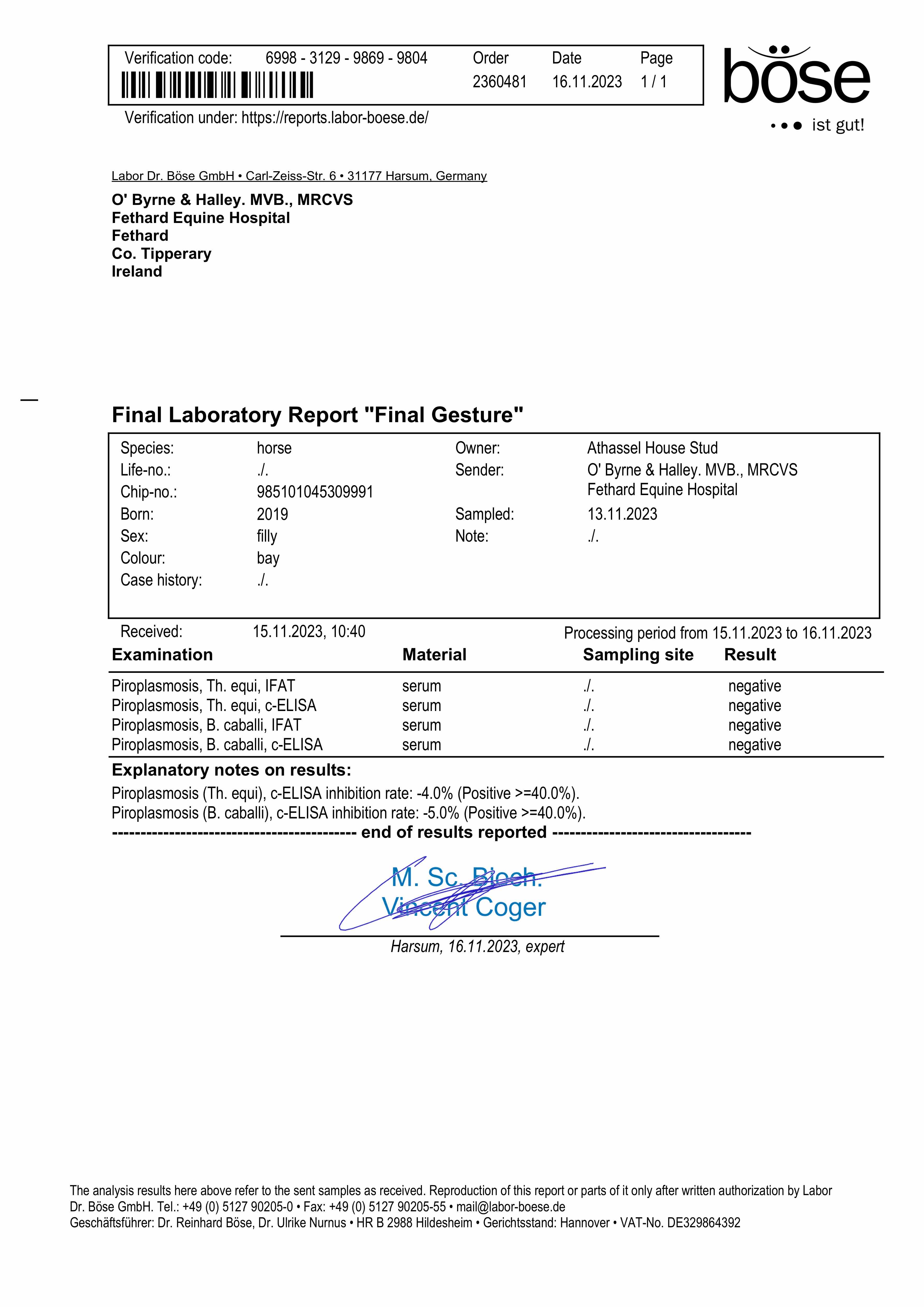 Piroplasmosis Certificate