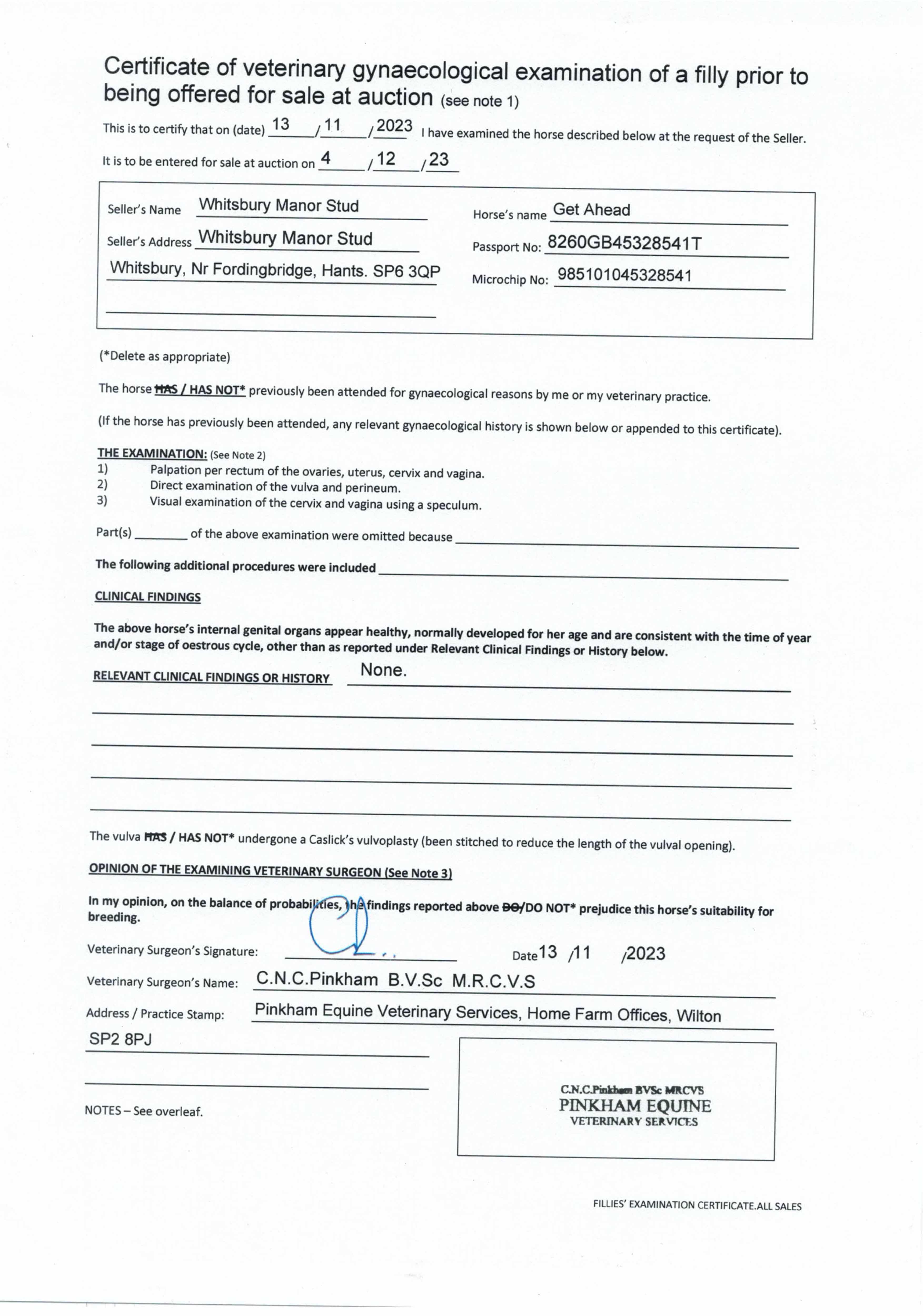 December Foal Sale 2023 lot 965 C. 2023, Whitsbury Manor Stud=>A C Elliott, Agent 260,000 gns