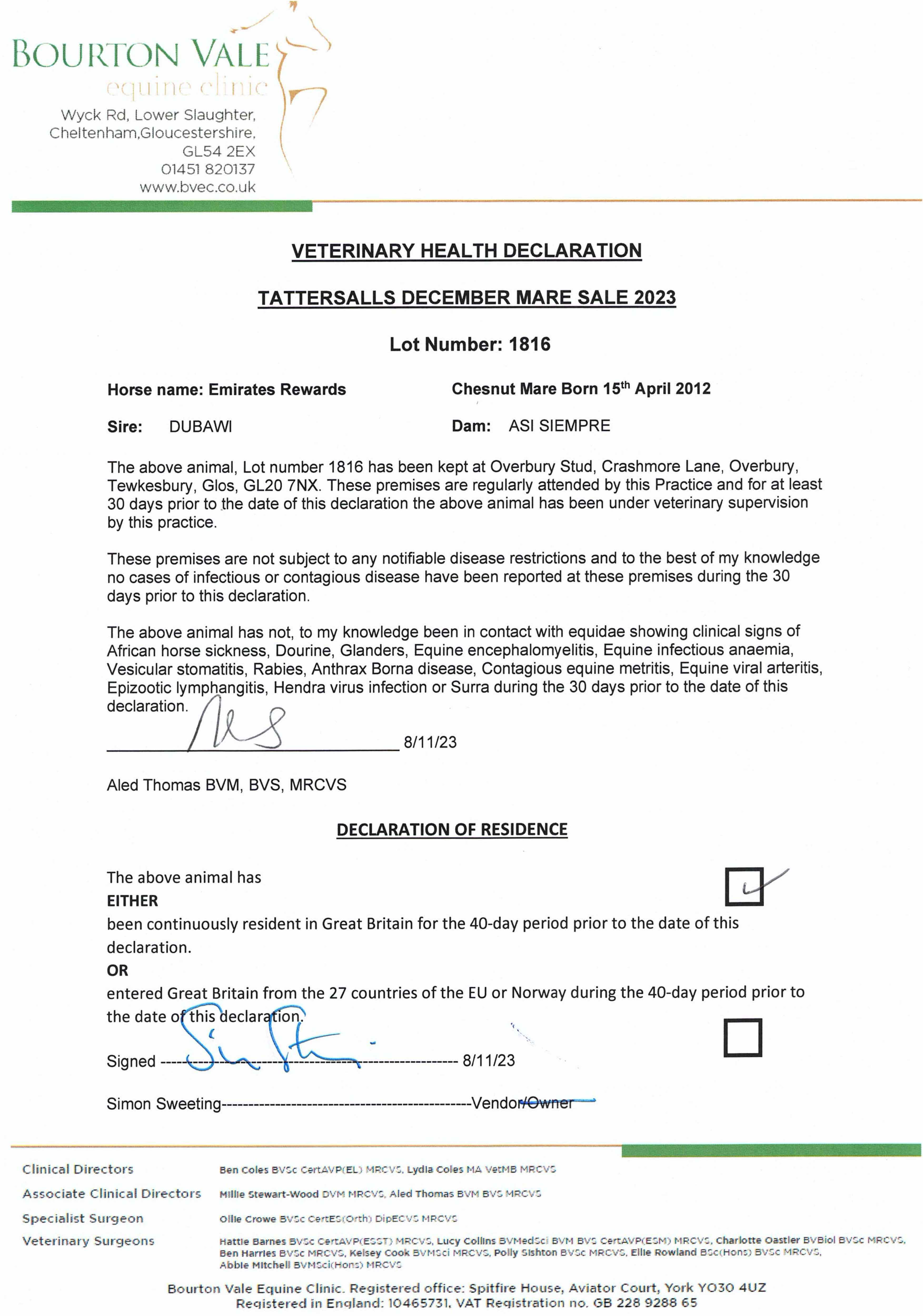 Consignor: Overbury Stud