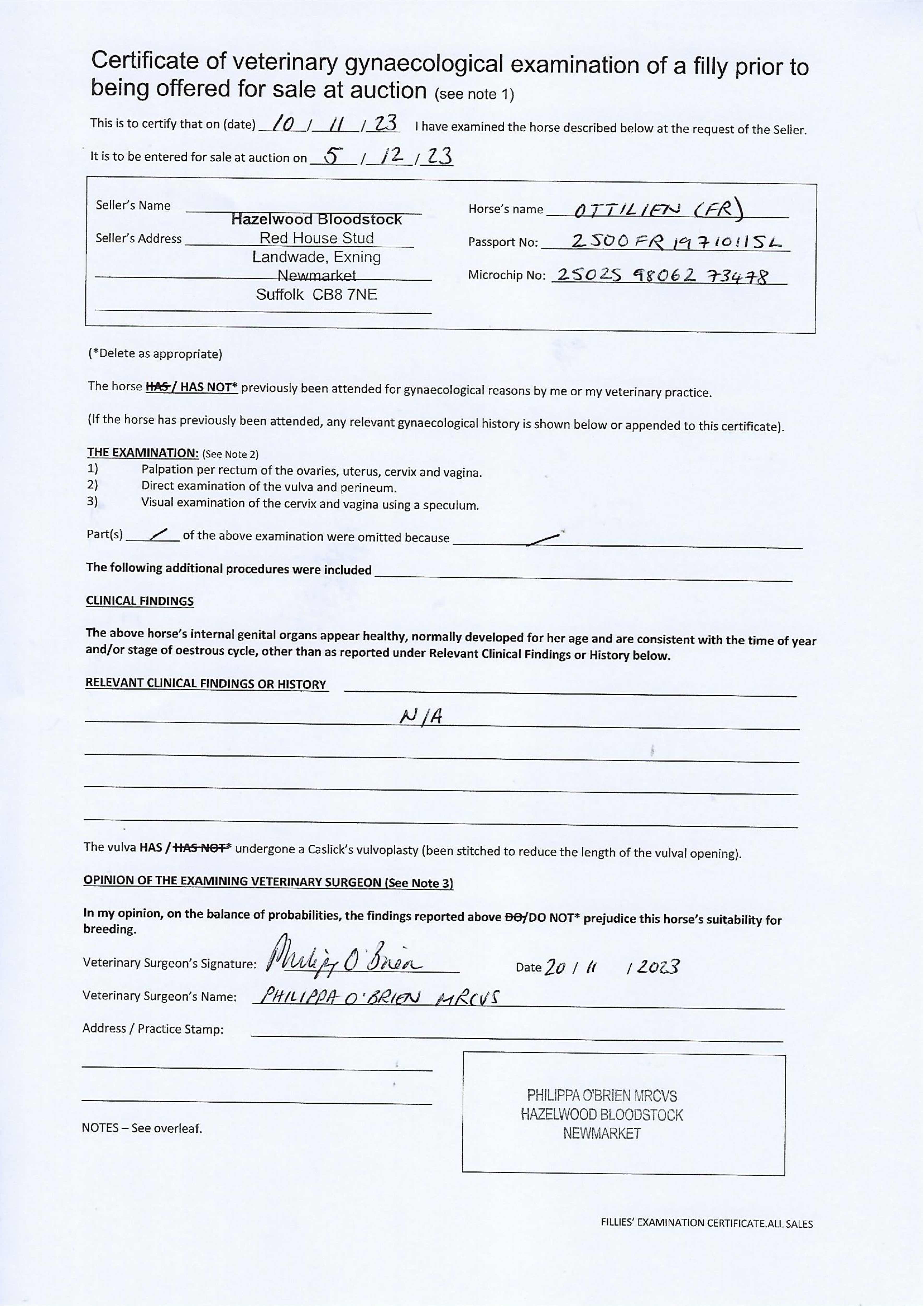 December Mare Sale 2013 lot 1798 Zina Blue (FR) (M. by Anabaa Blue (GB)), European Sales Management=>Vendor 80,000 gns