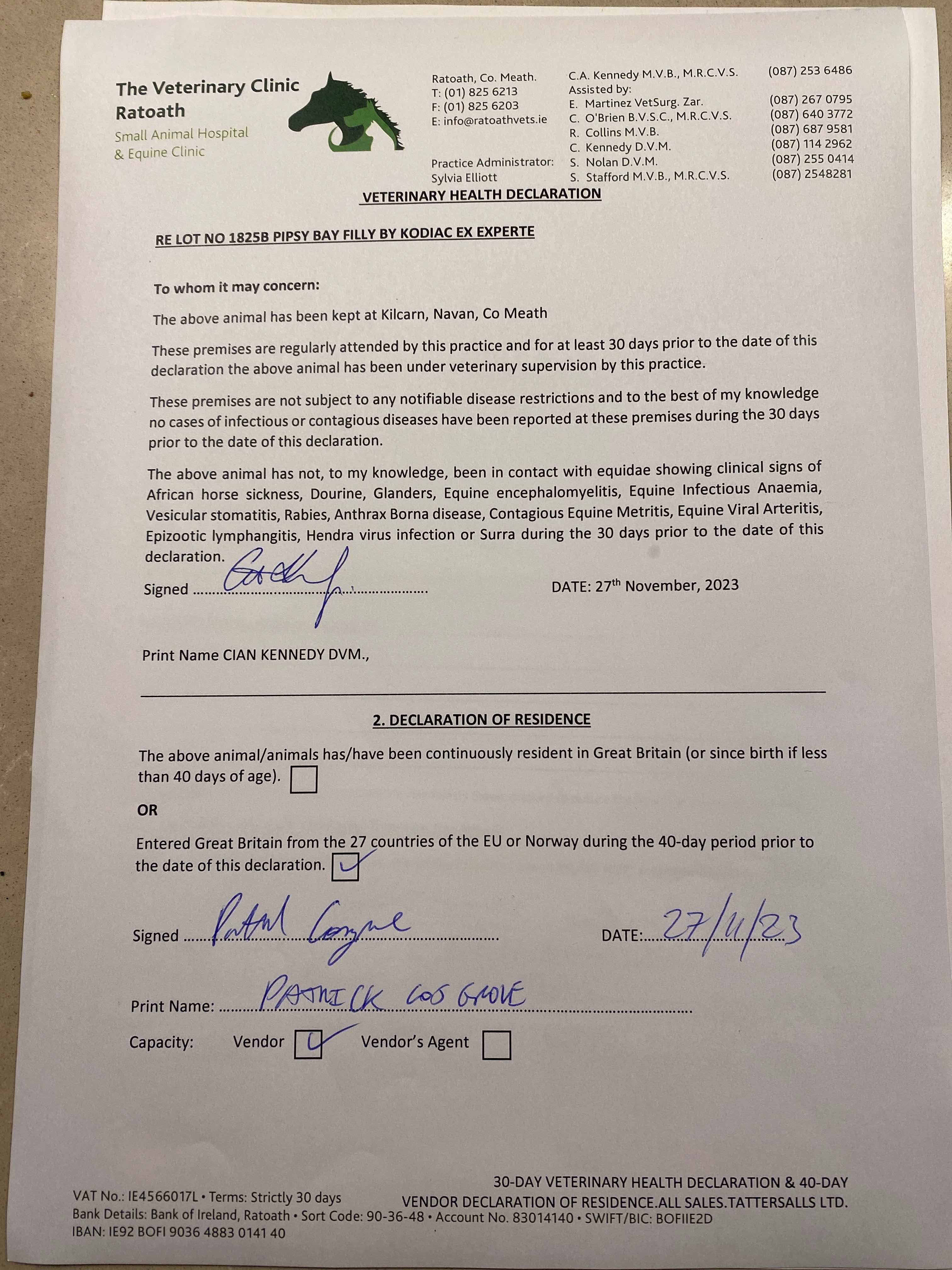 Consignor: Kilcarn Park, Ireland