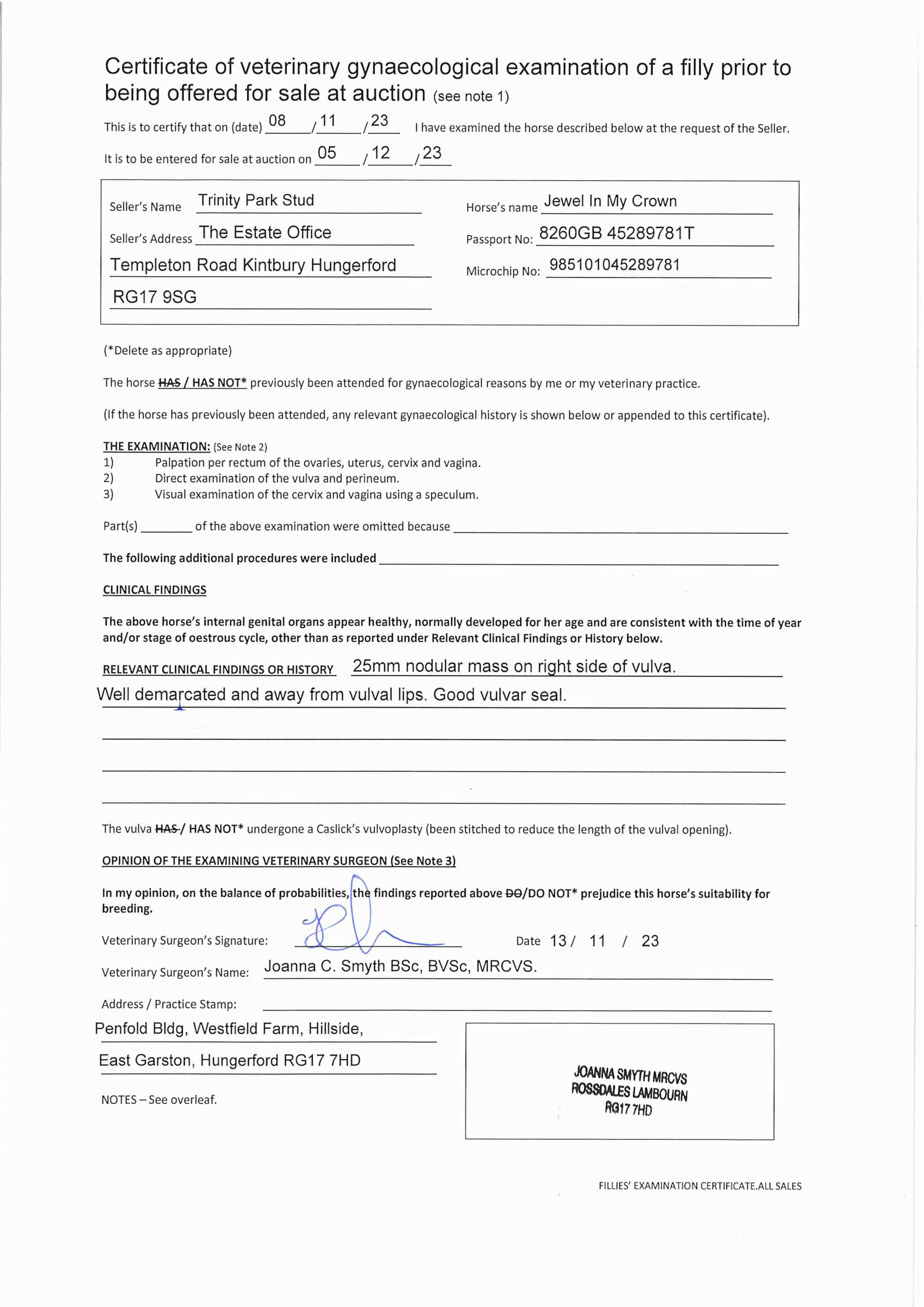 December Mare Sale 2022 lot 2197 Rosa Gold (GB) (M. by Havana Gold (IRE)), Trinity Park Stud=>Moigne Combe Stud 55,000 gns