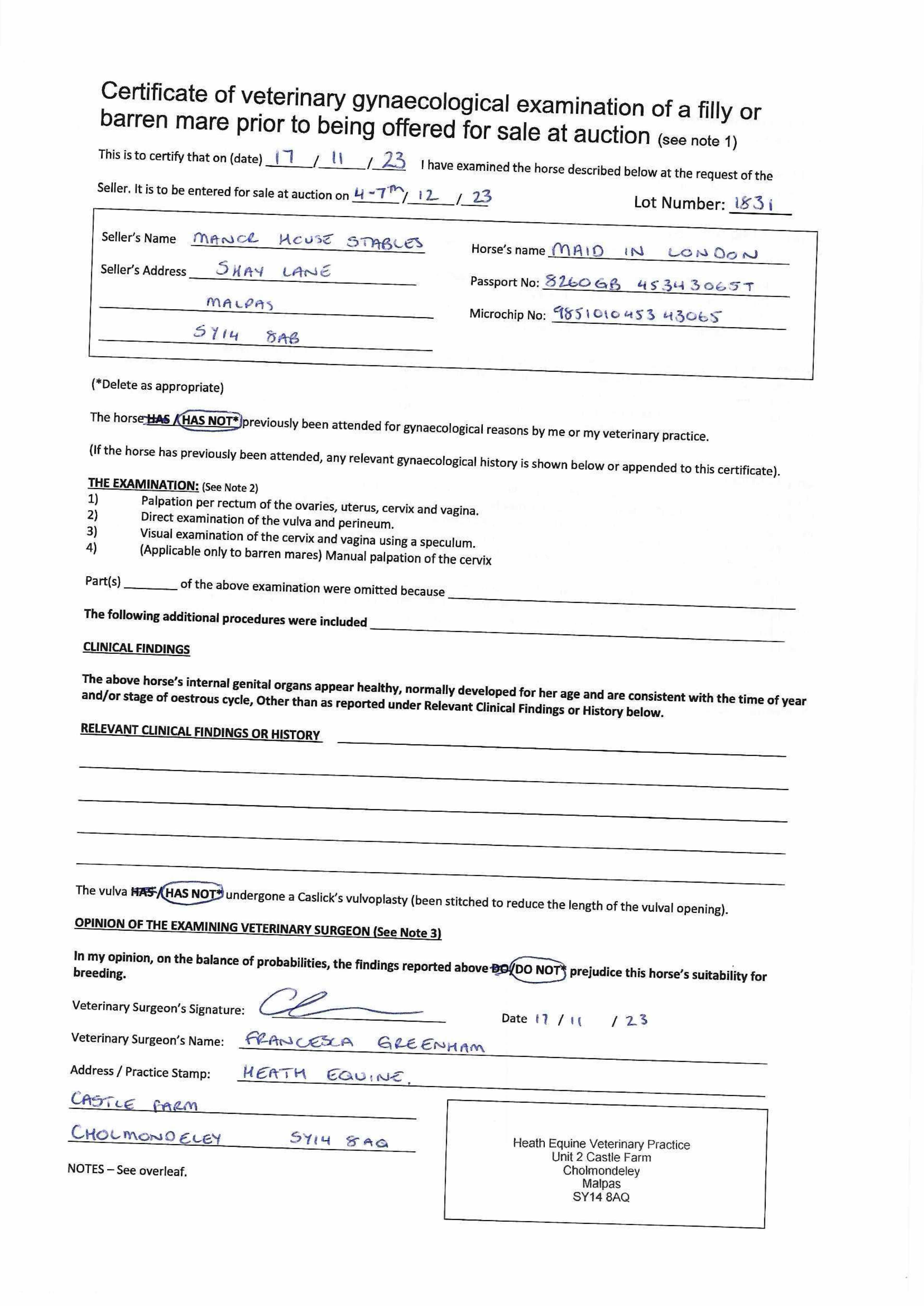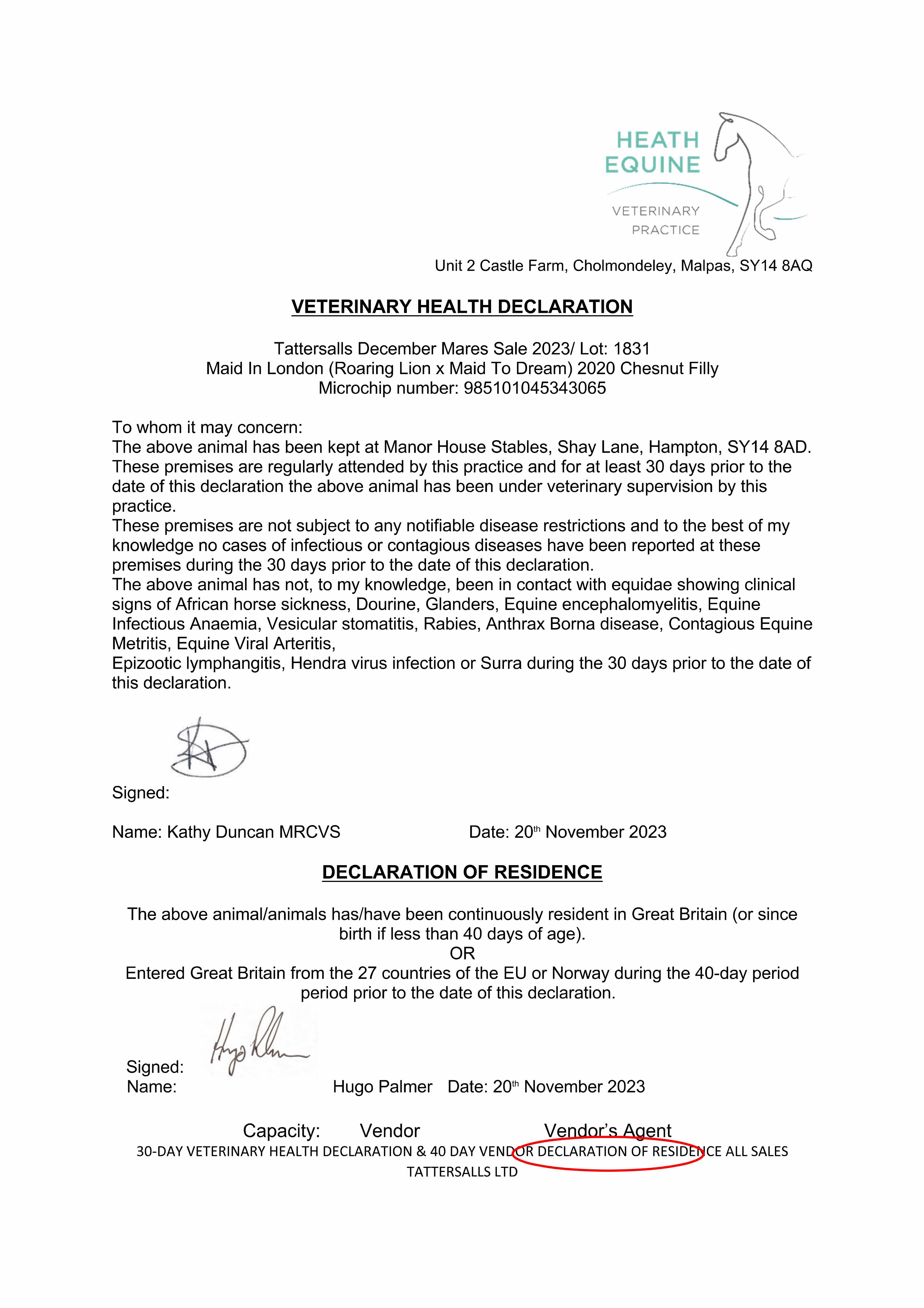 Online Sale - 4th July 2024 lot 97 Chamber Maid (GB) (M. by Nathaniel (IRE)), Barton Sales=>Jason O'Sullivan 5,000 gns