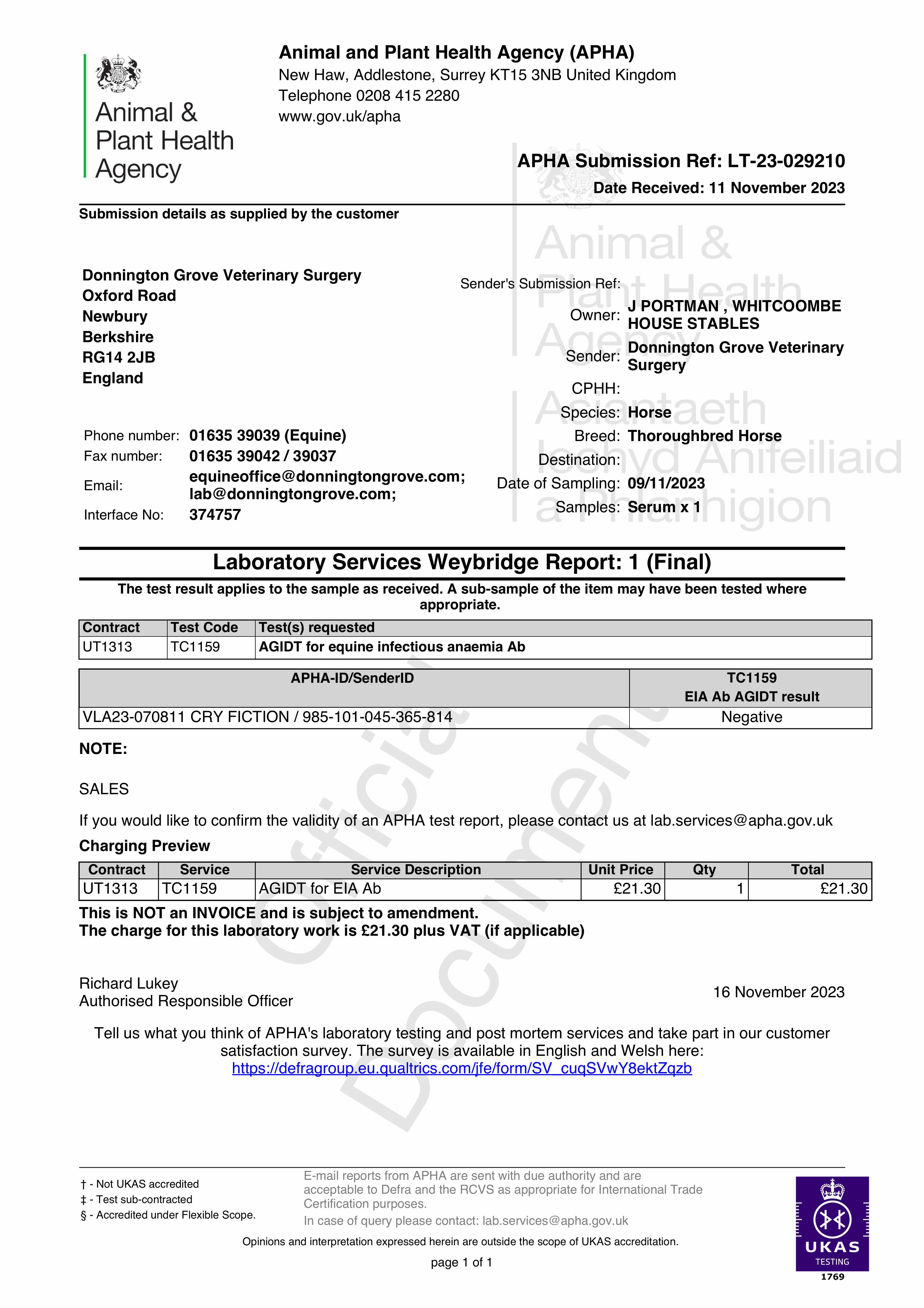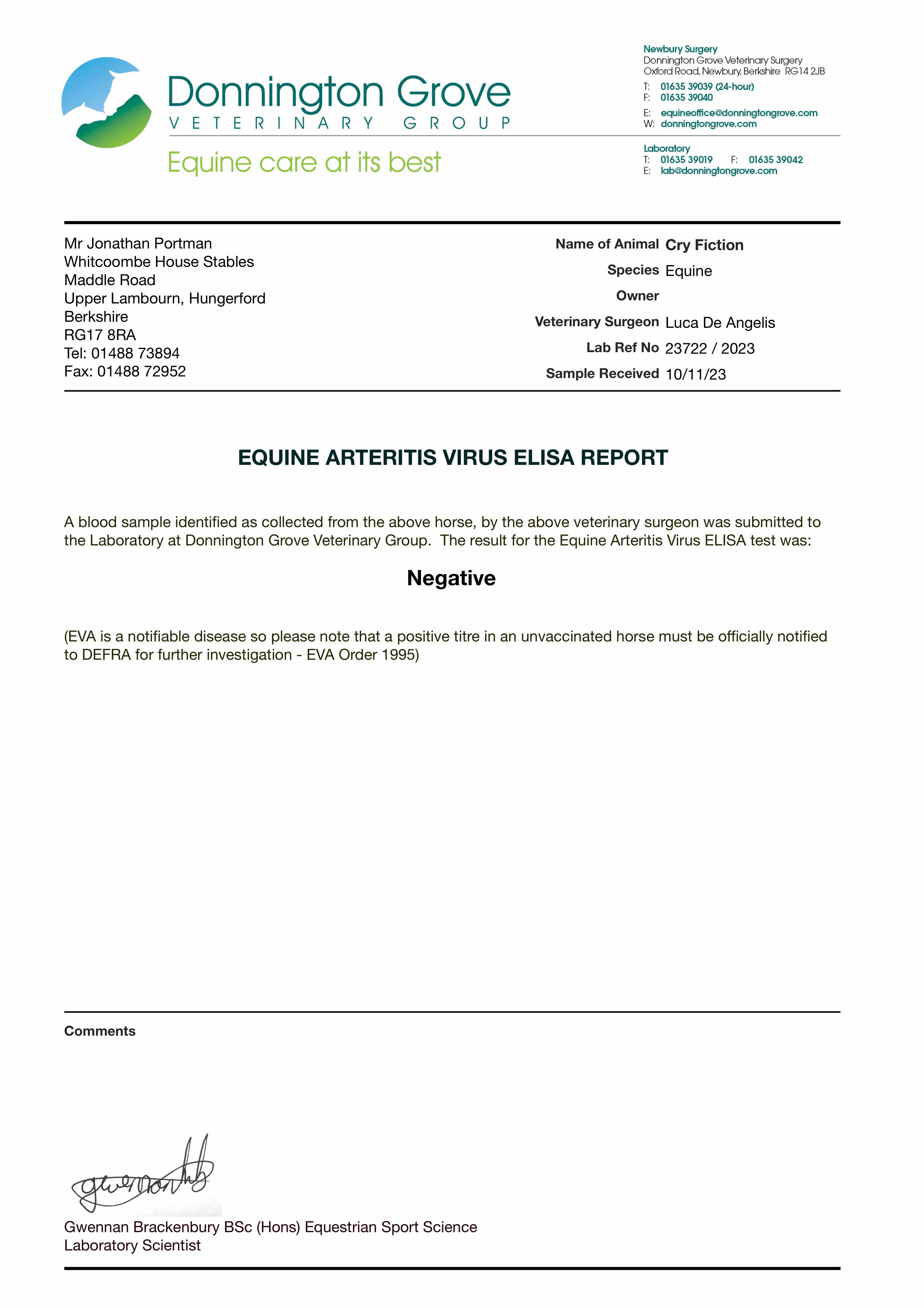 Consignor: Whitcoombe House Stables (J. Portman)