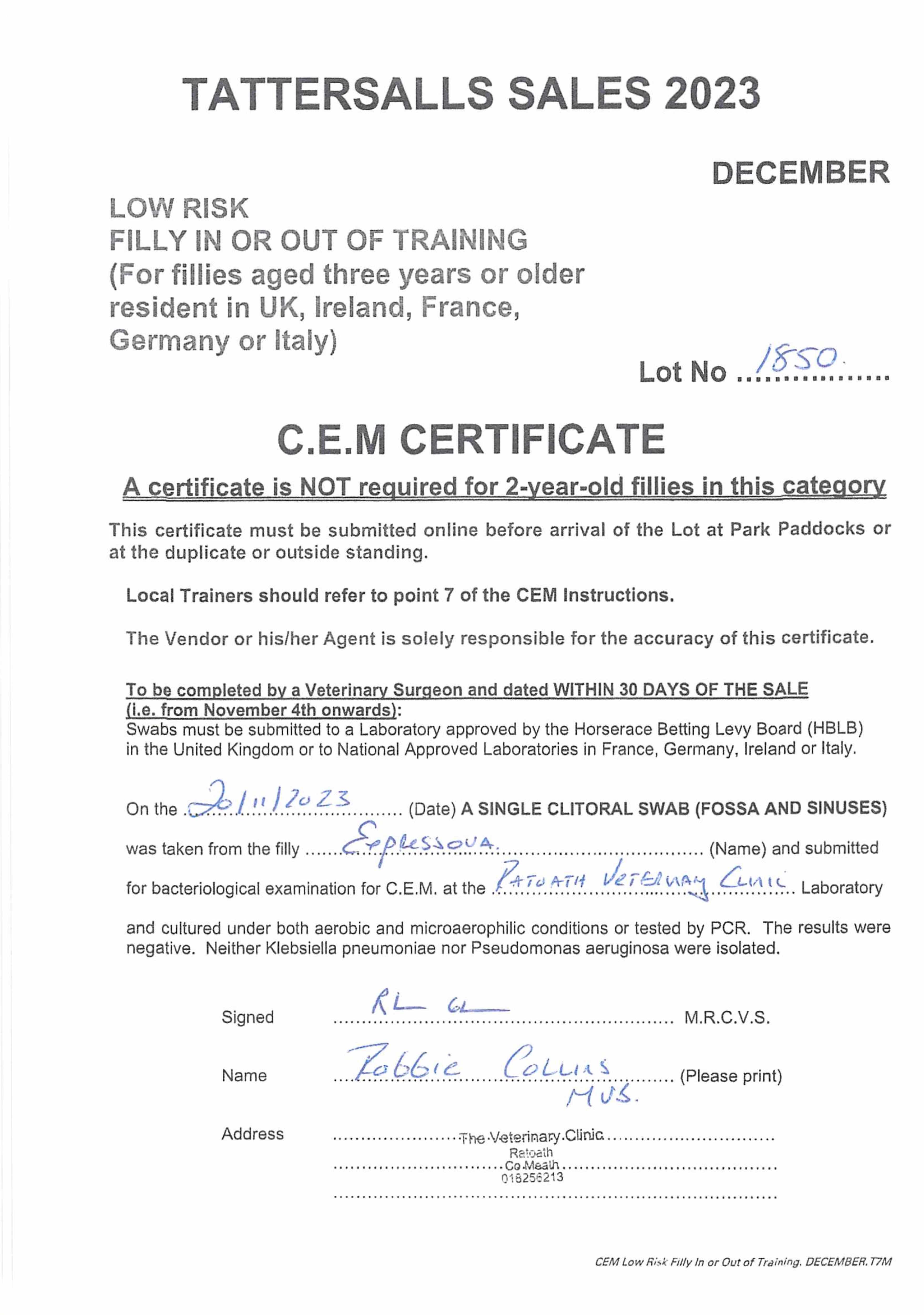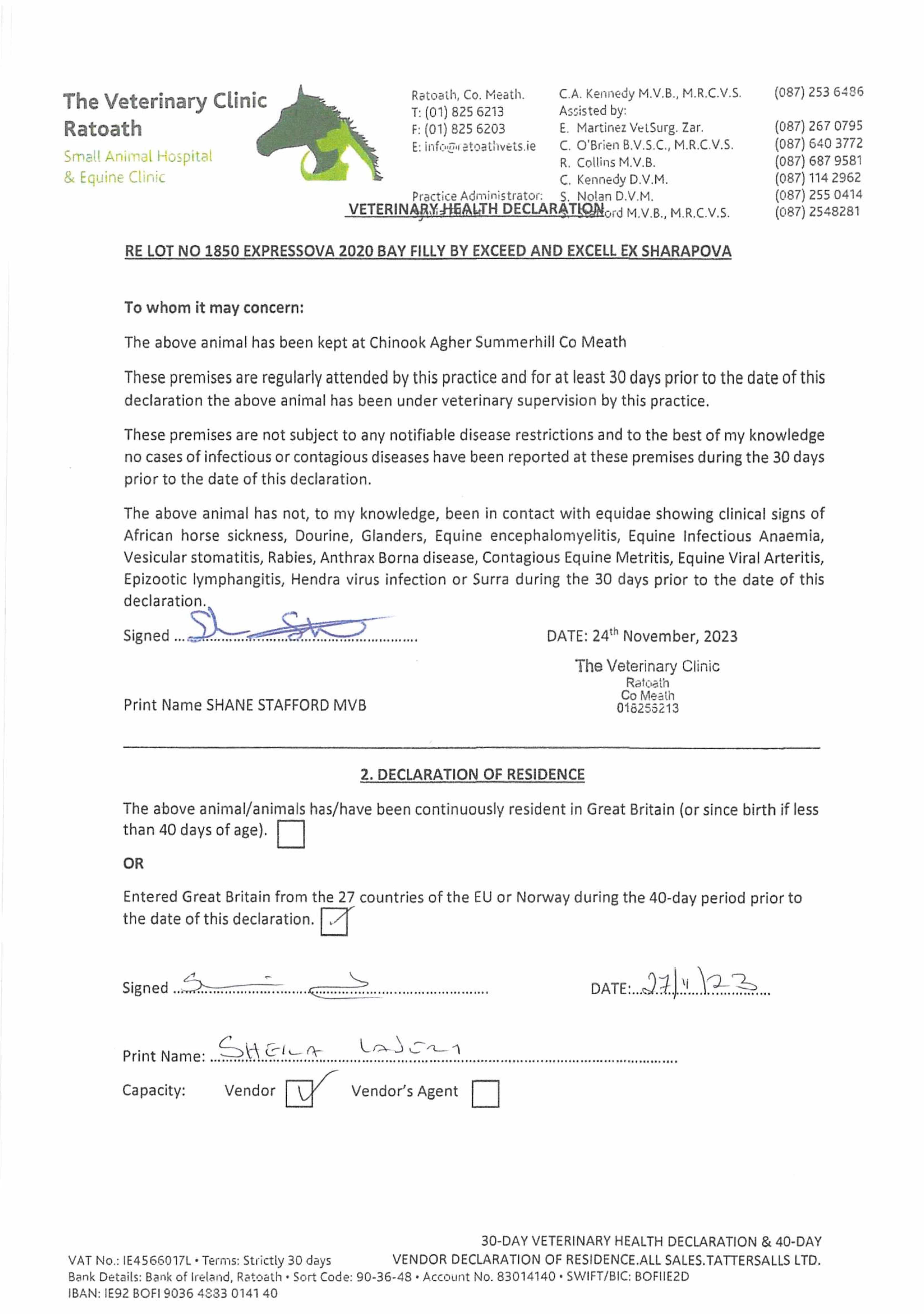 Consignor: Chinook Stables, Ireland (Ms S. Lavery)