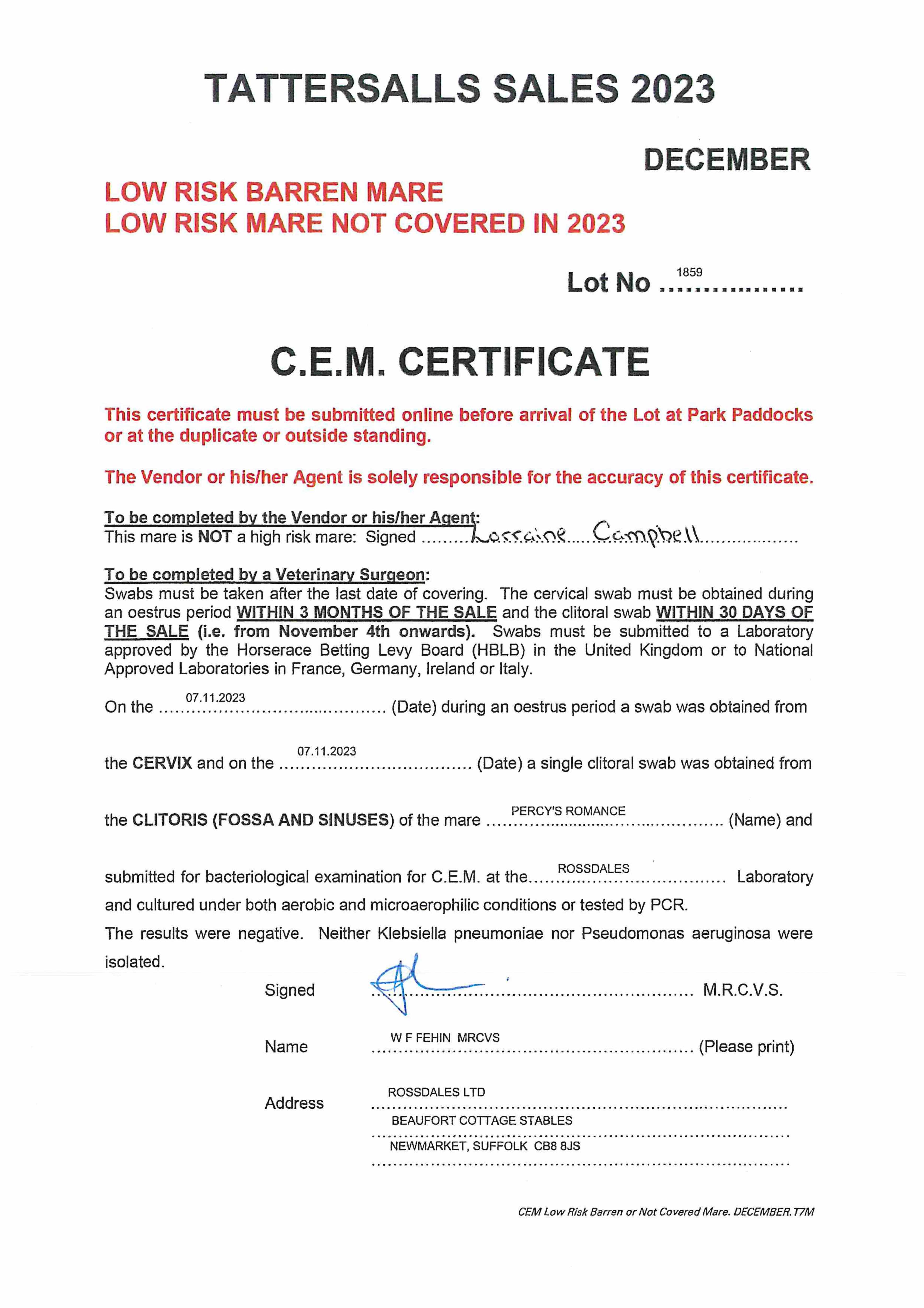 December Mare Sale 2023 lot 1395 Romantic Time (GB) (M. by Time Test (GB)), The National Stud Ltd.=>Springcombe Park Stud 65,000 gns