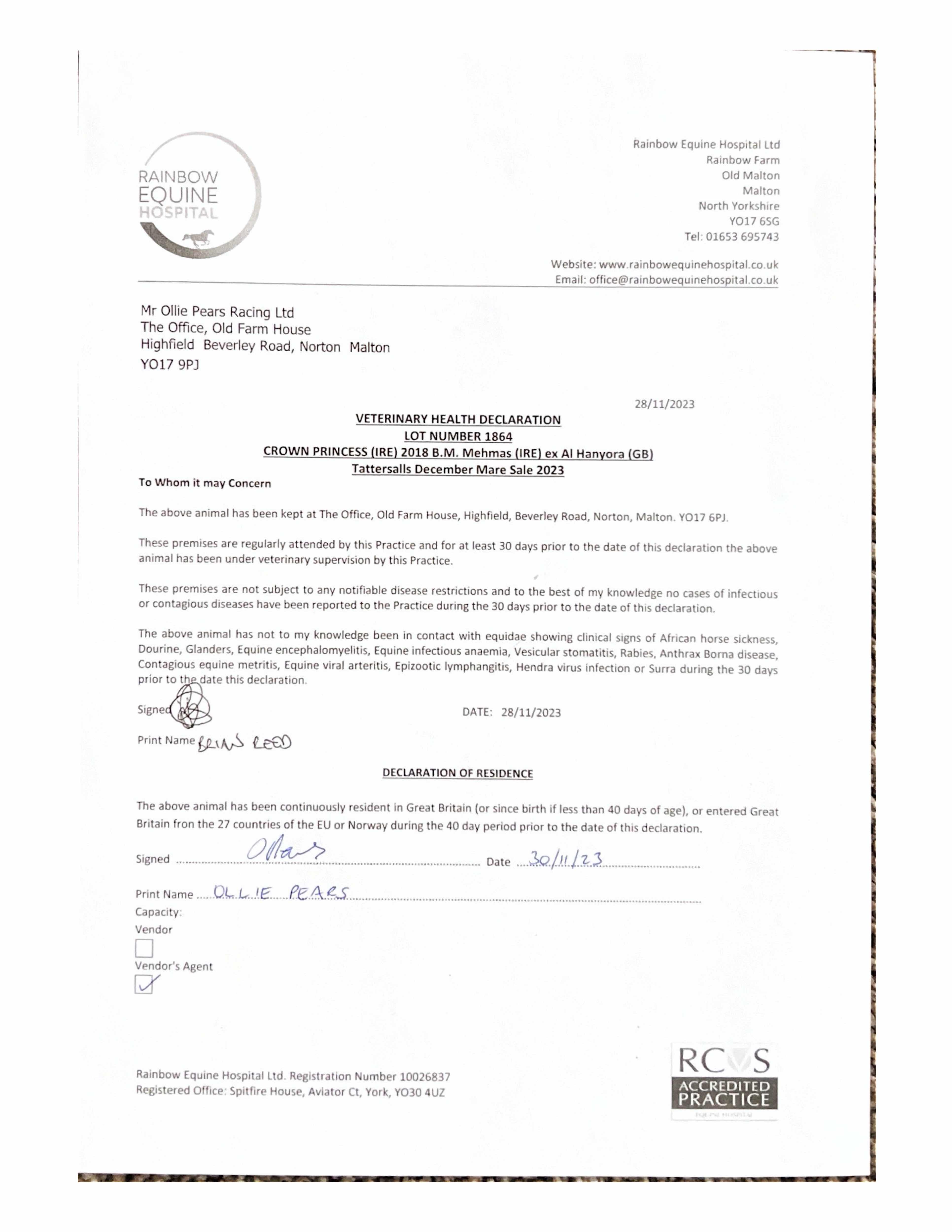 Consignor: Jamie Railton (Agent)