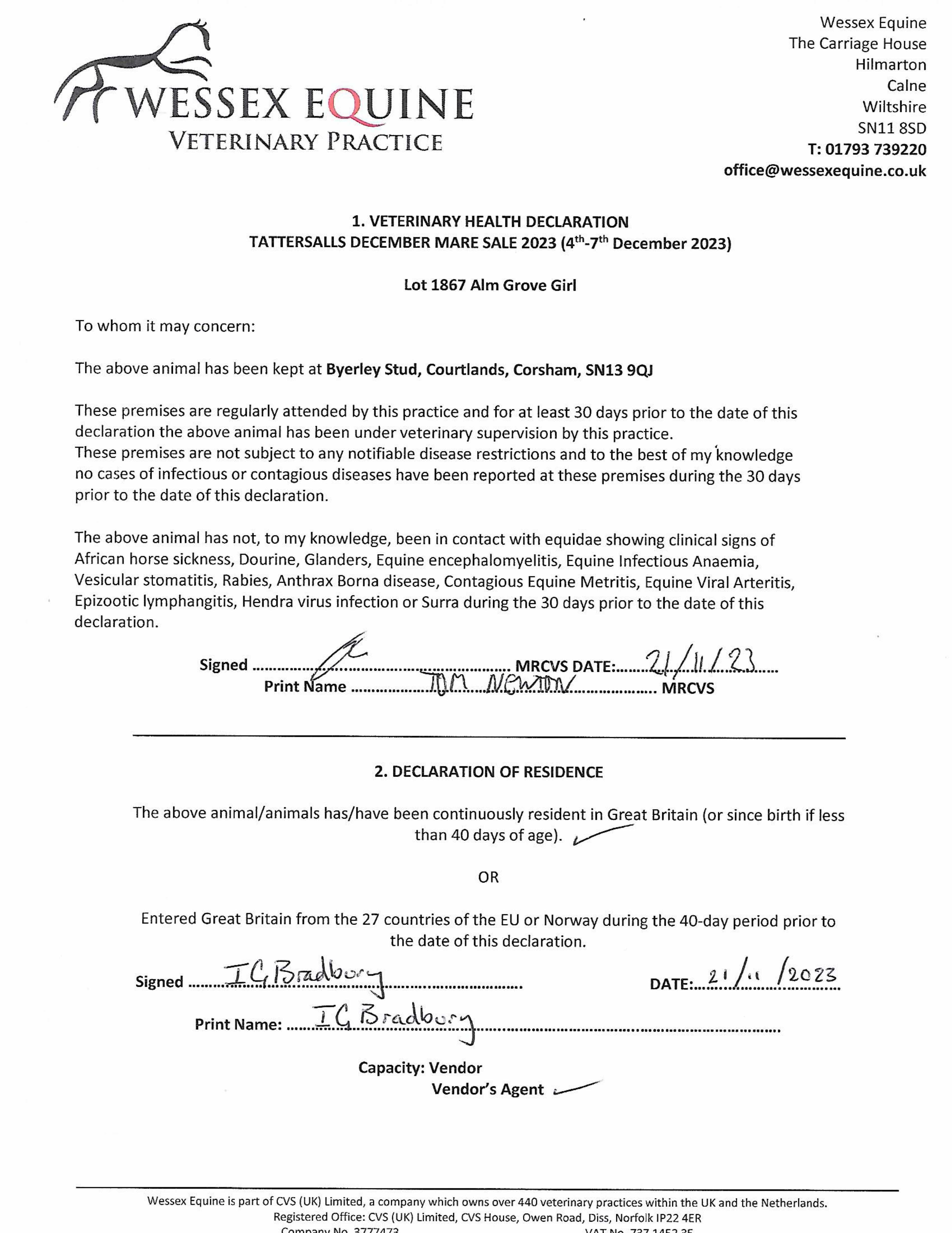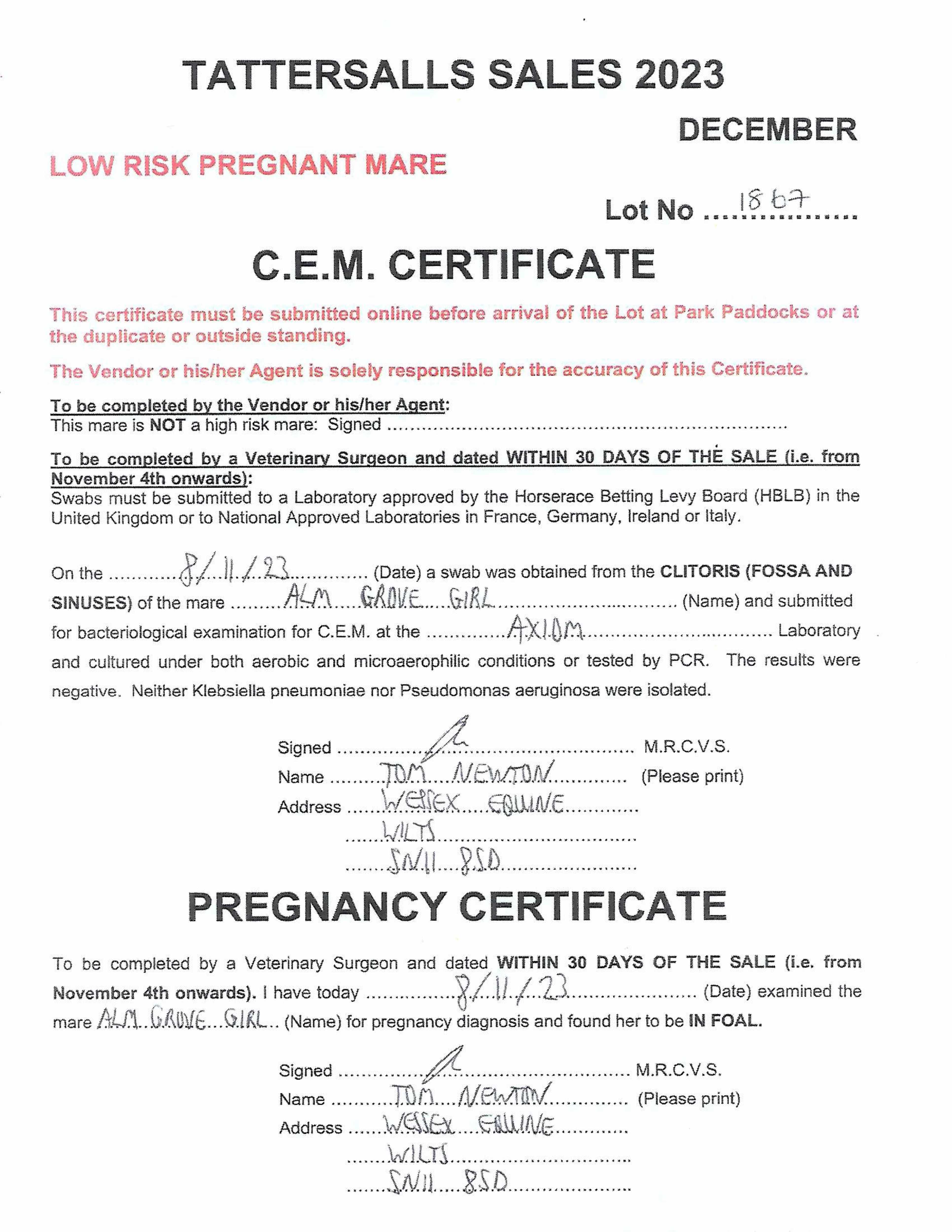 December Foal Sale 2024 lot 508 F. by Havana Grey (GB) 2024, Byerley Stud=>Littleton Stud 58,000 gns