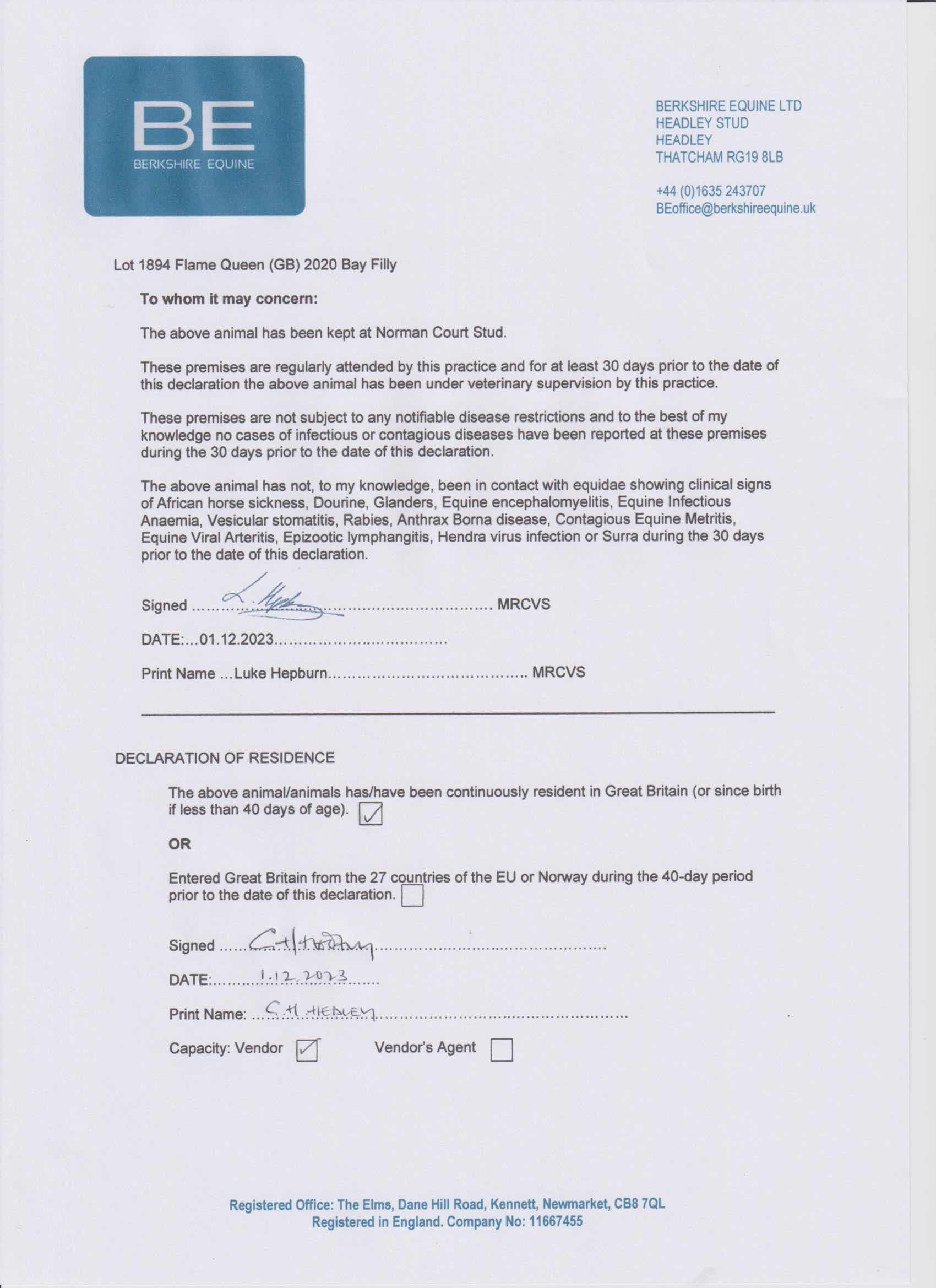 Consignor: Norman Court Stud