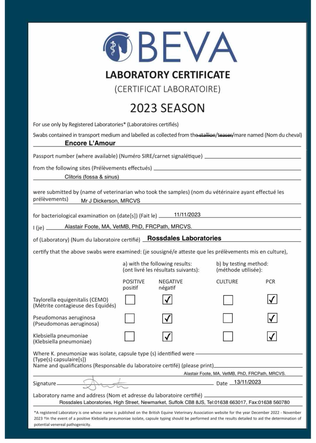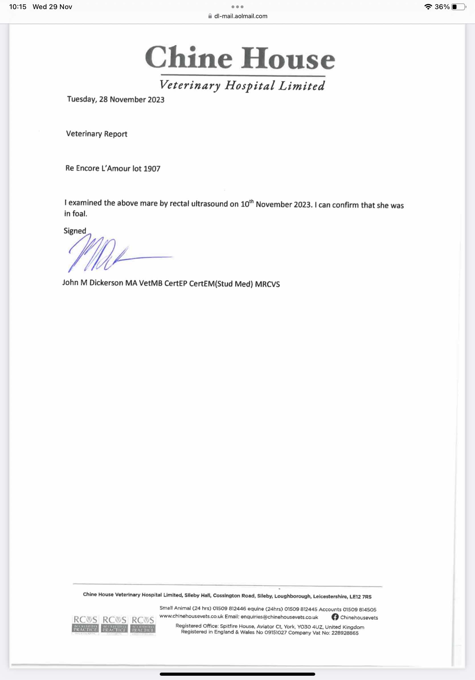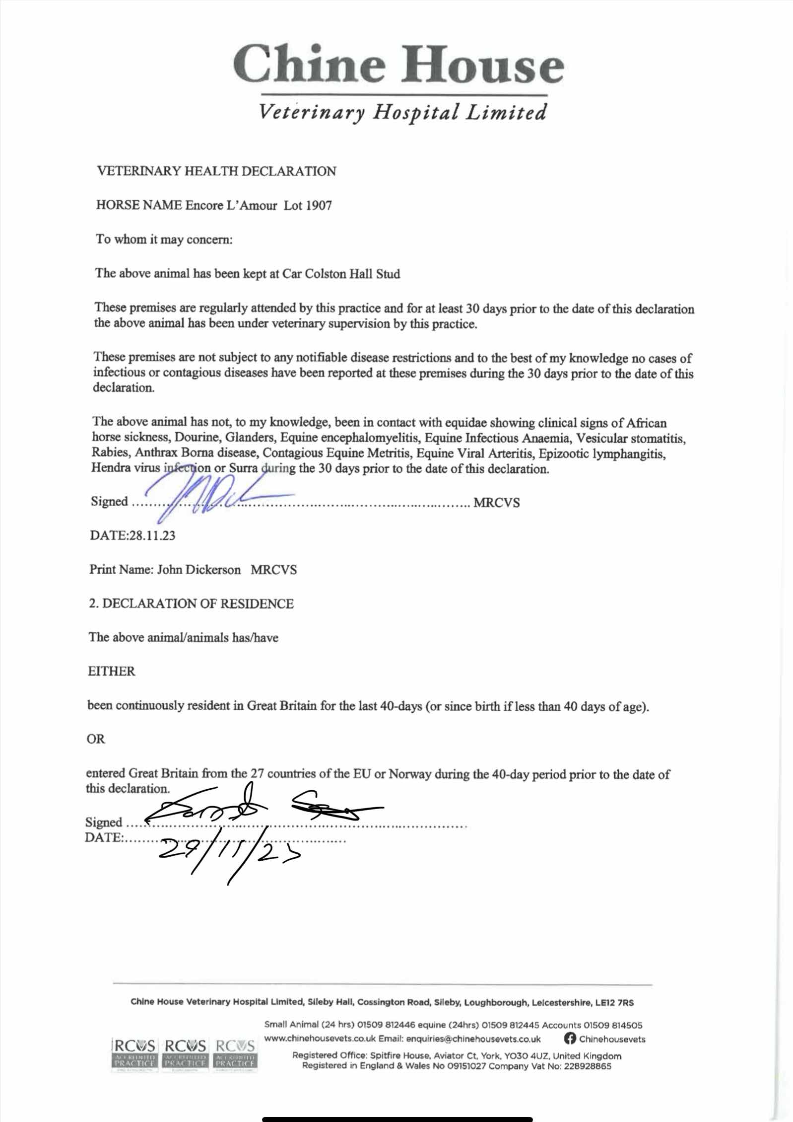 Consignor: Car Colston Hall Stud