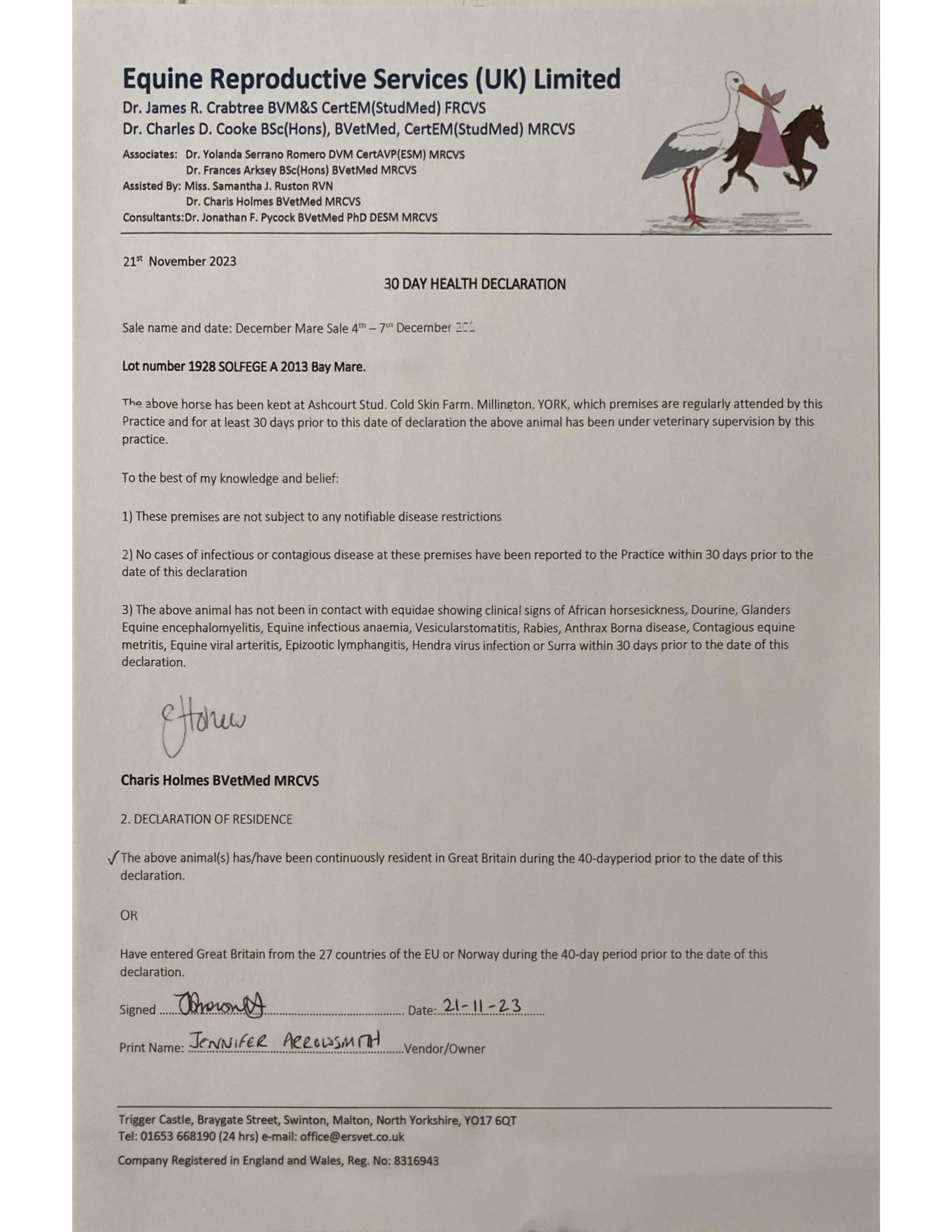 December Foal Sale 2023 lot 339 F. by Ardad (IRE) 2023, Baroda Stud, Ireland=>Vendor 6,000 gns