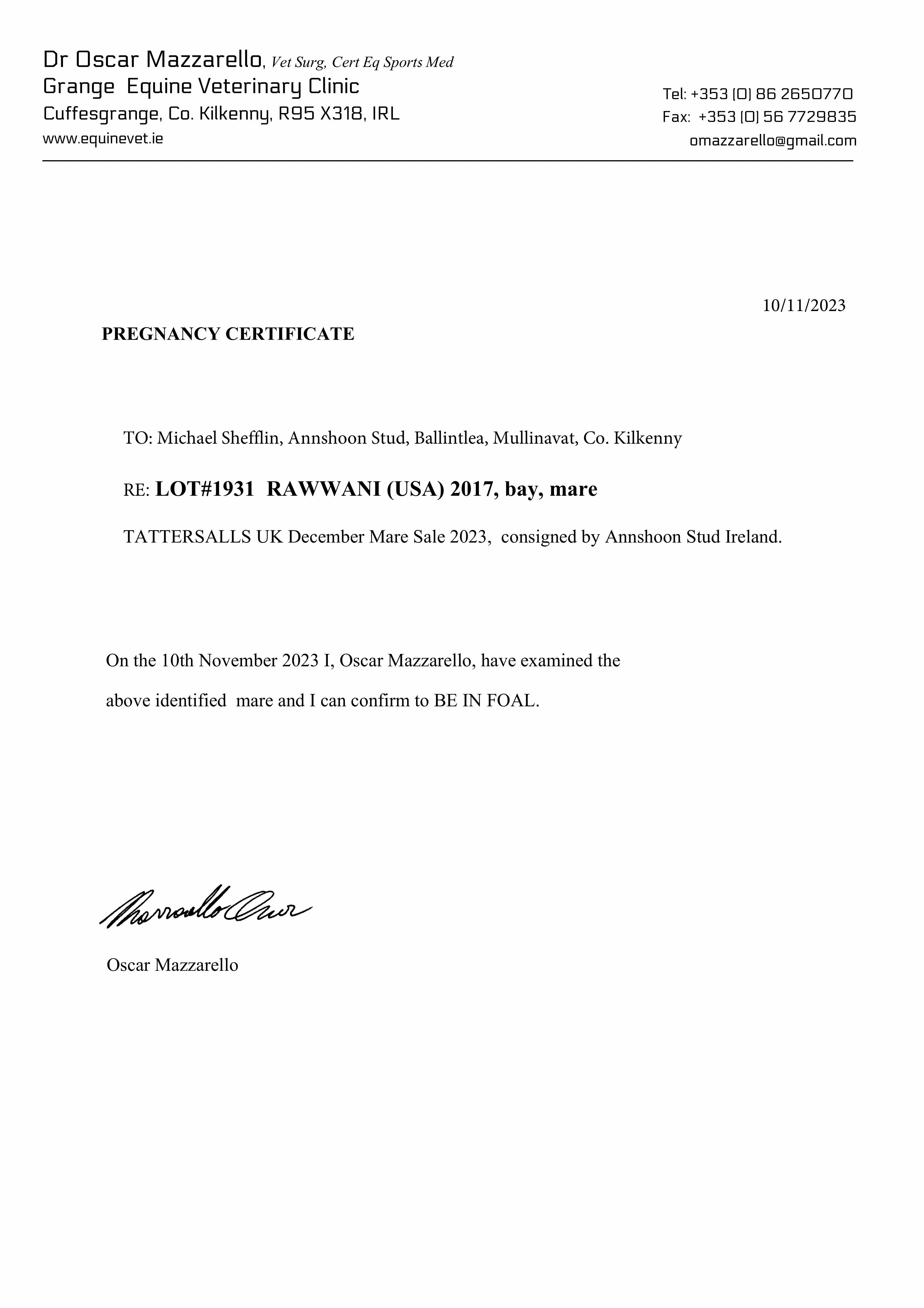 Consignor: Annshoon Stud, Ireland