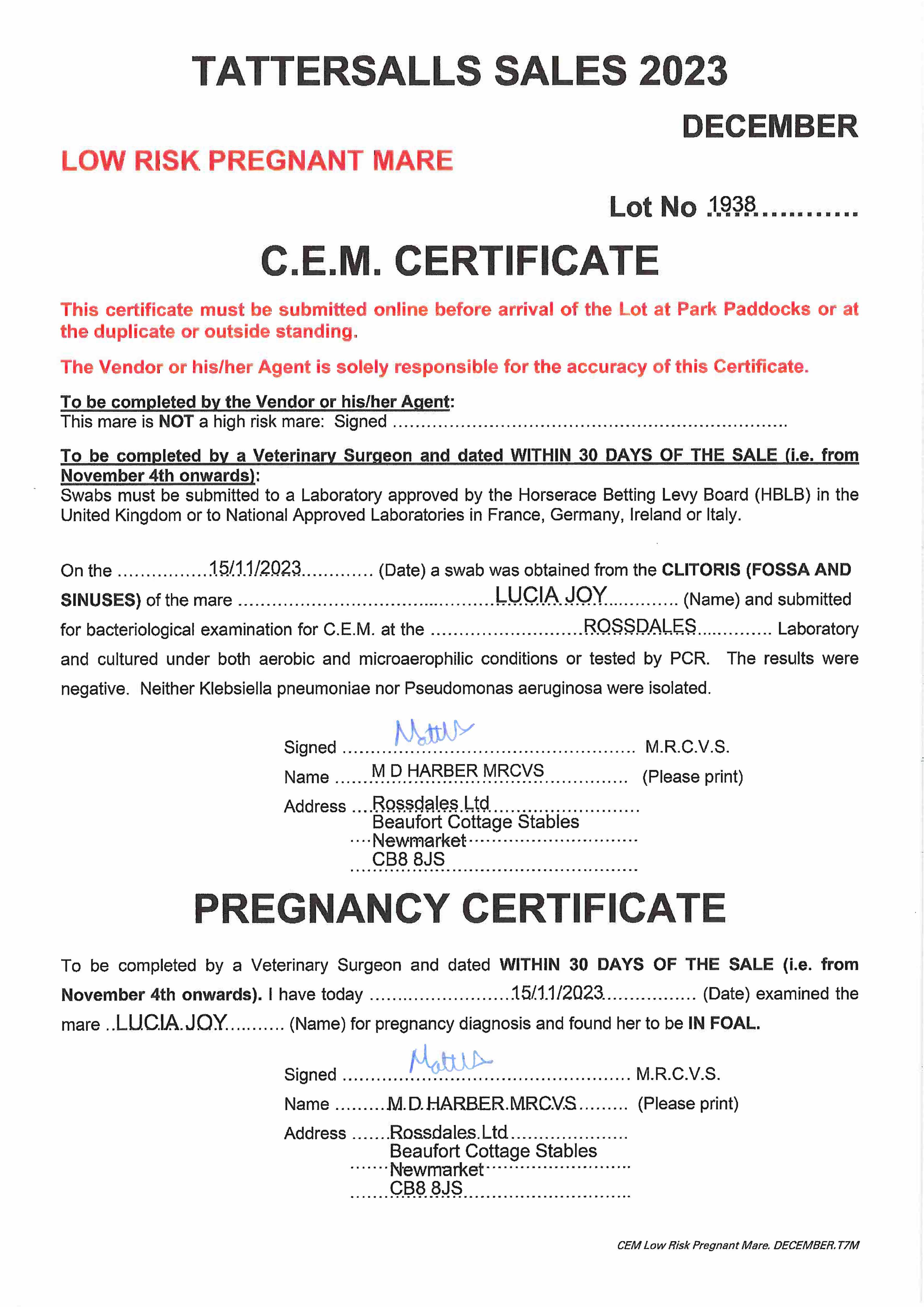 Consignor: Jamie Railton (Agent)