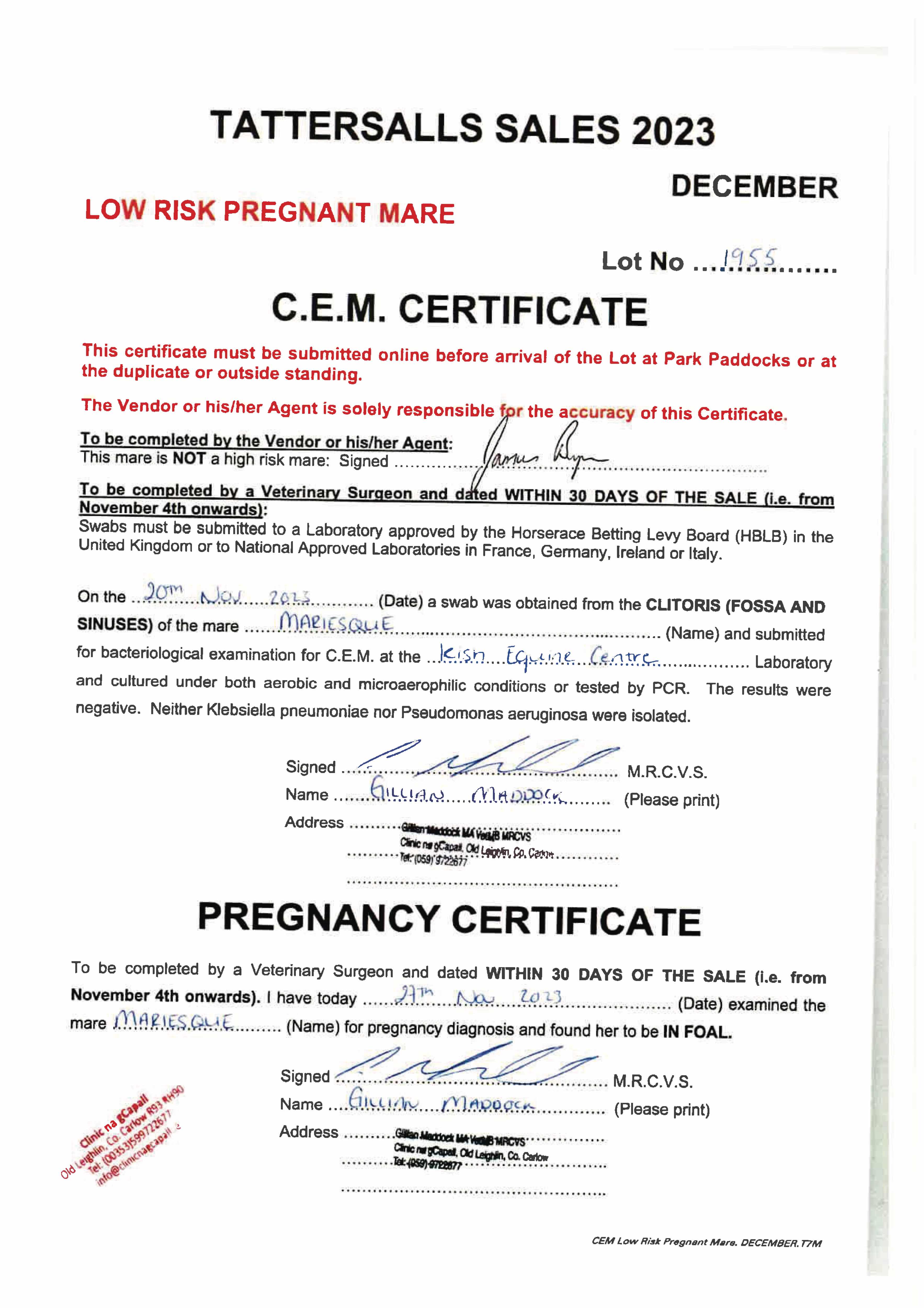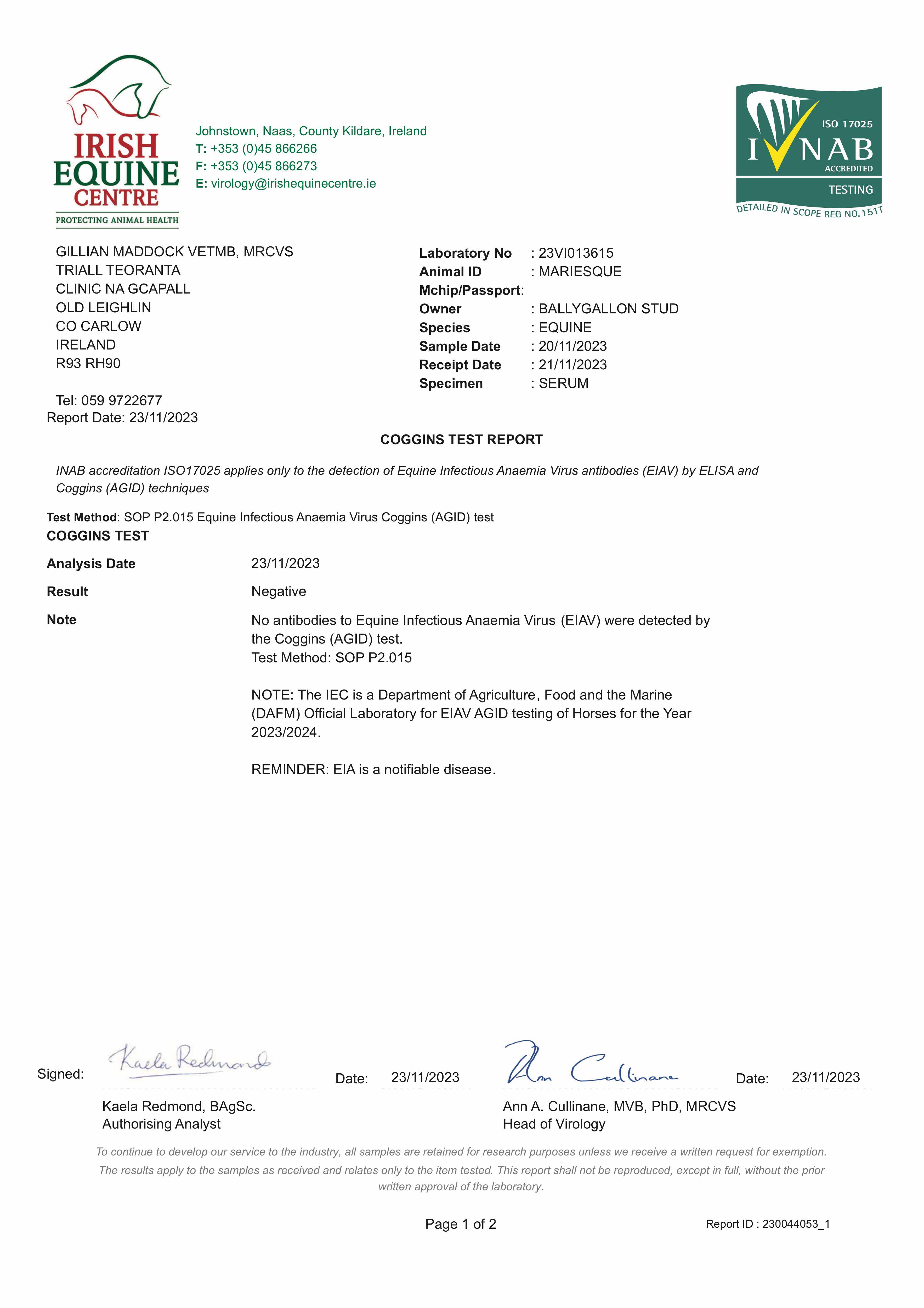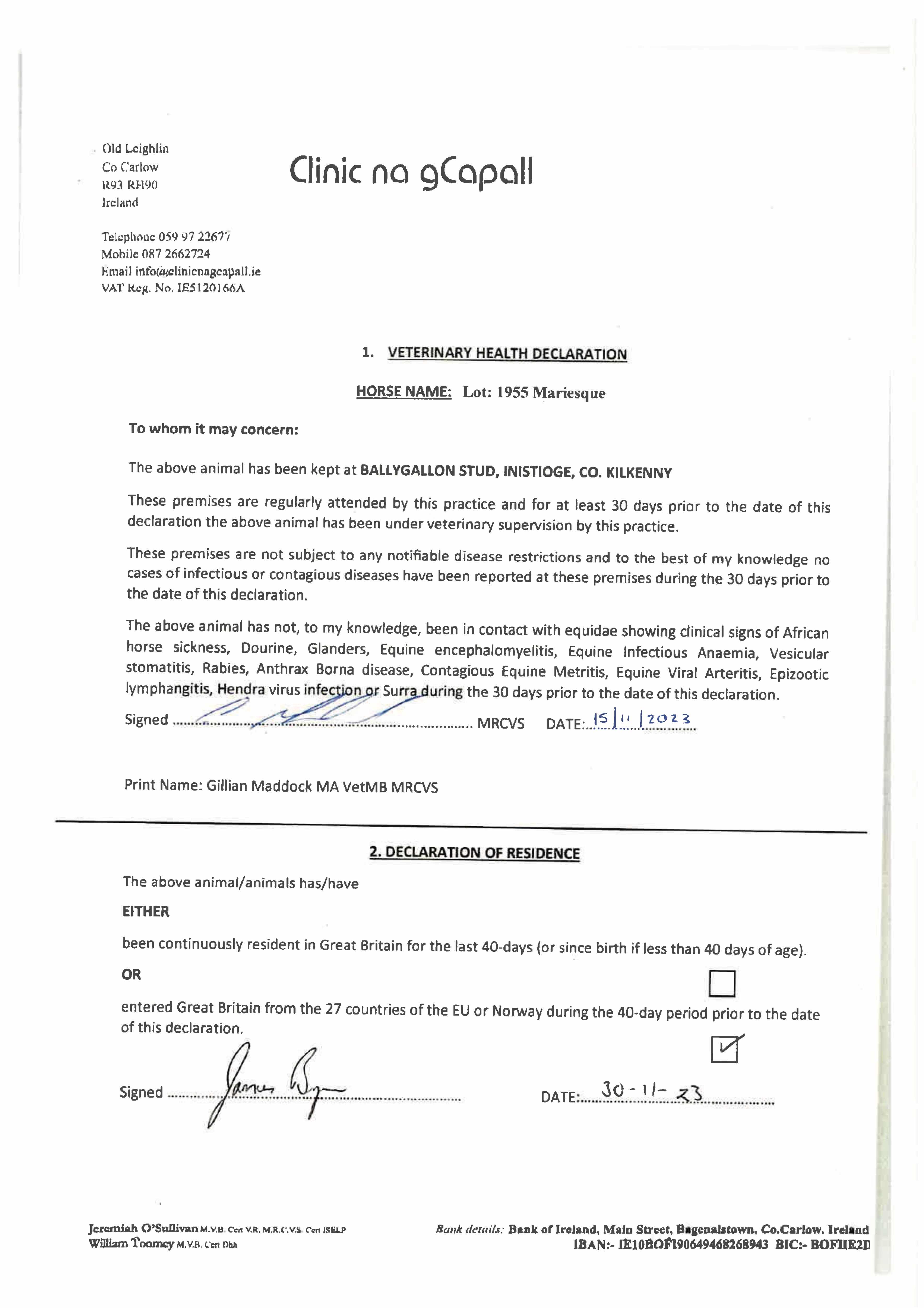 Consignor: Ballygallon Stud (Ireland) Ltd.