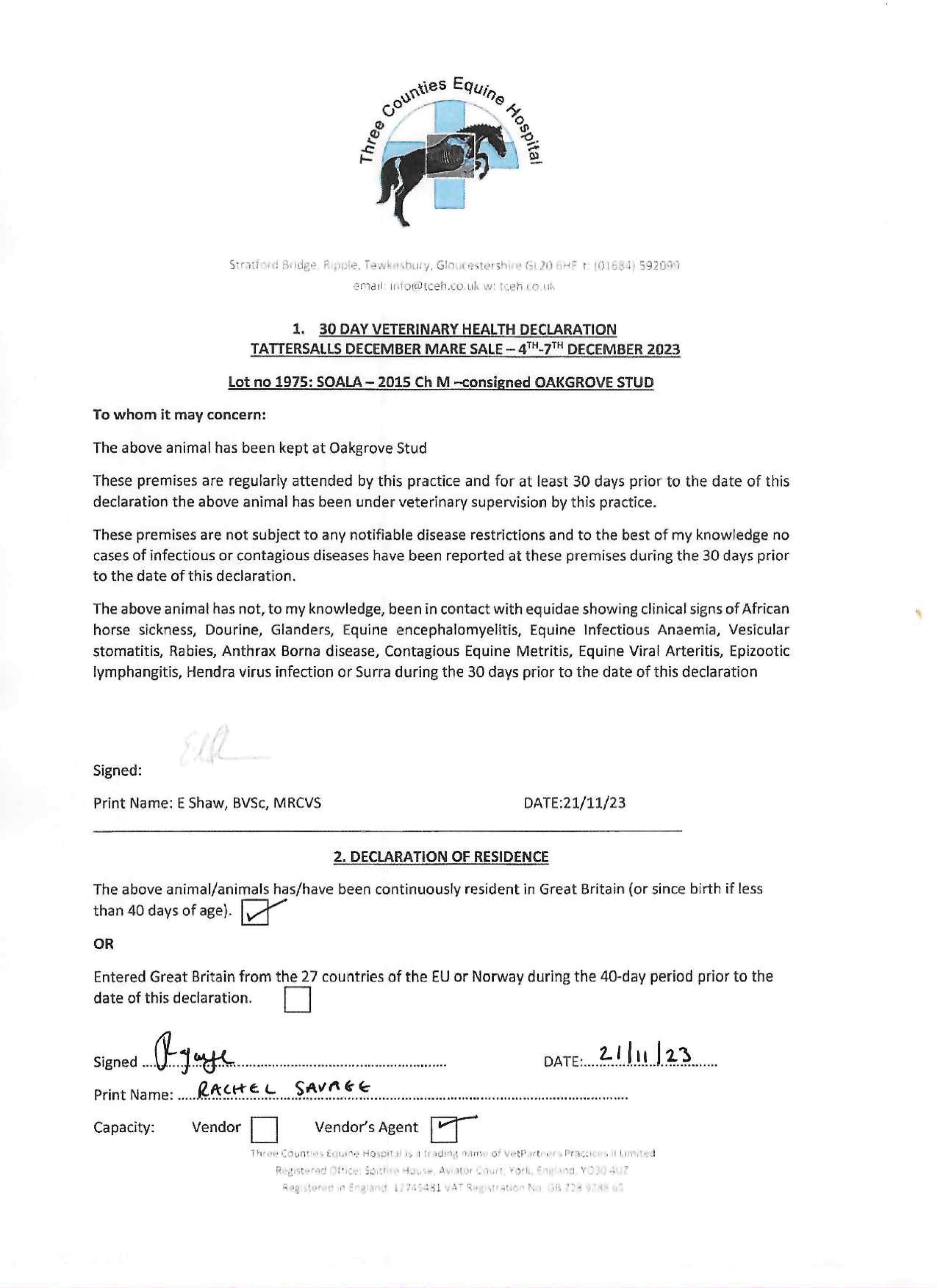 Consignor: Oakgrove Stud